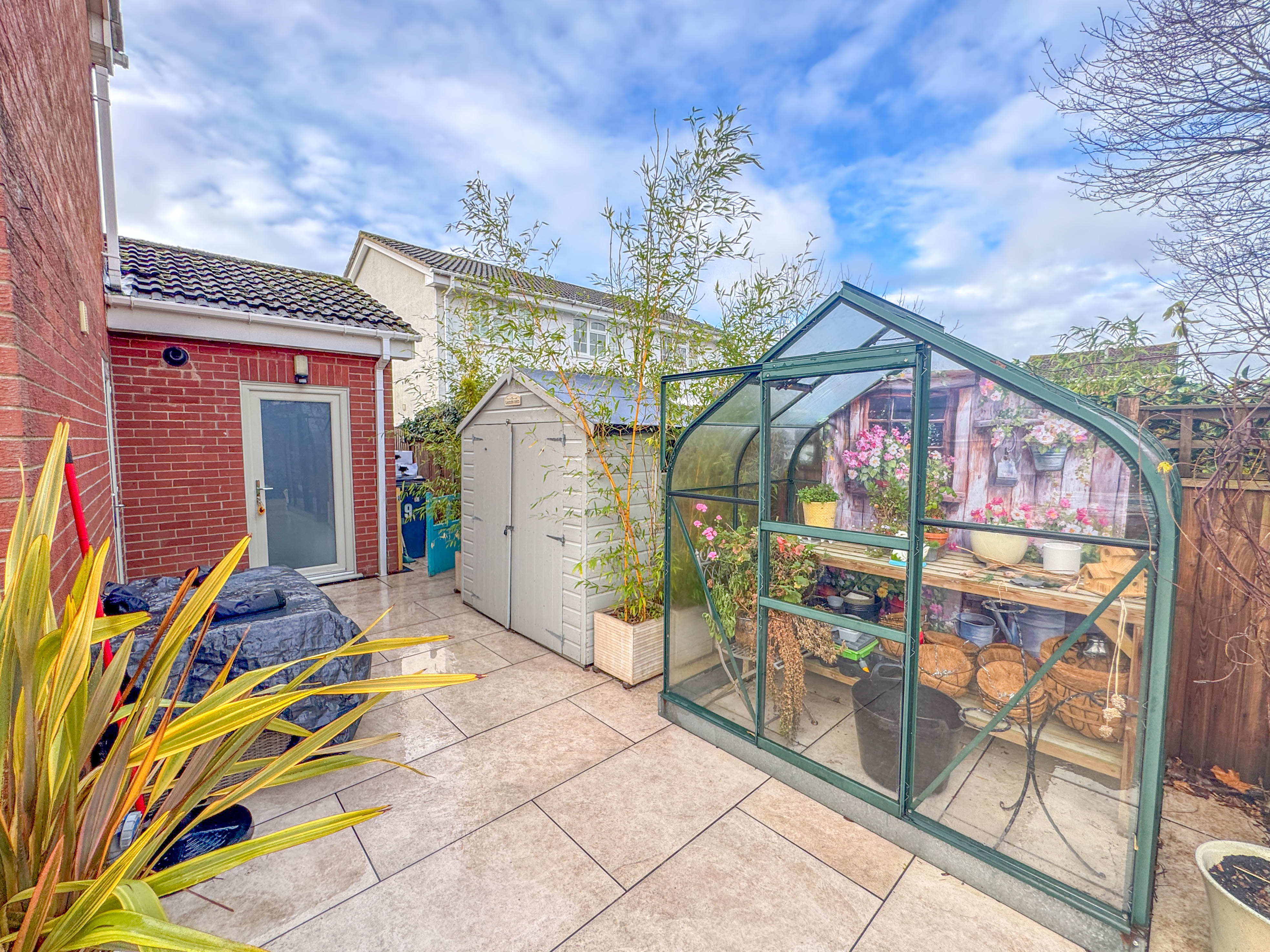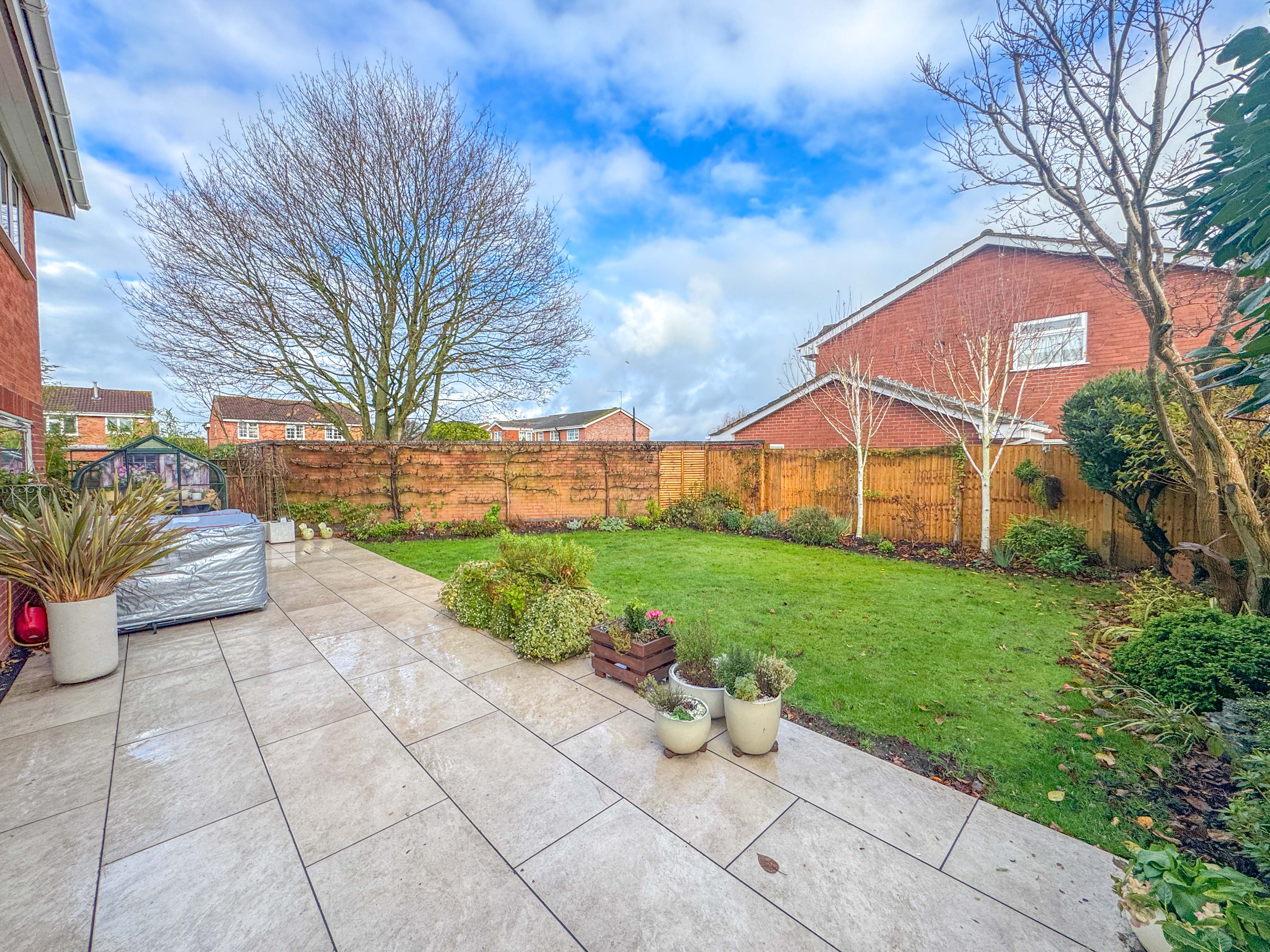 Externally, the landscaped rear garden is a private and peaceful retreat, mainly laid to lawn with a paved patio seating area, mature trees, and colourful borders offering both beauty and seclusion. Gated side access connects to the front, where the lawned frontage and mature planting add charm and privacy.