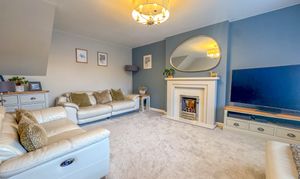 Step inside and you’re welcomed into a generous entrance hallway that sets the tone for the rest of the home, complete with upgraded flooring and tasteful décor. The guest WC is conveniently positioned off the hallway and fitted with a modern white suite plus there is a useful cloaks with laundry facilities. The main living room is a warm and inviting space with a central fireplace housing a gas fire and a large front-facing window allowing natural light to flood the room.