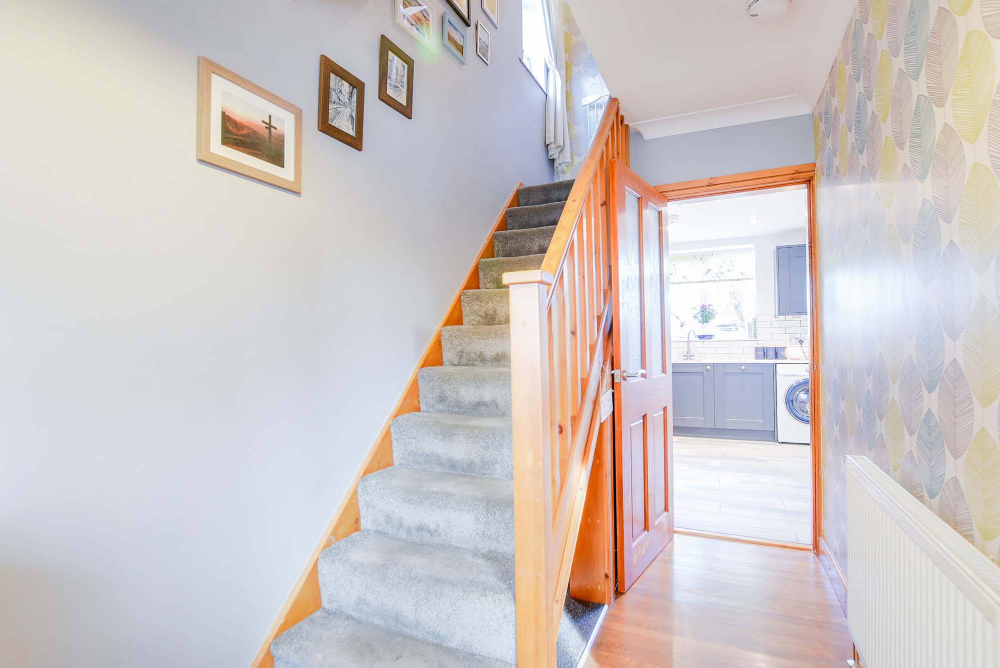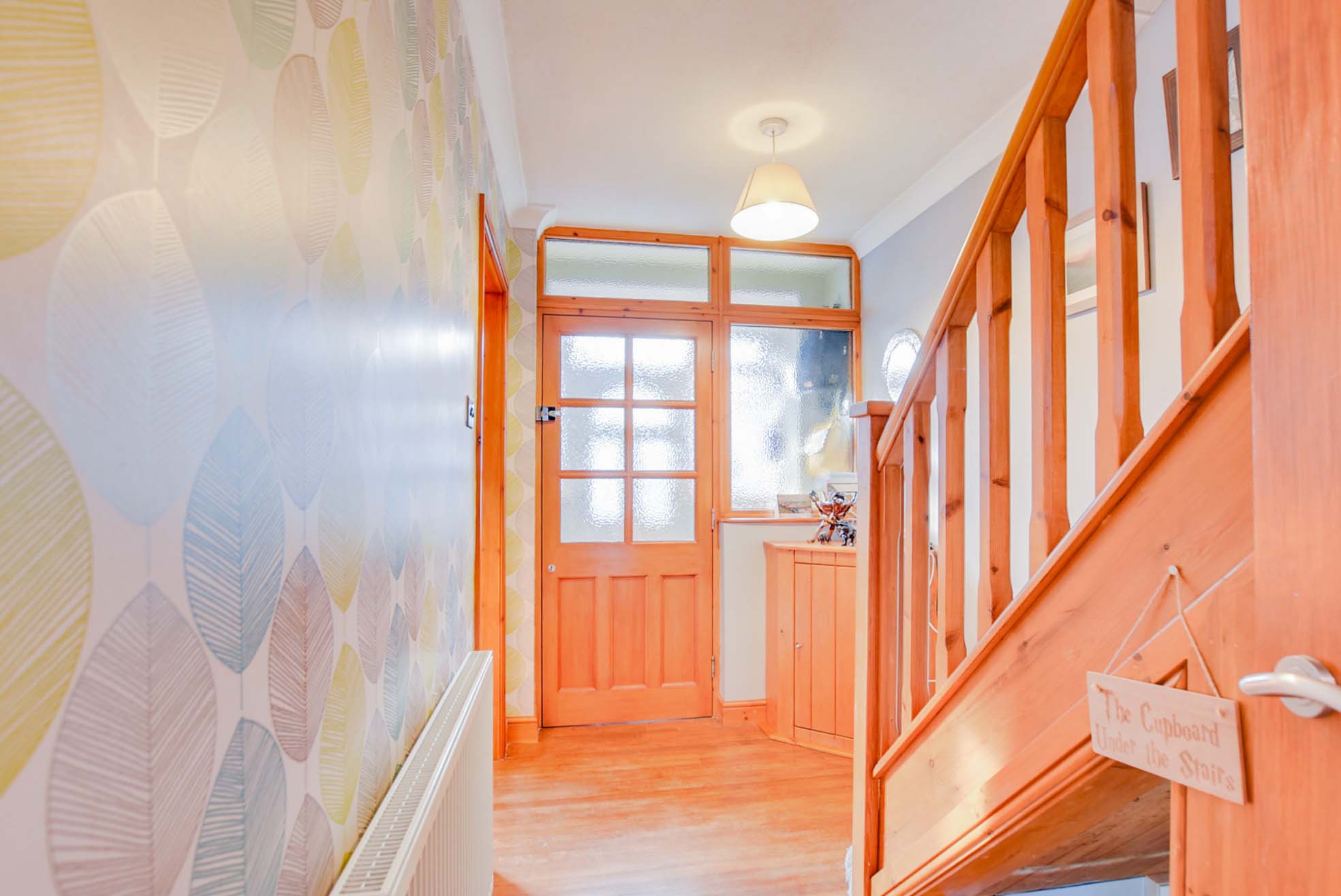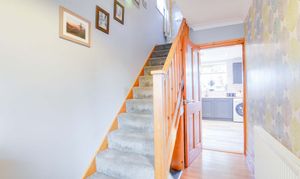 With stairs to the first-floor landing, an understairs storage area with power and lighting, meter cupboard and a radiator.