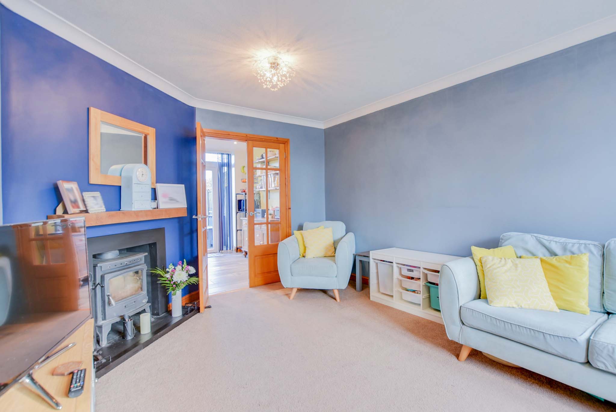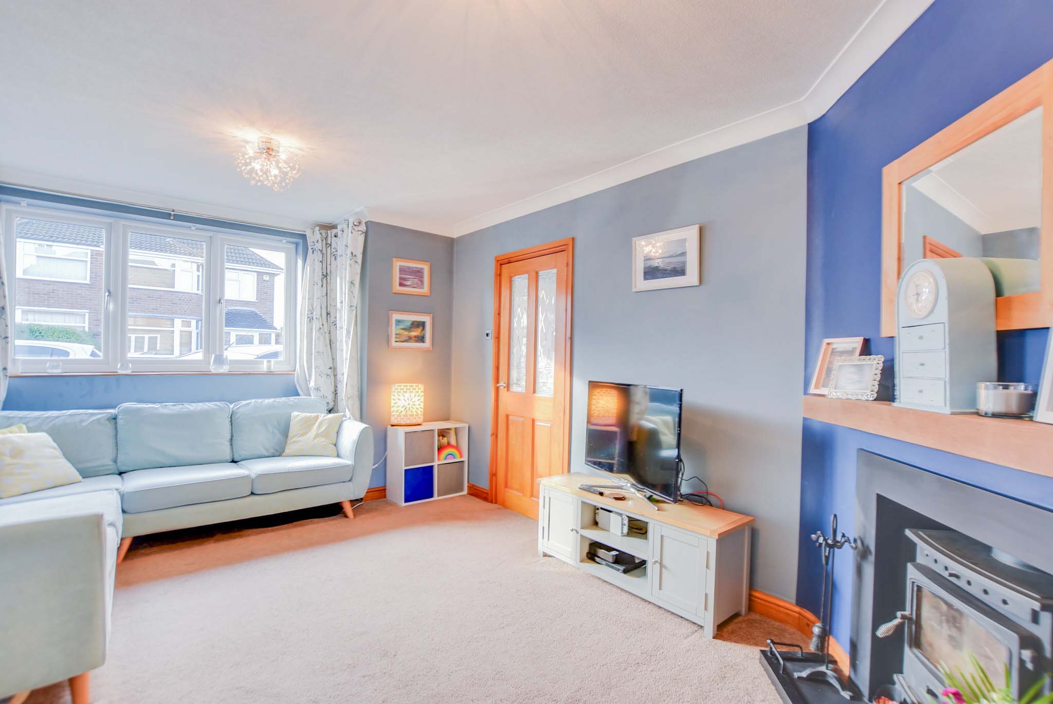 With a double-glazed window to the front elevation, feature log burner with fire surround, TV point and a radiator.