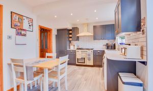 The highlight of the home is the stylish open-plan fitted kitchen and dining room, perfect for both everyday living and entertaining. The sitting room exudes warmth and character, featuring a cosy log burner as its centrepiece. Upstairs, the property offers three well-proportioned bedrooms and a modern family bathroom, all accessible from the first-floor landing.