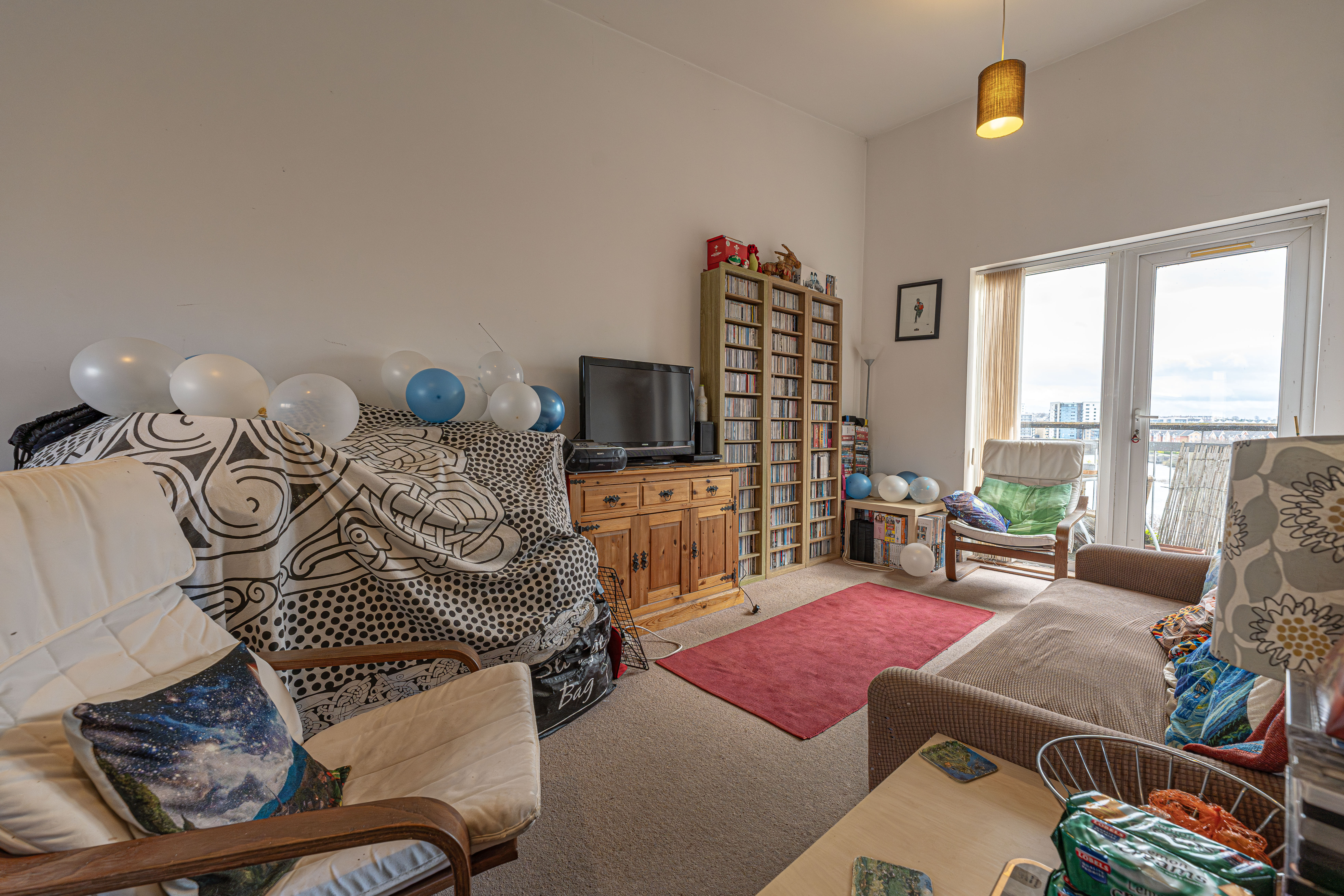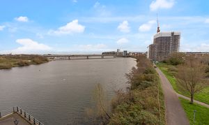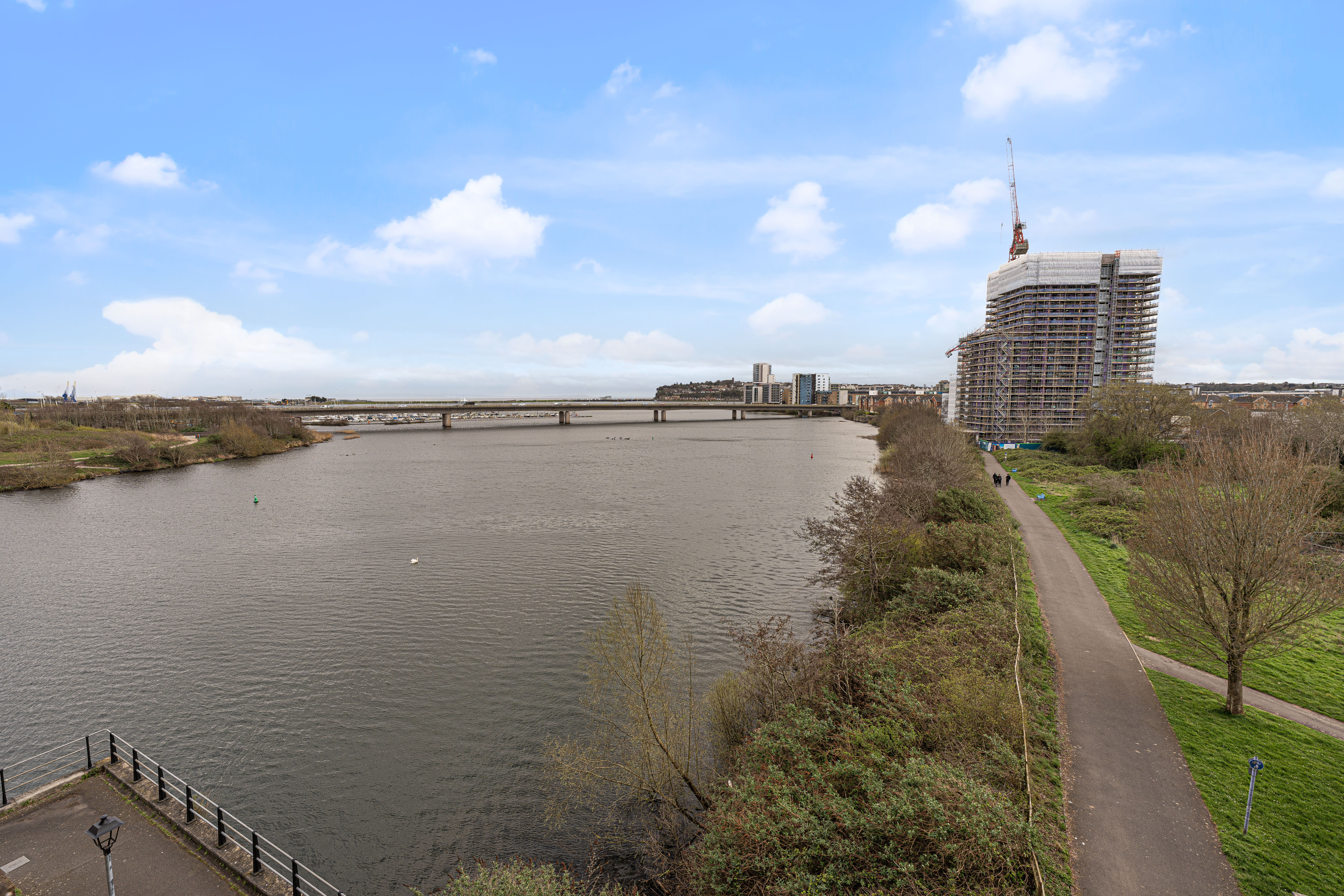 Located on the top floor of a secure building, this apartment features a spacious reception room at the heart of the home, offering space for lounging, dining and entertaining. The room features an open plan design to the neighbouring kitchen, which is equipped with various storage fixtures and room for appliances to join the fitted oven and hob. Multiple windows allow natural light to cascade throughout the room, with French doors that open to a wonderful balcony, which is a standout highlight of the property, boasting an incredible view of the River Taff and Cardiff bay.