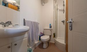 The property features two bedrooms - one of which is a well sized double with access to a private en-suite shower room. The second bedroom is a comfortable single and provides great versatility for other functions, such as a home office or dressing room. Another communal bathroom is found from the hallway, alongside a fitted storage closet.