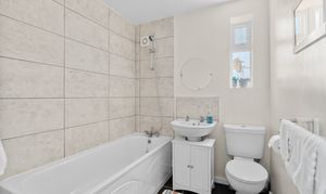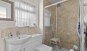 The ground floor also features Bedroom One, a versatile and generously sized room served by its own modern en-suite bathroom. This flexibility makes it ideal for guests, multi-generational living, or use as a dedicated home office. A stylishly fitted family bathroom, with contemporary fixtures and finishes, completes the ground floor accommodation.
