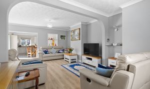 On entering the property, you are welcomed by a spacious lounge filled with natural light, offering an inviting space to relax or entertain. The lounge flows effortlessly into the modern, open-plan kitchen and dining area. With sleek fitted units, generous worktop space, and room for a family dining table, this area has been thoughtfully designed for everyday living and entertaining. French doors provide direct access to the rear garden, allowing a seamless connection between indoor and outdoor spaces.
