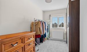 Upstairs, the property offers three further well-proportioned bedrooms, each bright, comfortable, and versatile. Bedroom three is particularly practical, benefiting from two built-in wardrobes that provide excellent storage solutions. The remaining bedrooms offer ample space for children, guests, or could be adapted to suit a variety of needs, such as a study or hobby room.
