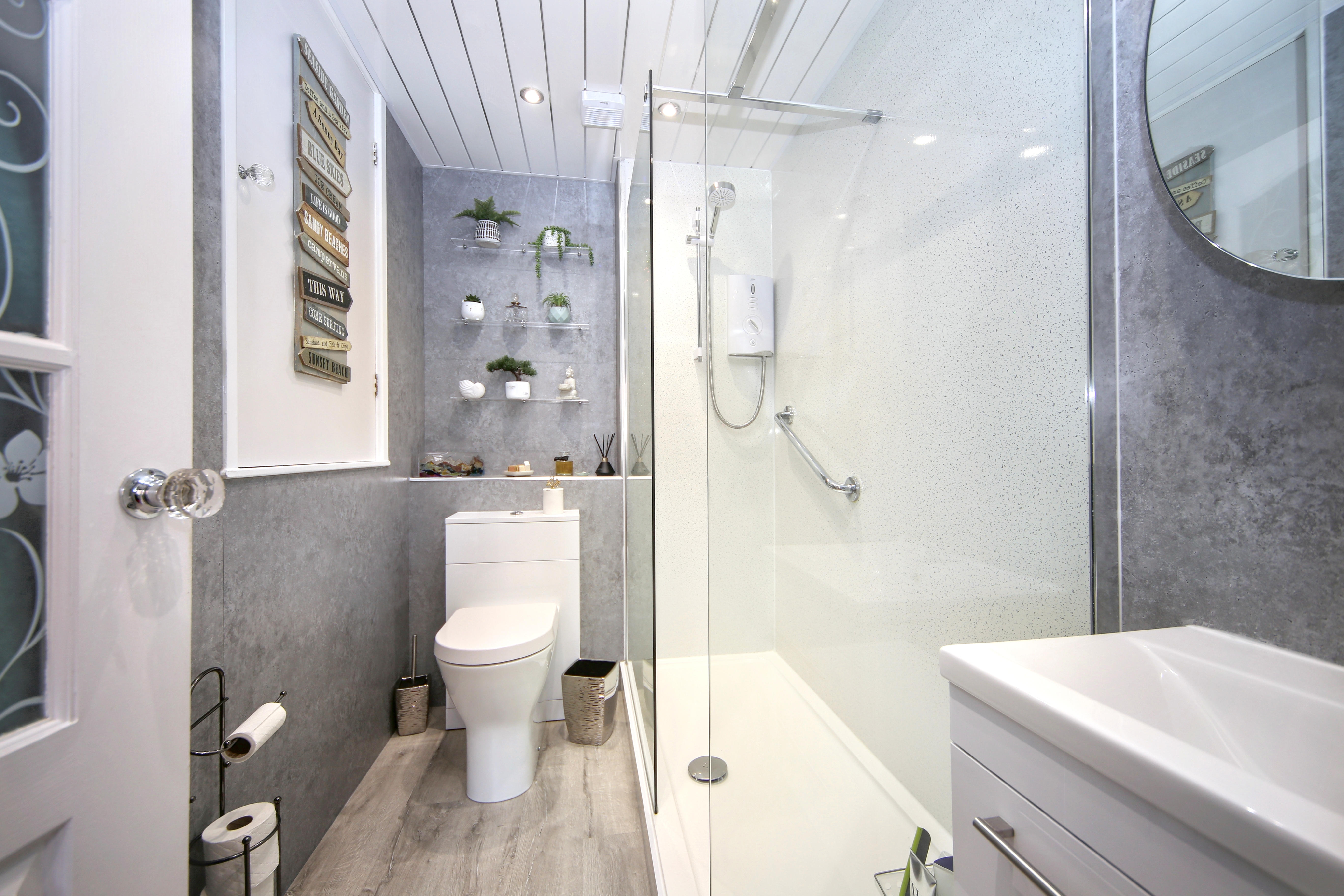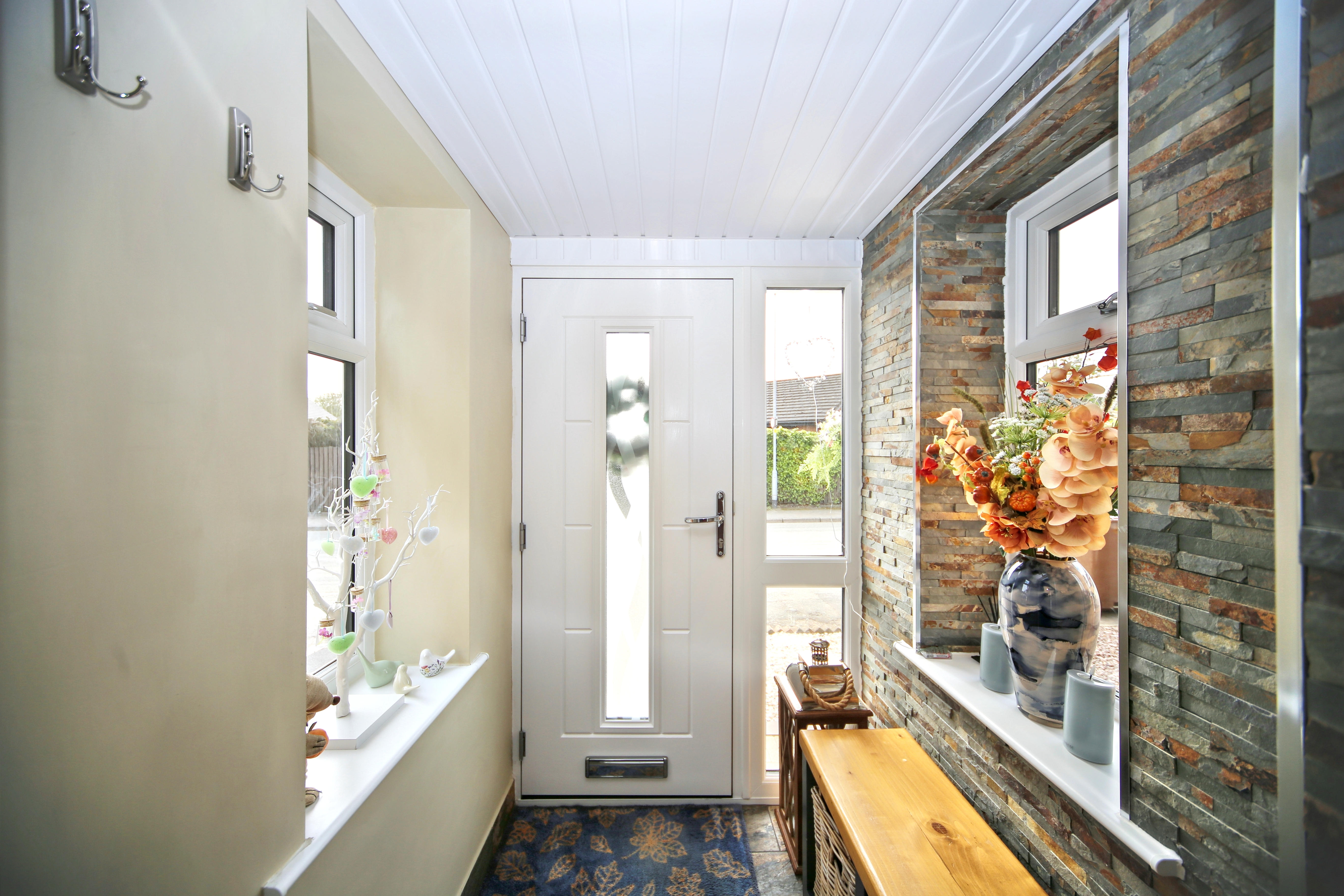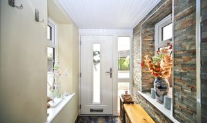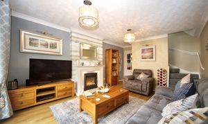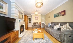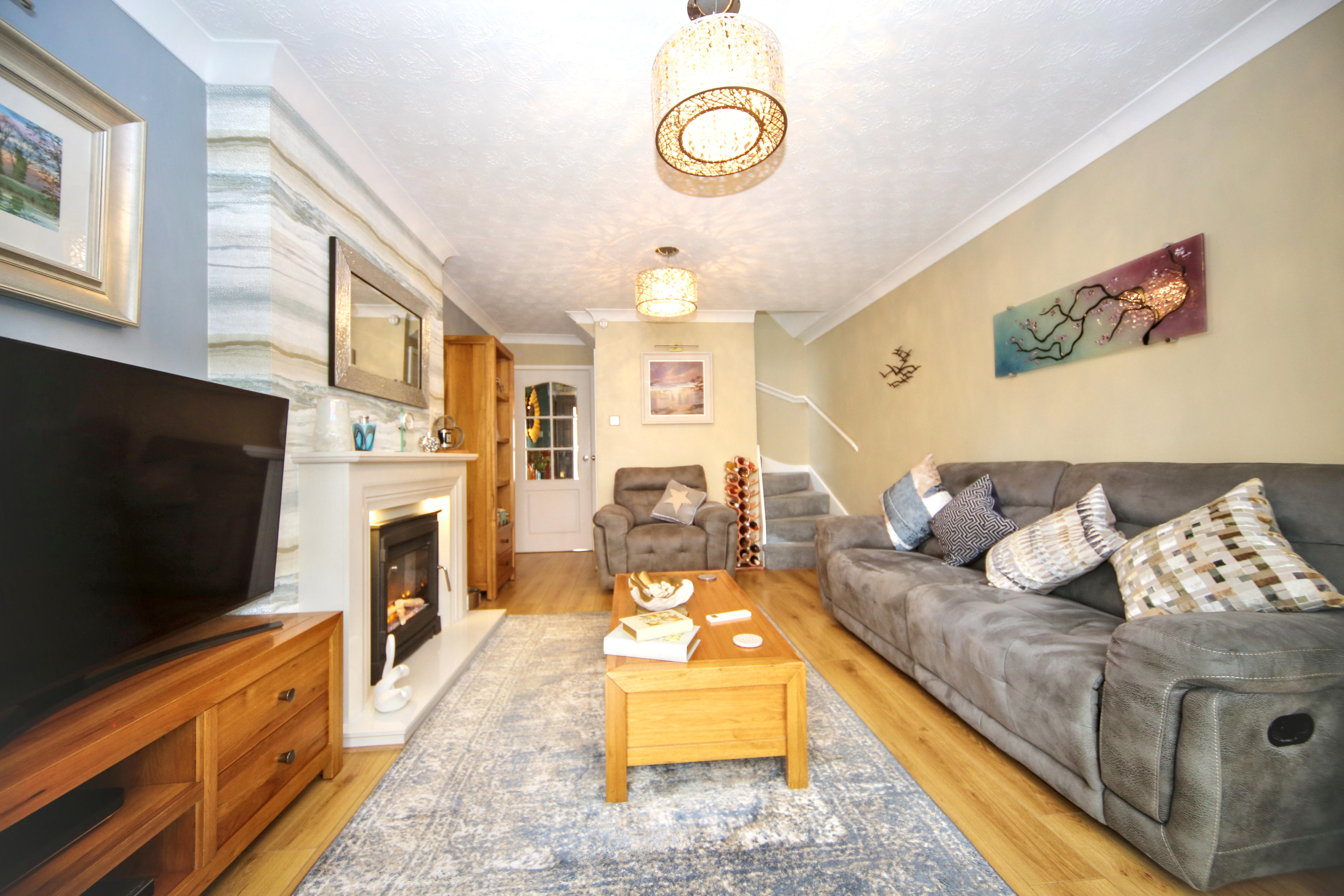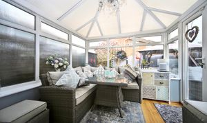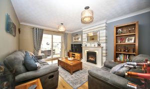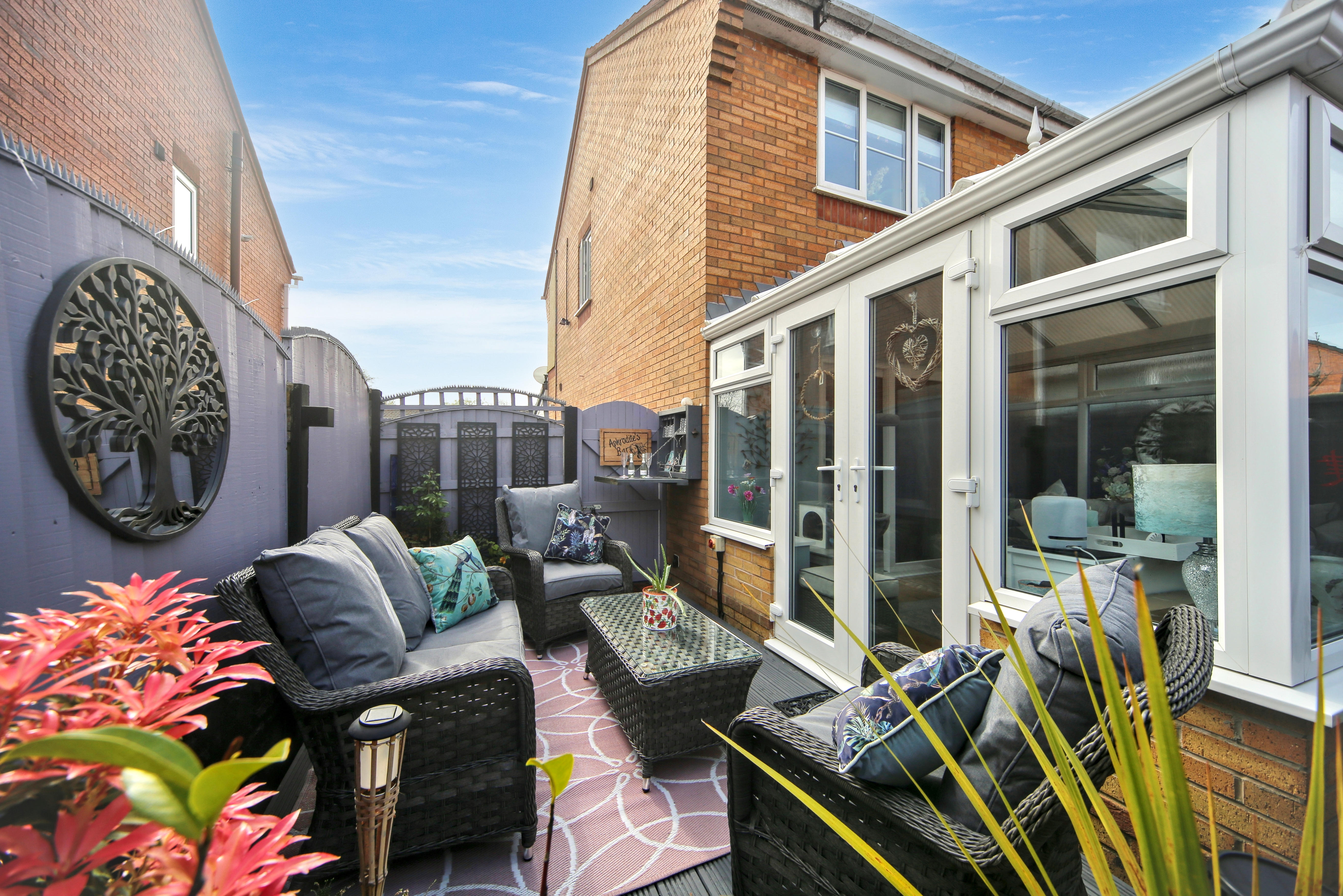The stylish lounge features an electric fireplace, creating a warm and inviting space to relax. This flows seamlessly into a conservatory, offering additional living space and lovely views over the rear garden. Outside, you’ll find a cosy, landscaped garden with decking—ideal for entertaining or unwinding. A hot tub is also included, subject to negotiation.
