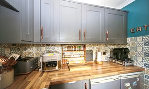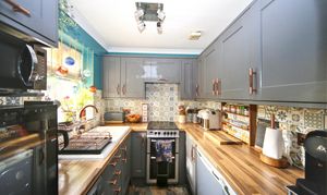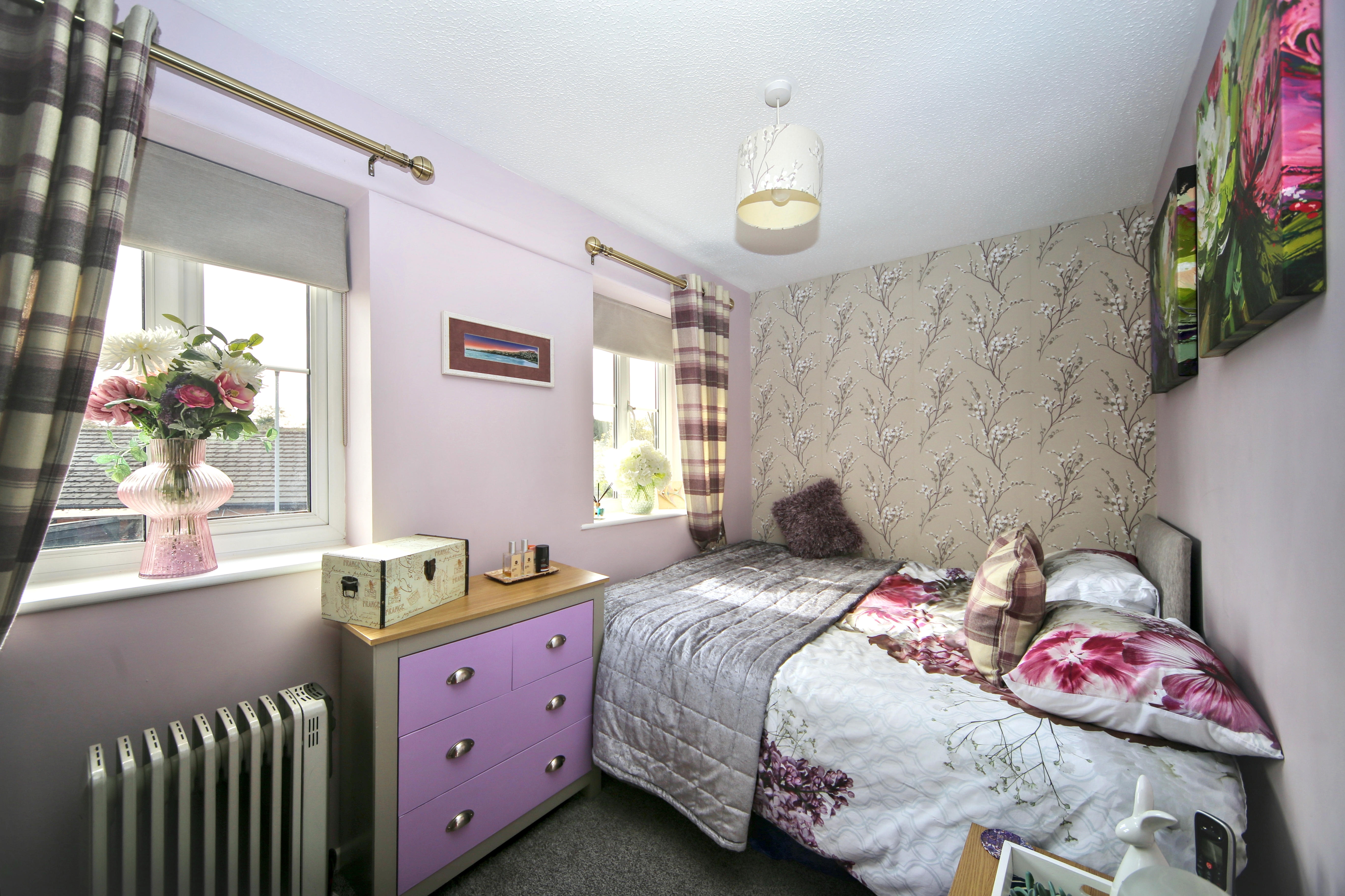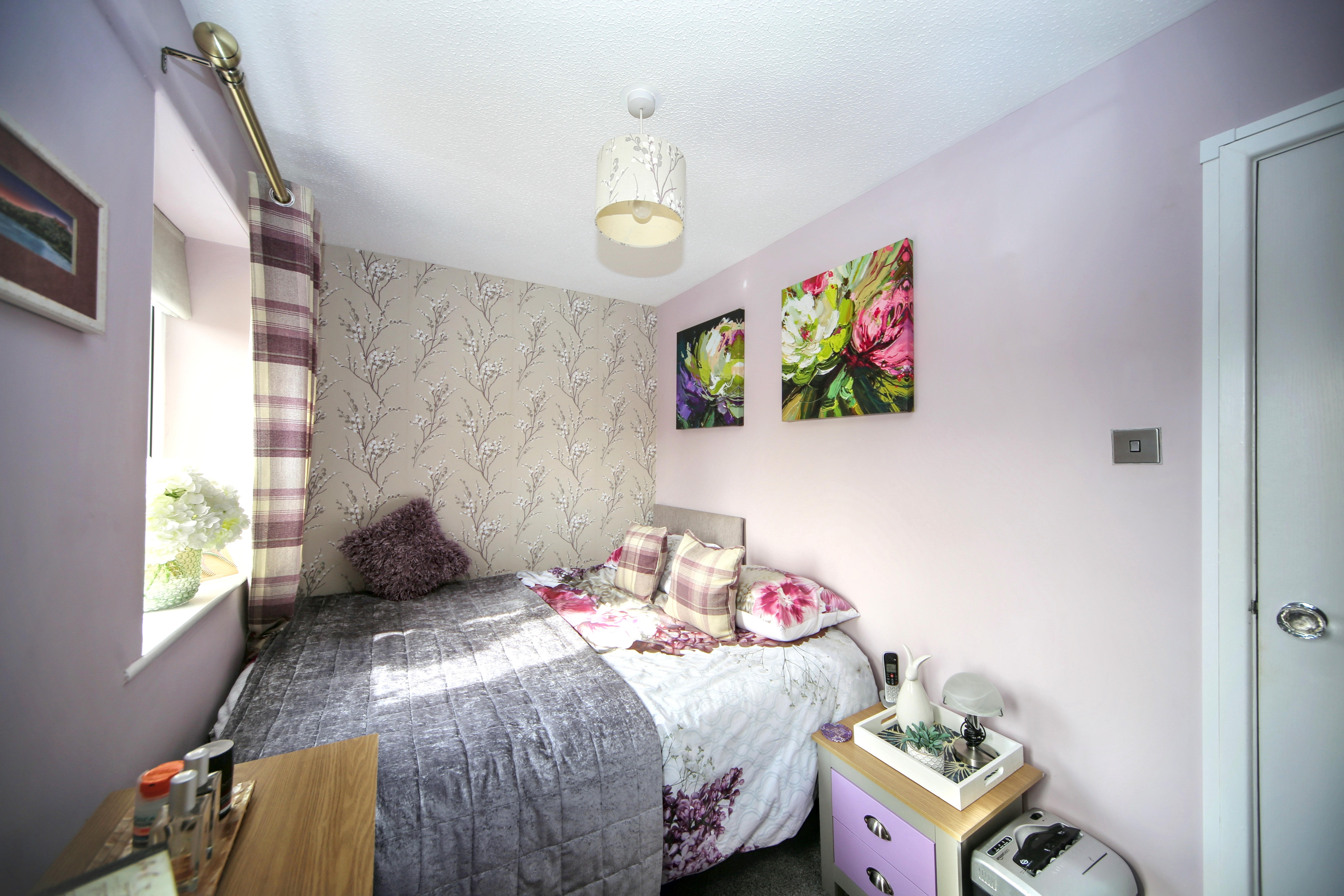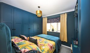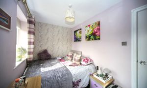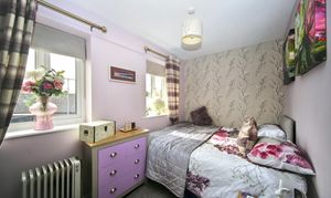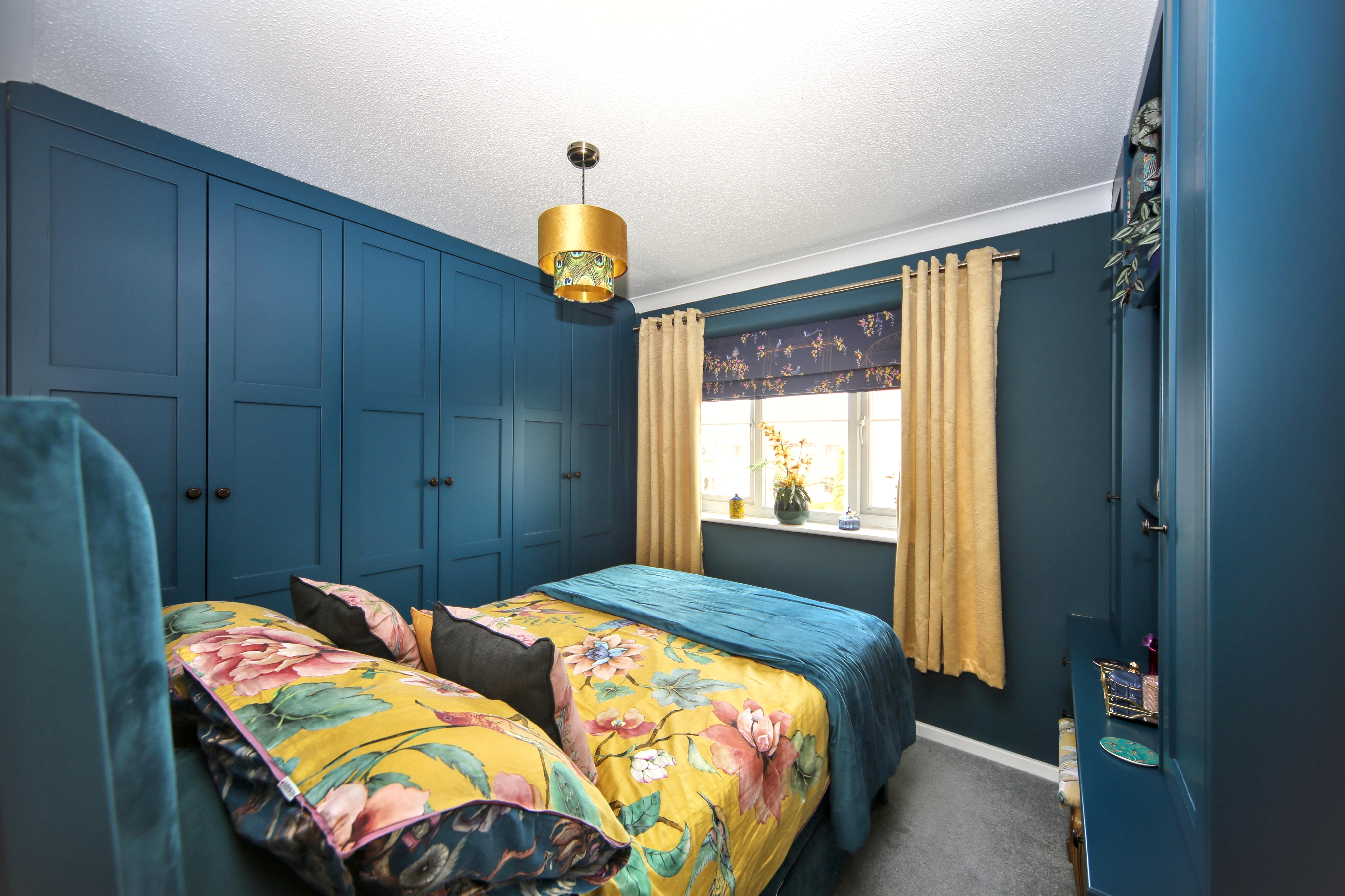 The stairs offer convenient under-stairs storage and lead to the spacious bedrooms. The property offers two well-proportioned double bedrooms and a modern shower room, which benefits from a large storage cupboard and a heated towel rail. The master bedroom features built-in wardrobes, while the second bedroom provides versatile accommodation.