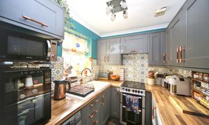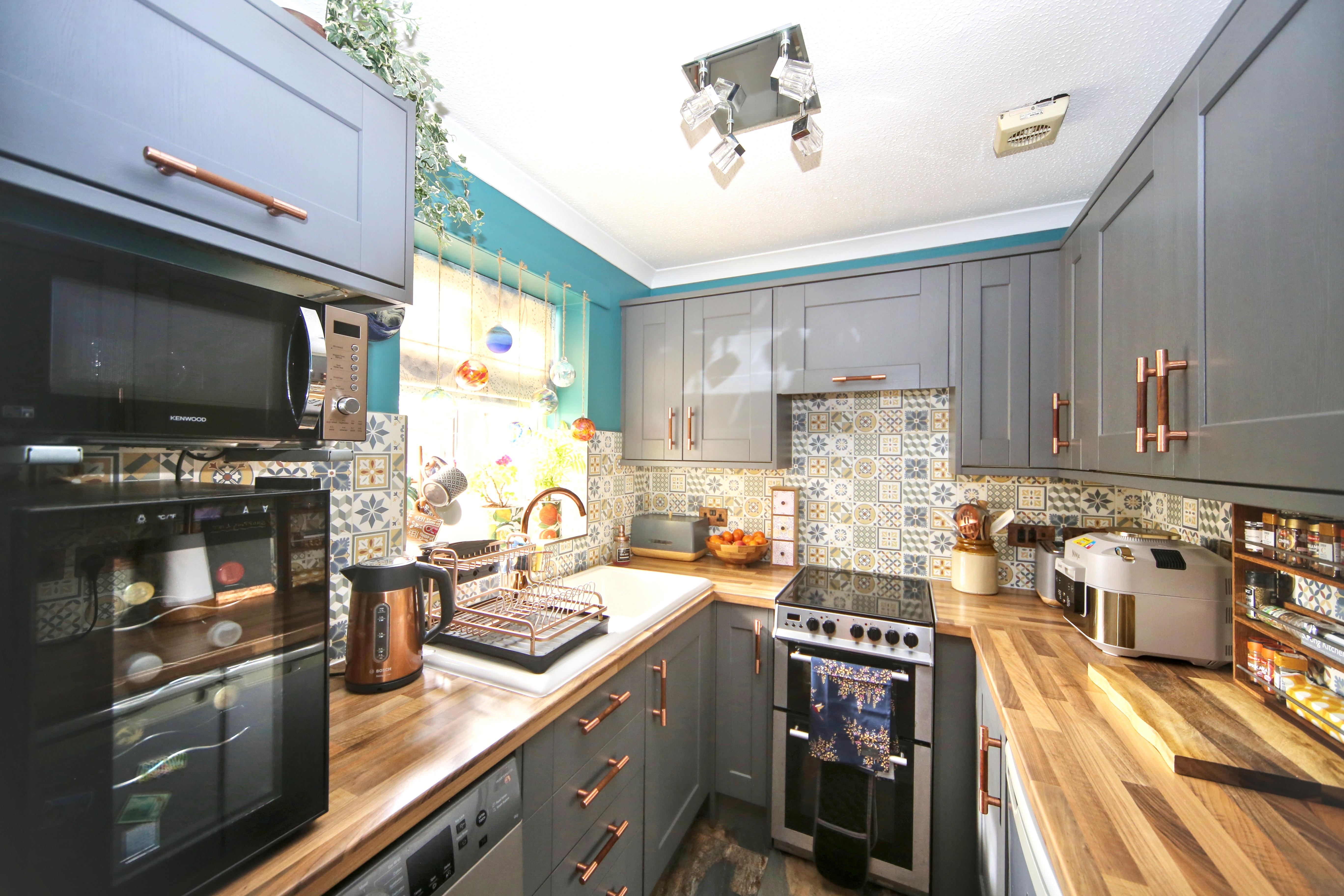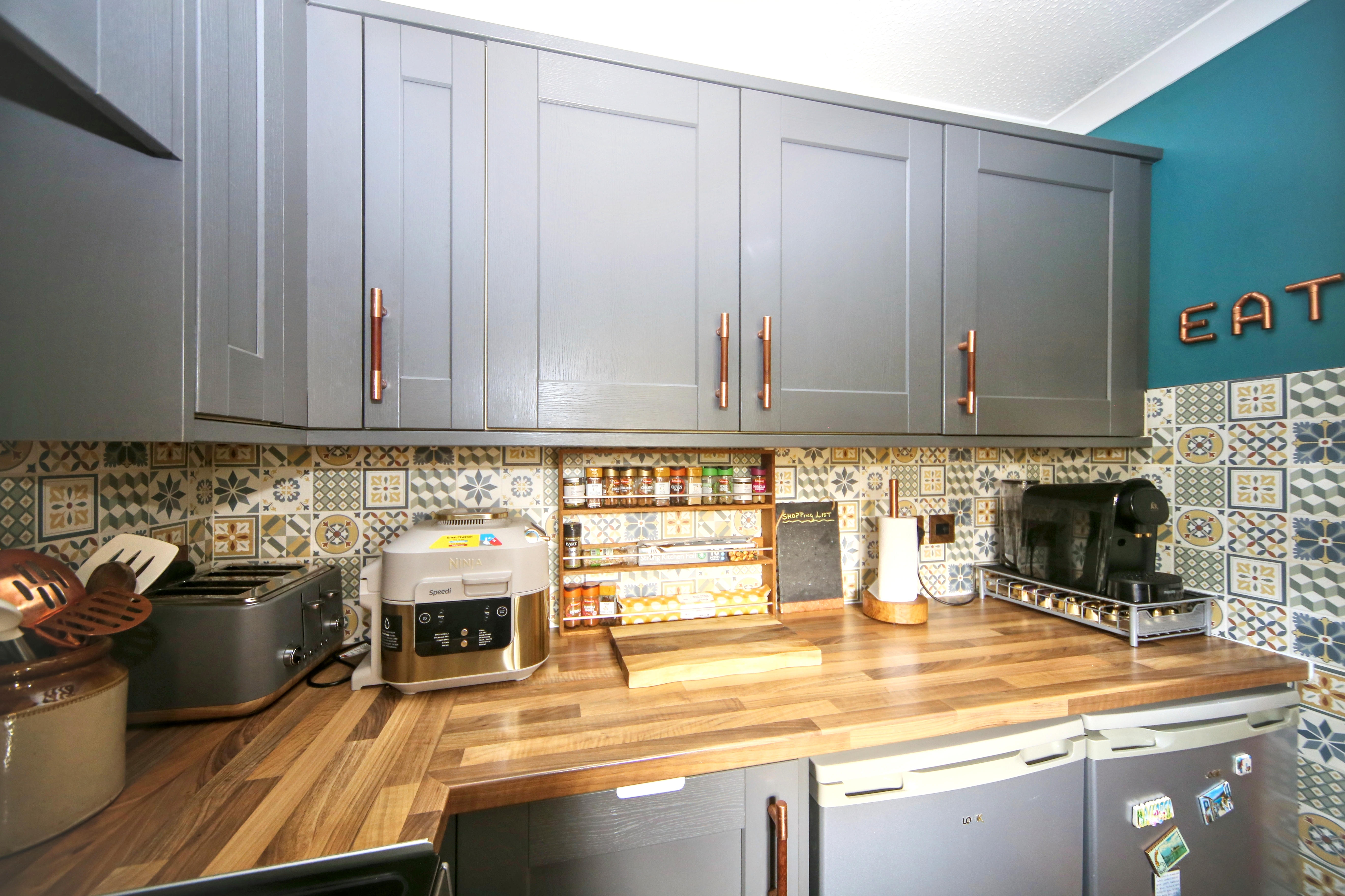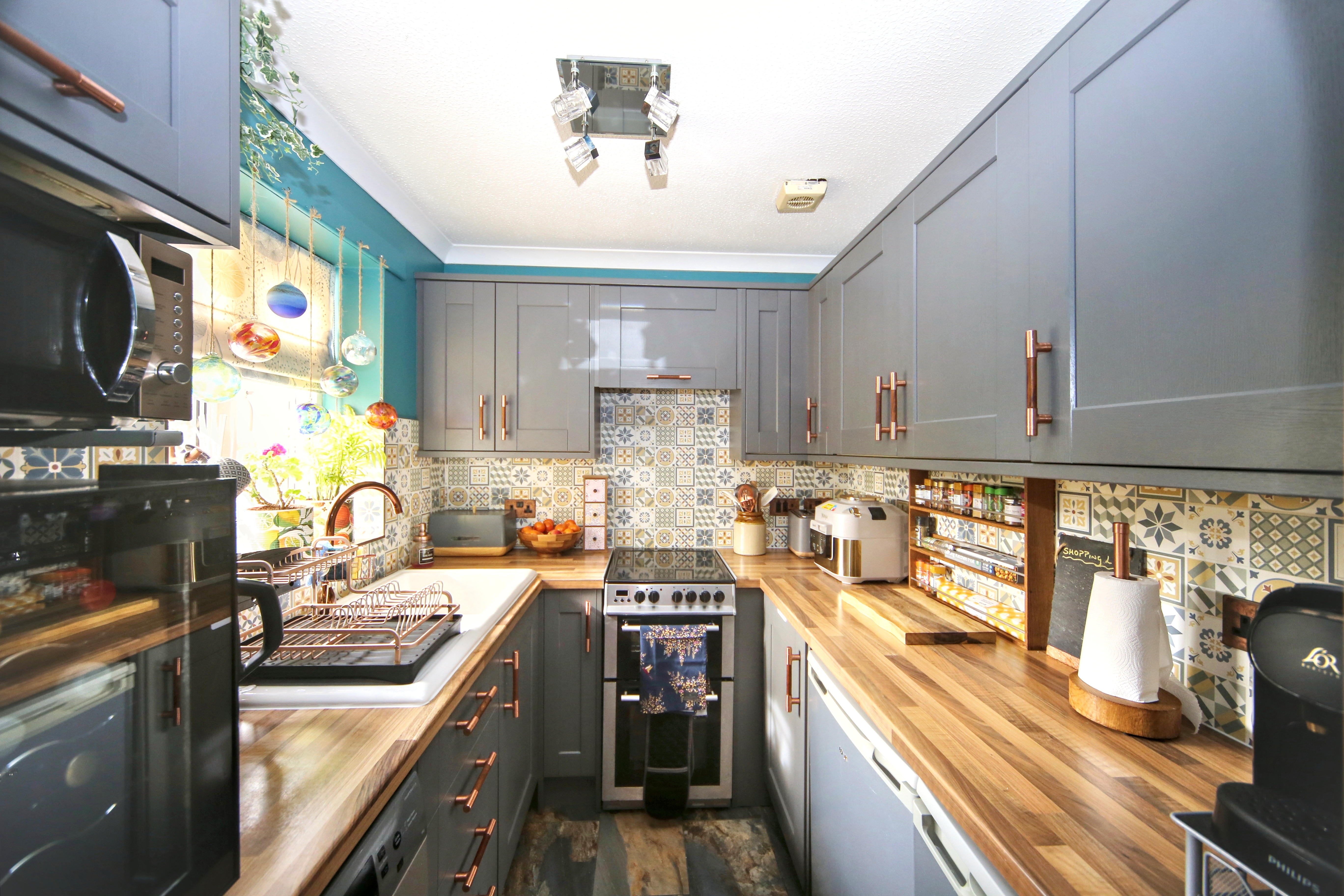 The property boasts a landscaped front garden and a driveway providing off-road parking for two vehicles. Upon entering through the welcoming porch, you are greeted by a bright hallway. The compact yet functional kitchen comes complete with freestanding appliances, all of which the vendor has kindly agreed to include in the sale.