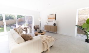 Across the rear, tri-fold doors flood the interior with natural light and extend the living space out to the landscaped garden, creating a seamless indoor-outdoor connection that’s perfect for summer gatherings and garden parties.