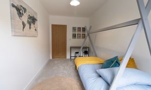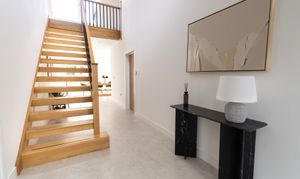 Ascending via the statement staircase, the first floor reveals four generously proportioned bedrooms; the spacious principal suite is complete with an elegant en-suite shower room. The second bedroom also benefits from its own private en-suite, while two further bedrooms are served by a beautifully appointed family bathroom, featuring a contemporary Villeroy & Boch three-piece suite.