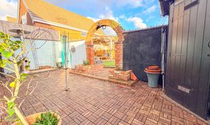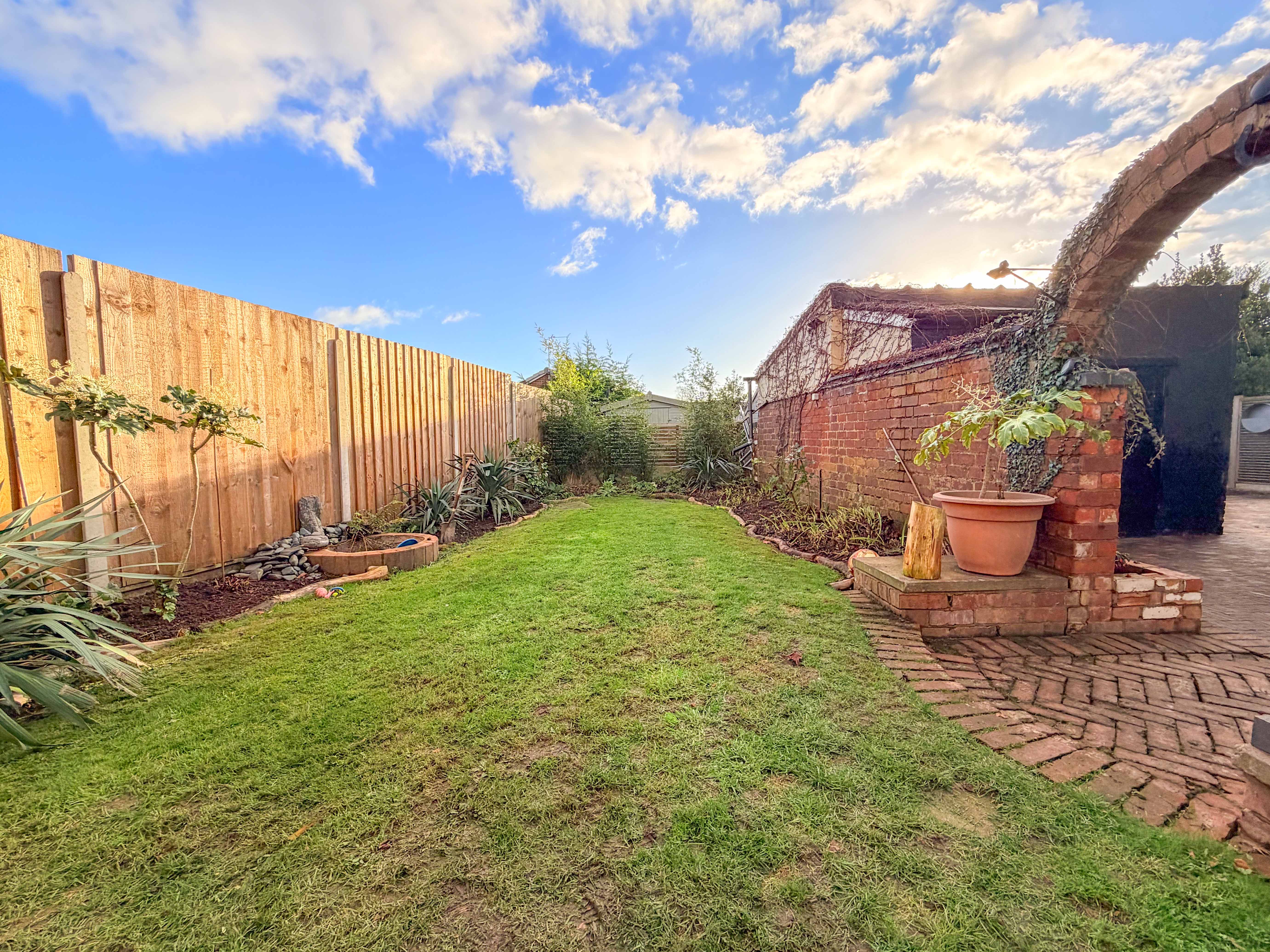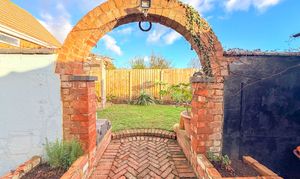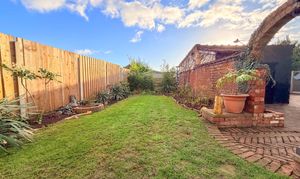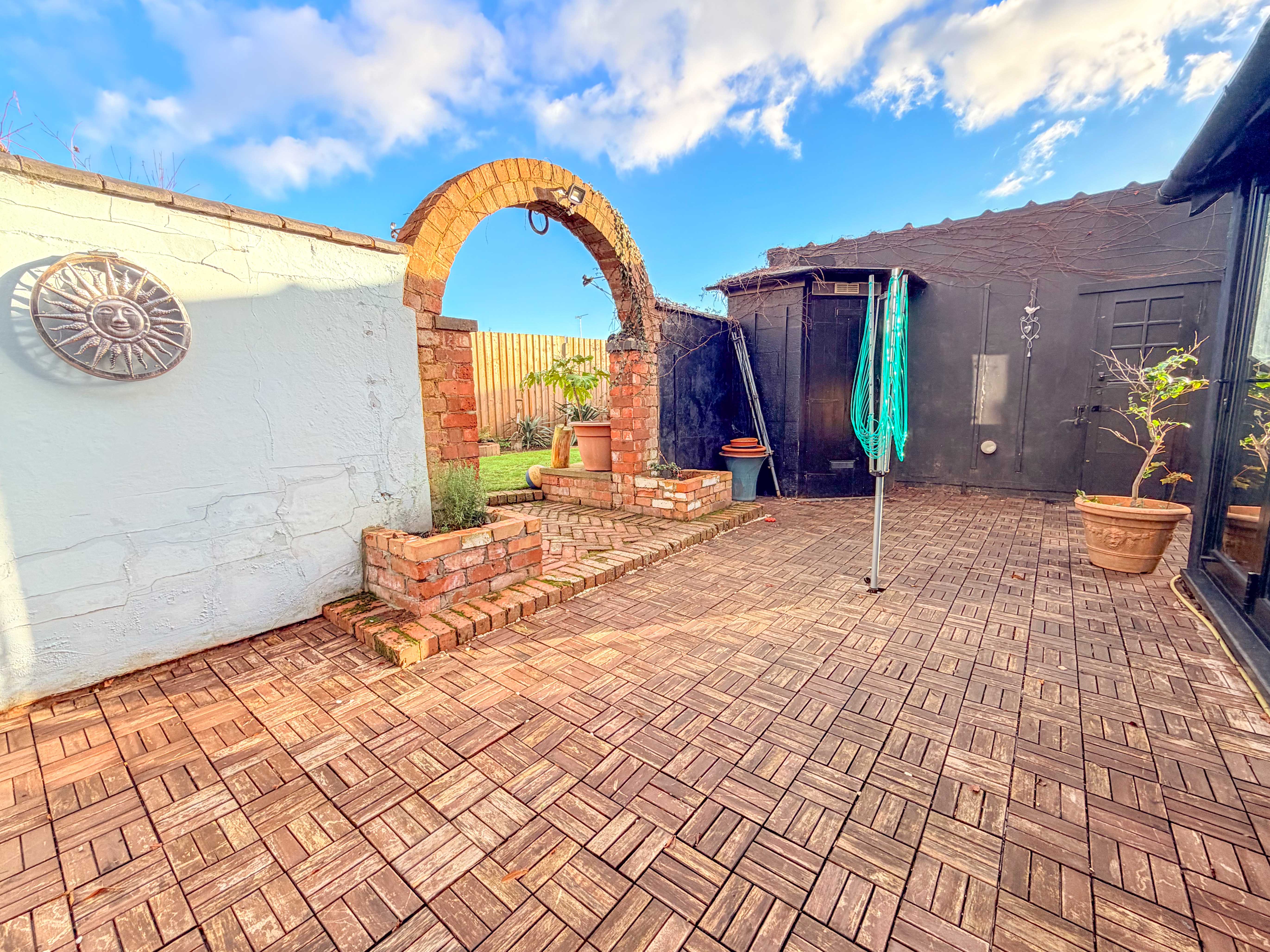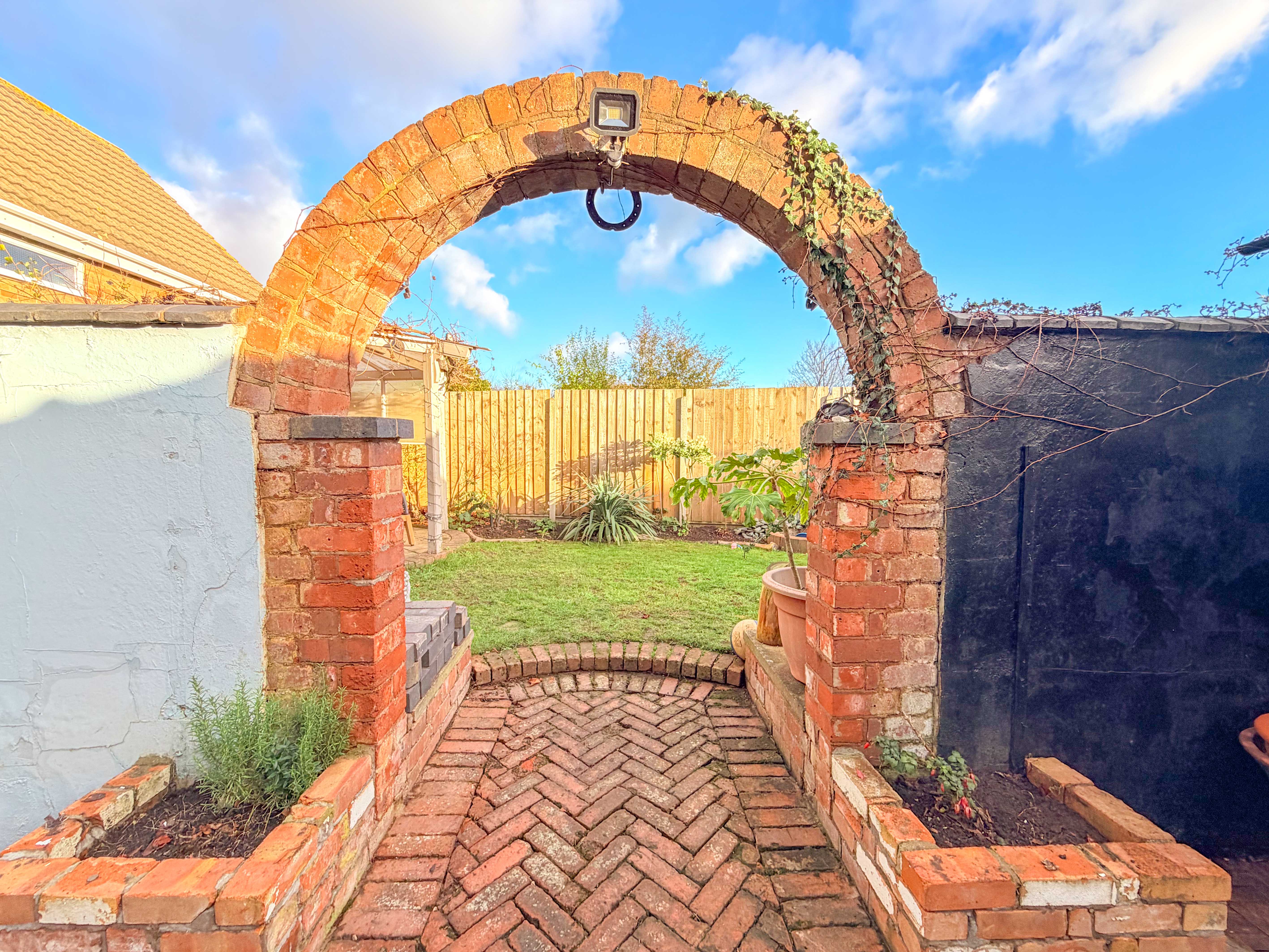 Outside, the property continues to impress with its delightful gardens to both the rear and side. The side garden provides a patio area with space for a lawn, ideal for outdoor dining or simply enjoying the sunshine. To the rear, a further patio leads through a charming rustic archway into a lawned garden, creating a peaceful and private outdoor retreat.