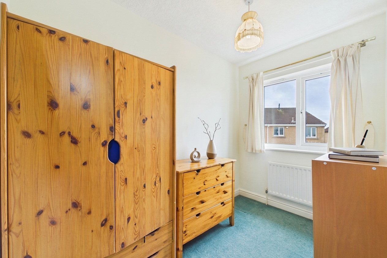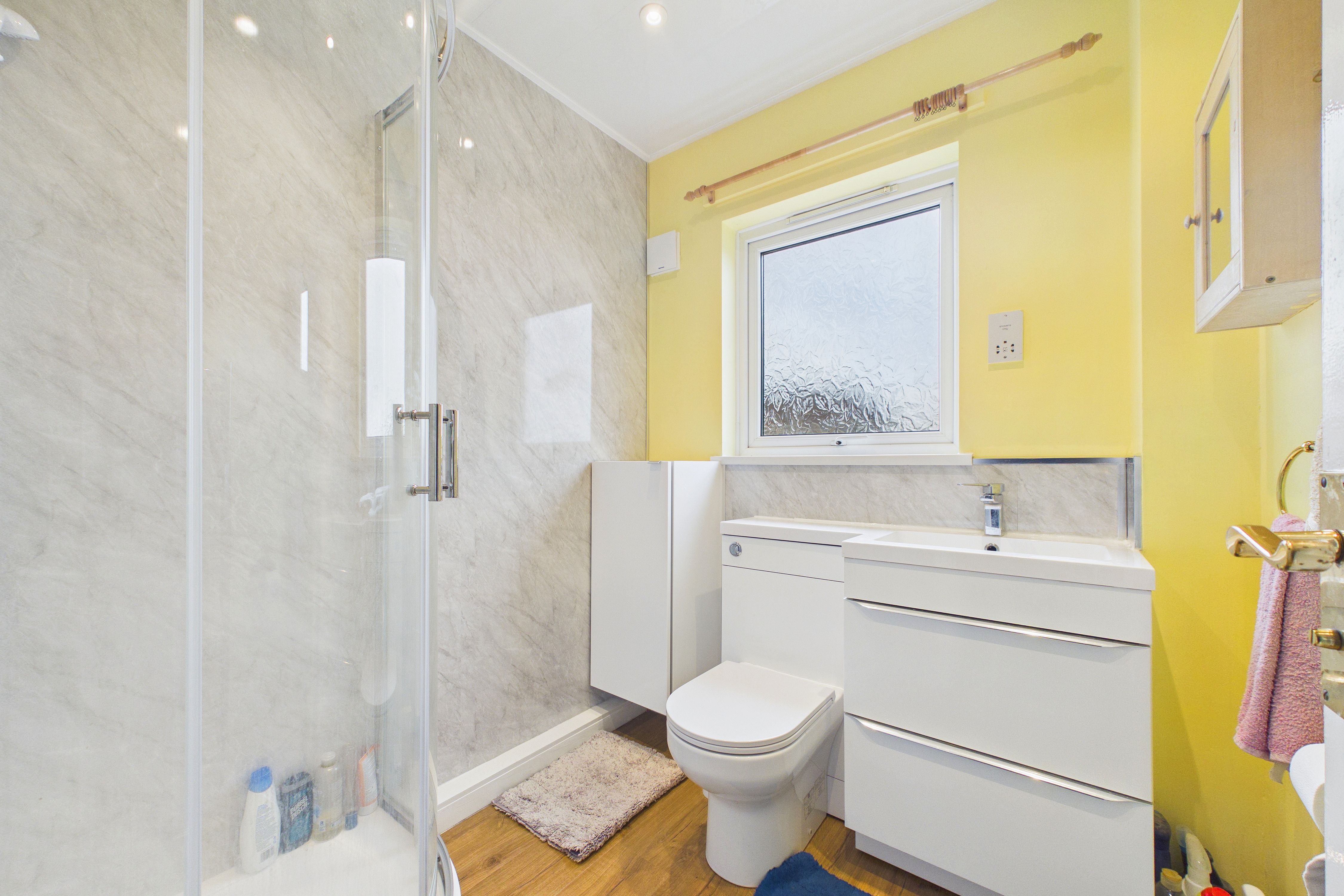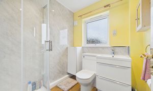 Upstairs, two well presented bedrooms await, each offering a peaceful retreat at the end of the day. The master bedroom is especially impressive, featuring a large built-in wardrobe that ensures ample storage without compromising on space. A contemporary shower room, conveniently located next to the bedrooms, adds to the home’s practical layout and modern appeal.