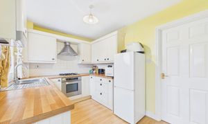 Step through the front door into a practical porch area, thoughtfully designed to keep coats and shoes neatly stored, before entering the heart of the home. The spacious lounge welcomes you with its warm, homely atmosphere, enhanced by an open under-stairs space that maximises the available room and offers flexibility for additional storage or a cosy reading nook. Moving through, the well maintained kitchen boasts modern fittings, including an integrated oven and hob, making meal preparation a pleasure. A separate rear porch adjacent to the kitchen provides further storage solutions, ideal for keeping every-day essentials organised and out of sight.