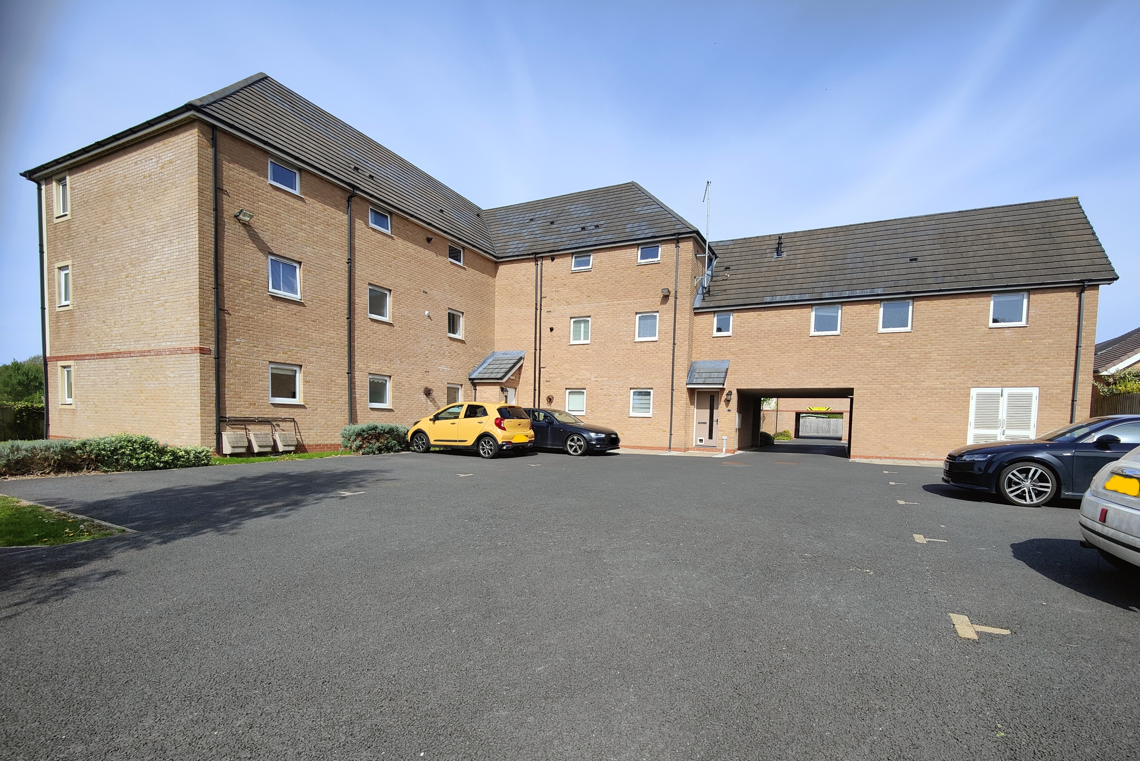 The communal gardens are well kept and pleasing with lawn space and hedge borders.