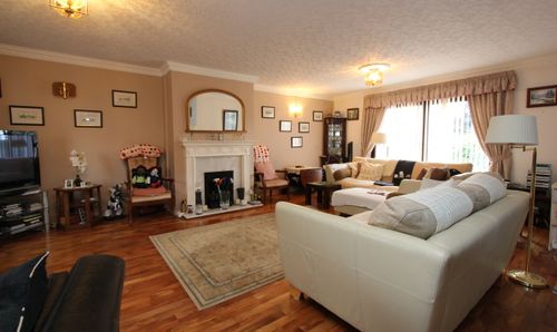 Measurements into bay. A very spacious room with engineered wood floor. Focal point of coal effect gas fire inset into a Marble back and hearth with traditional fire surround. Sliding uPVC double glazed doors to the rear garden. To the front a wooden double glazed window along with further box bay style uPVC double glazed windows. Coved ceiling with two ceiling roses plus two radiators.