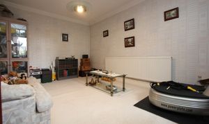 A spacious carpeted reception room with coved ceiling, radiator and front uPVC double glazed window and deep sill.