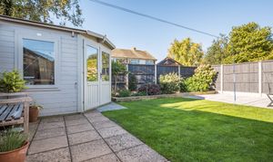 - South facing rear garden with Insulated Log Cabin and Electricity
