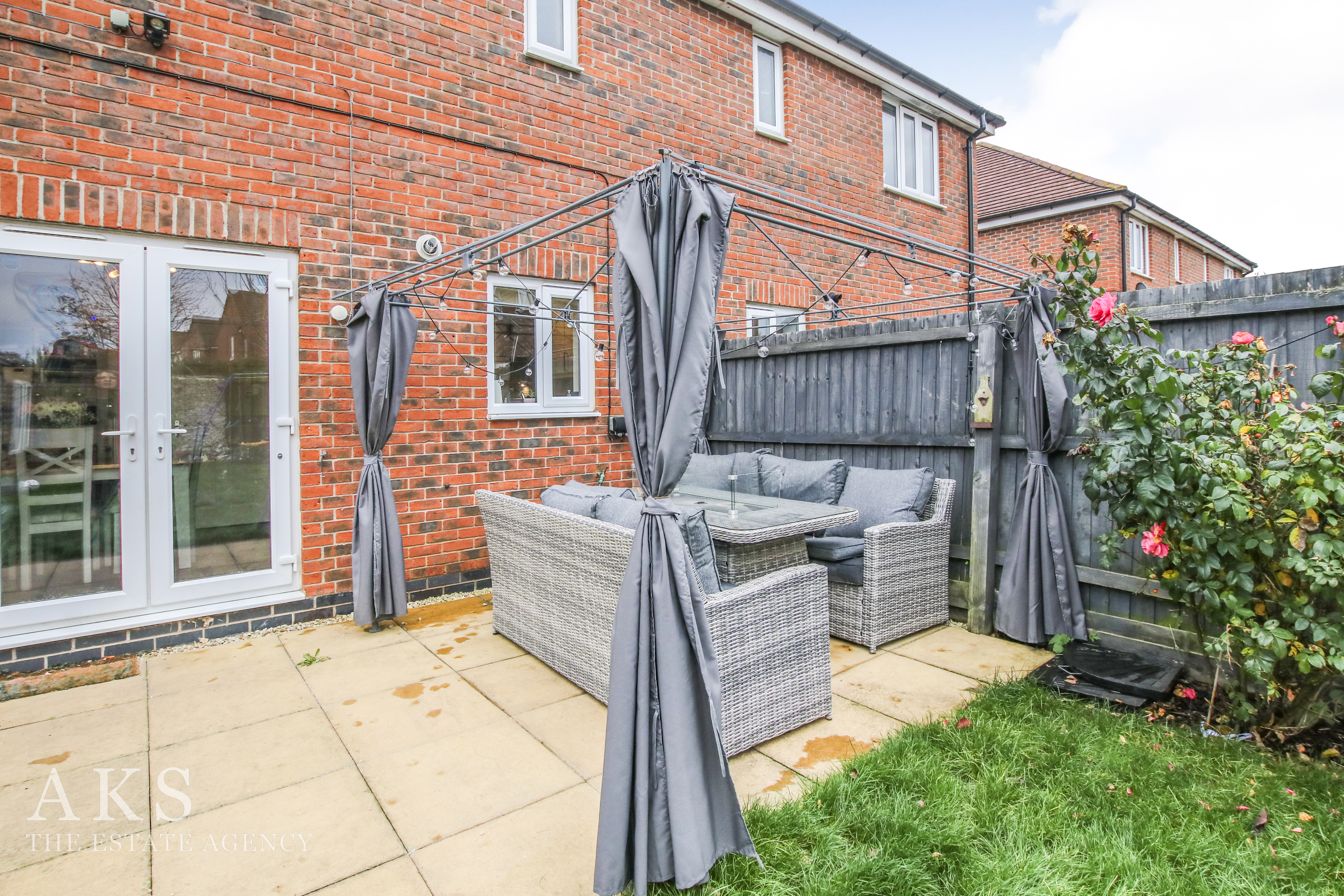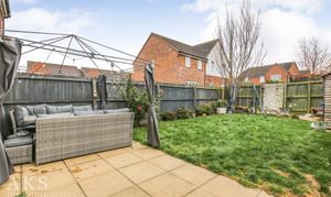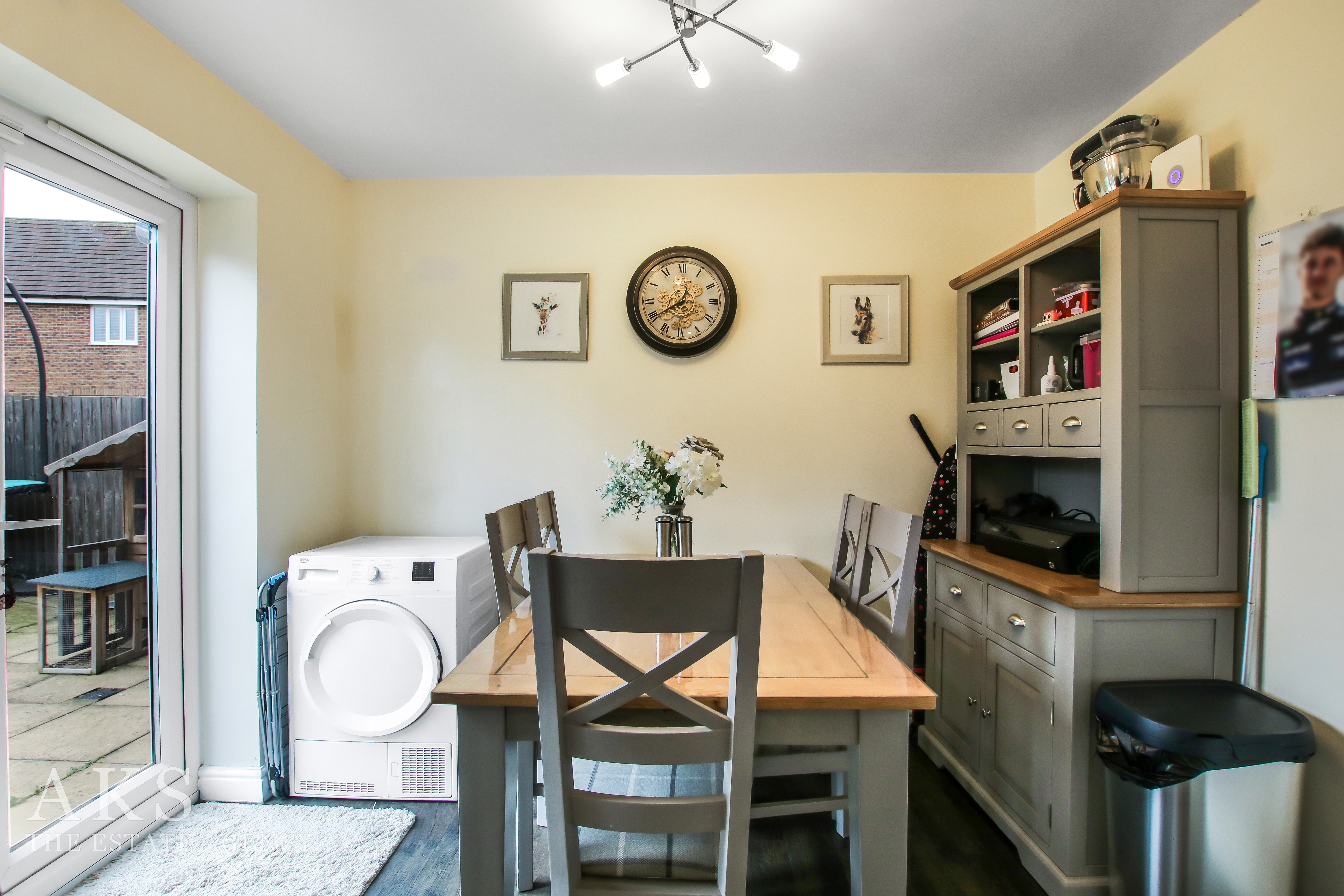 At the back of the home, the modern kitchen-diner provides plenty of room for free-standing appliances and there’s even a dishwasher! Patio doors open directly onto the versatile and spacious garden, offering multiple areas for sheds, outdoor furniture, or simply enjoying the outdoors.