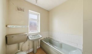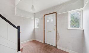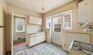 The ground floor is arranged around a central entrance hall with stairs rising to the first floor. To the front of the property is a well-proportioned living room featuring a bay window, providing a bright and spacious reception area. To the rear, a separate dining room offers good entertaining space with direct access to the garden. The kitchen sits adjacent to the dining room and provides scope for reconfiguration or extension (subject to the necessary consents), allowing purchasers to create a contemporary open-plan layout if desired.