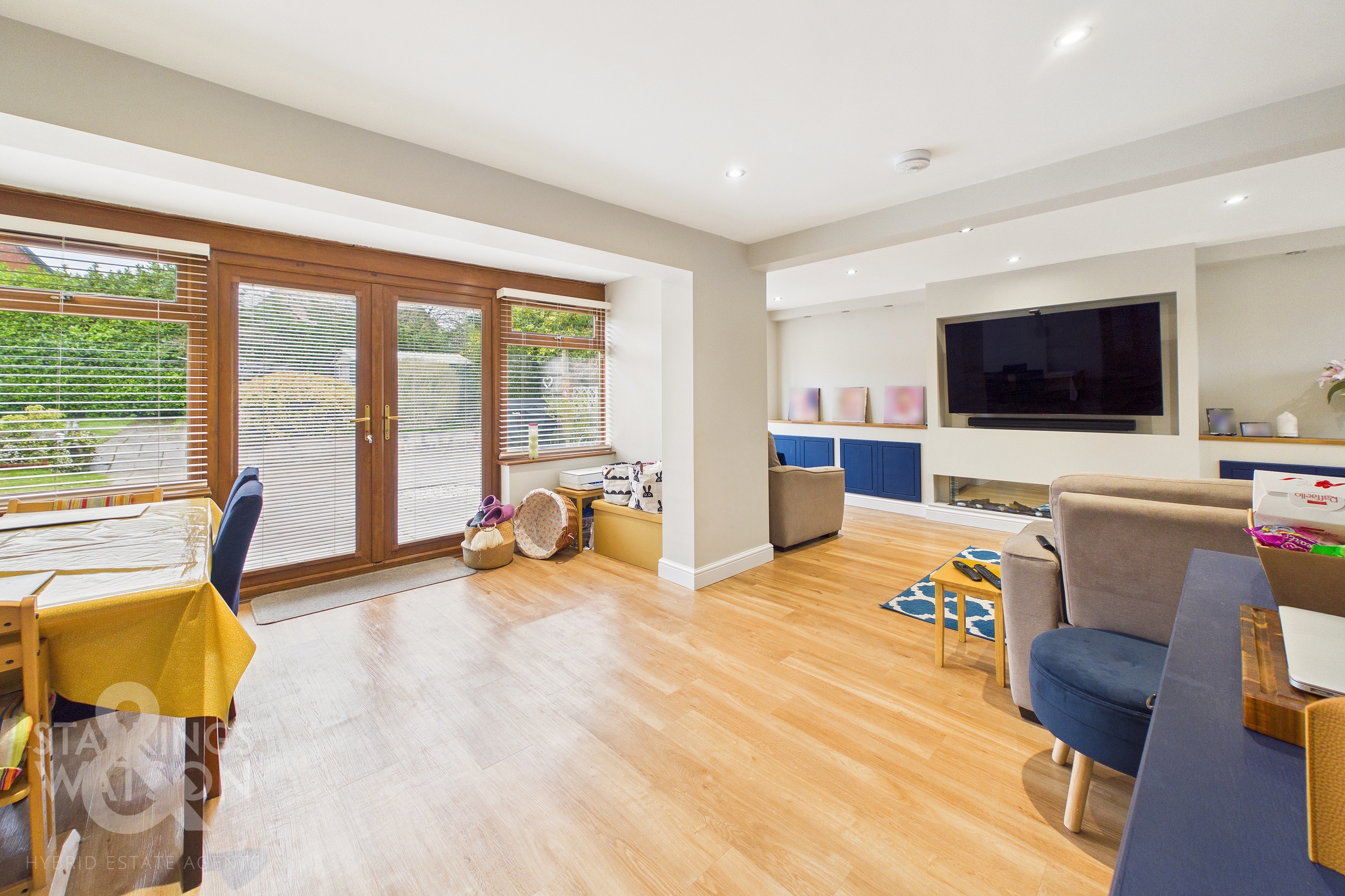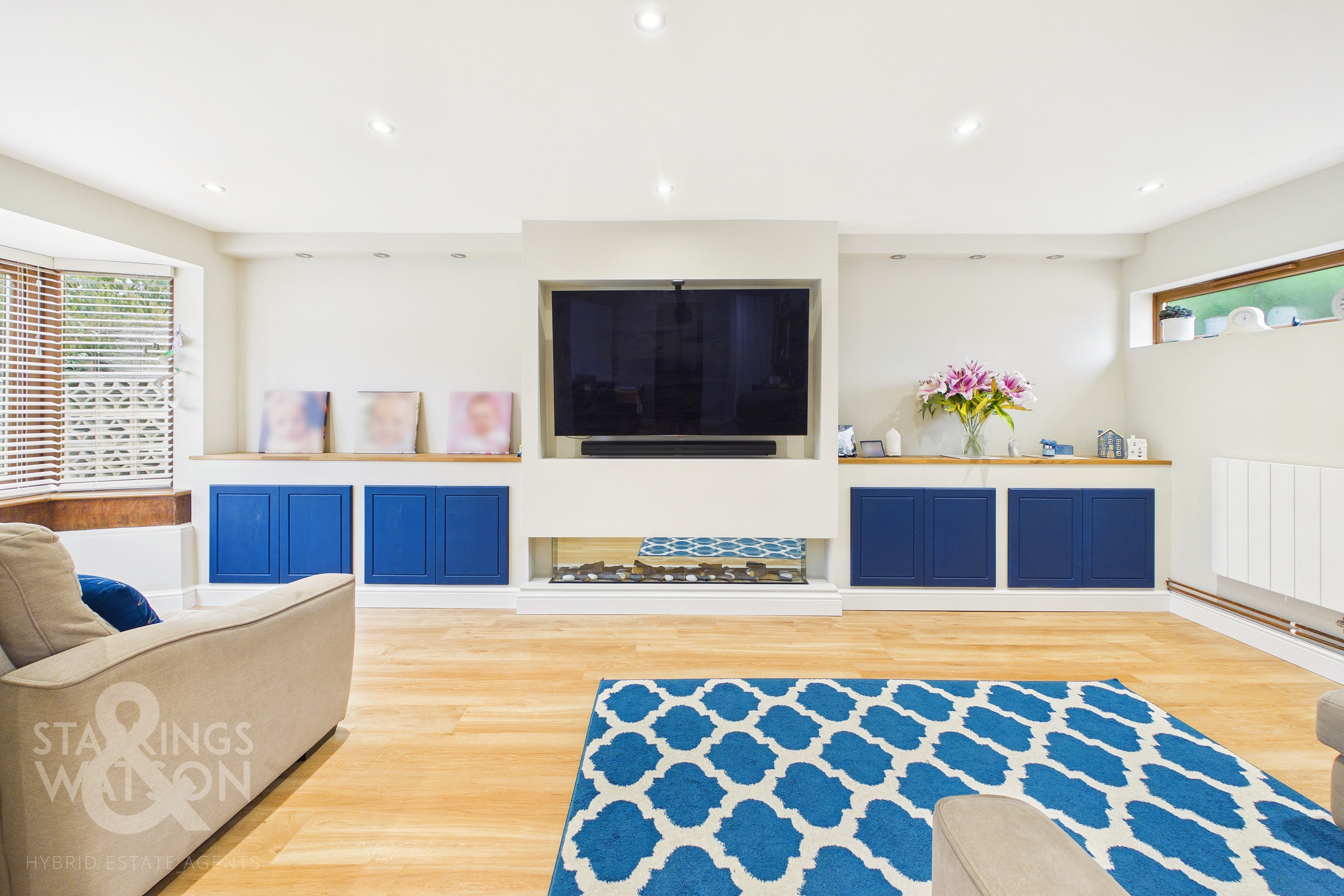 - 20' Open Plan Sitting/Dining Room with Bespoke Media Wall & Bay Window