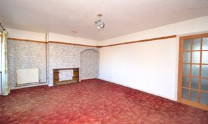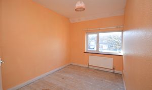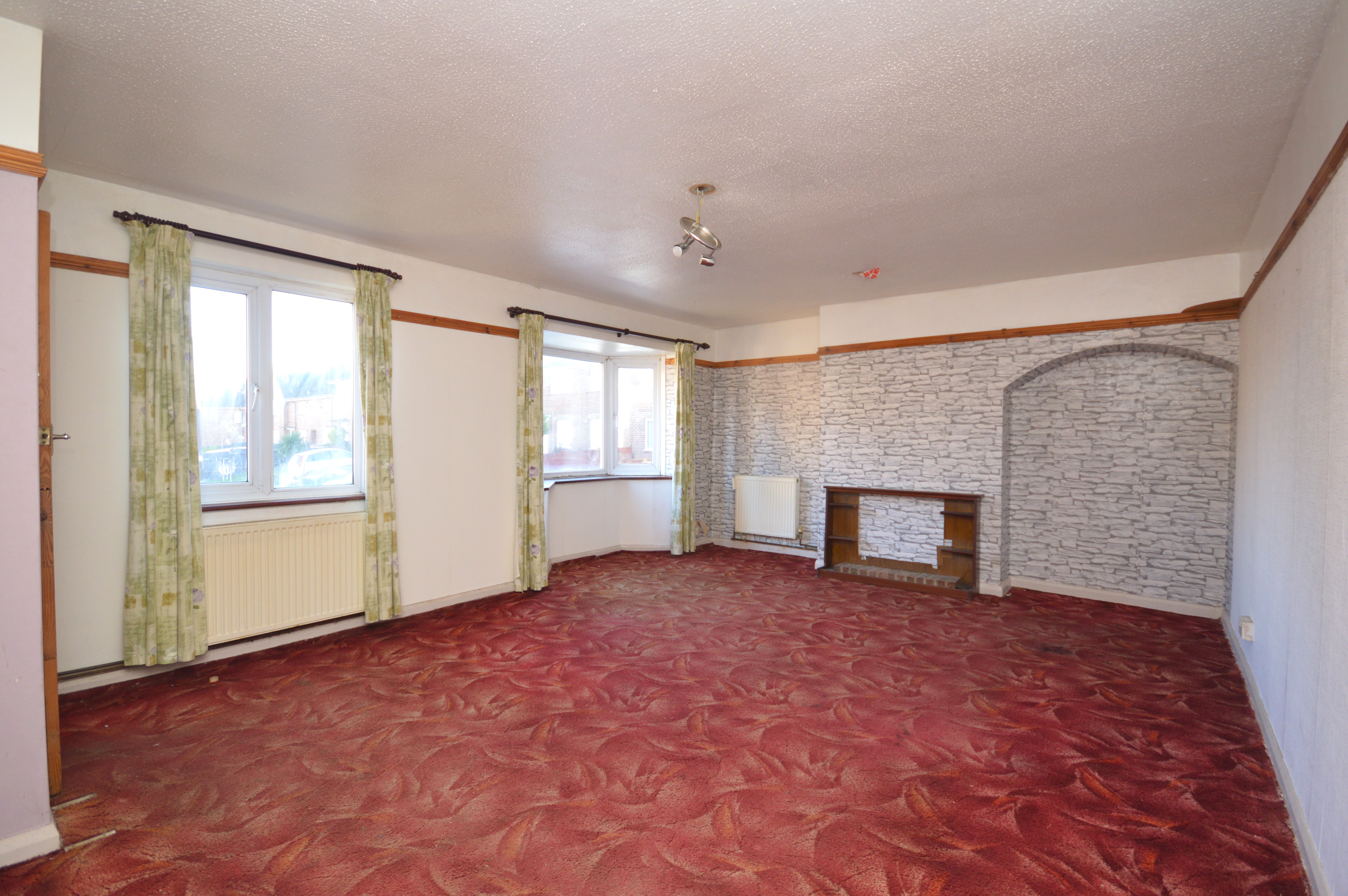 UPVC double glazed bay windows and separate UPVC double glazed window to the front of the property. Carpeted floor coverings, storage cupboard under the stairs and two radiators. Door to:-