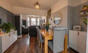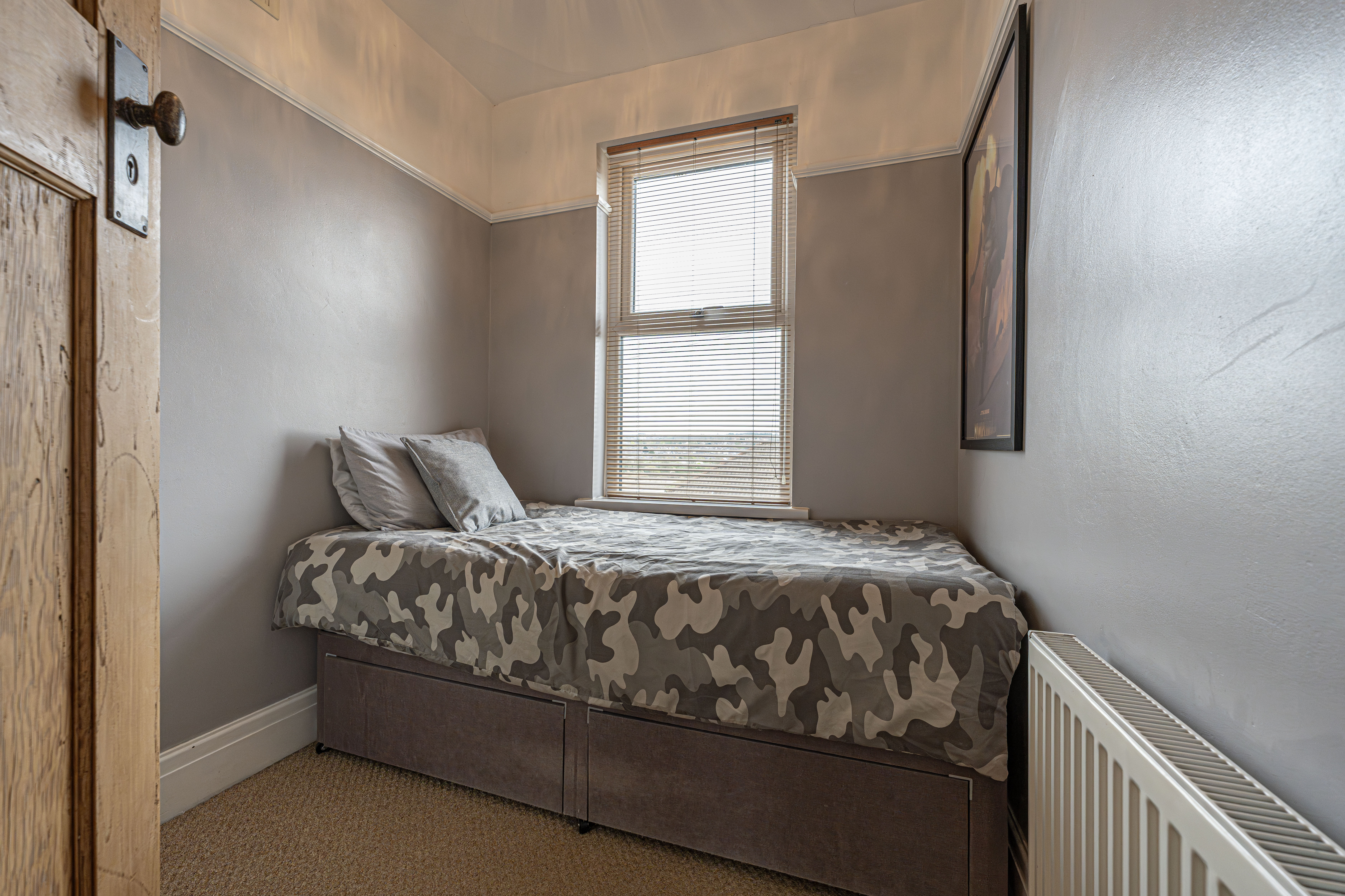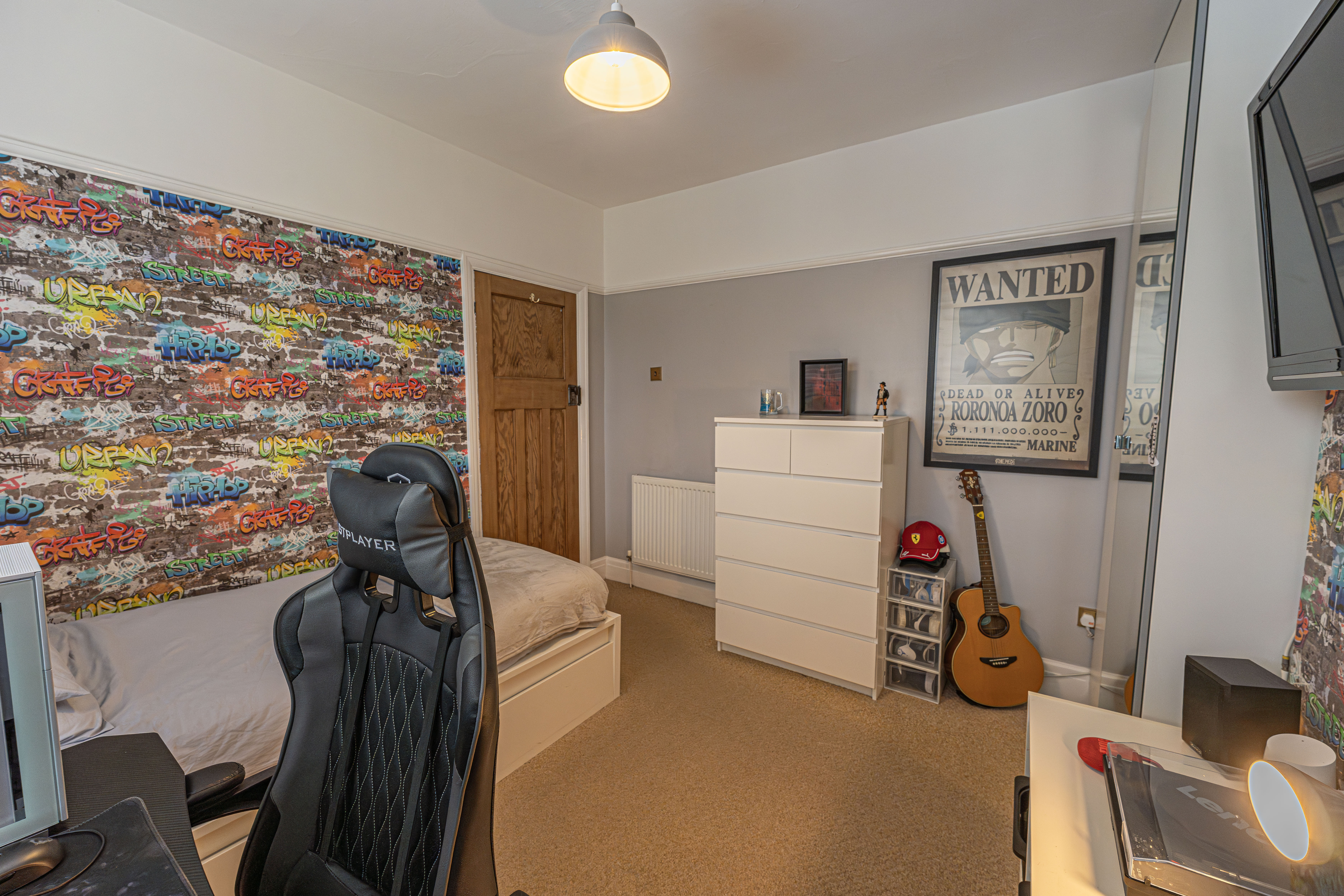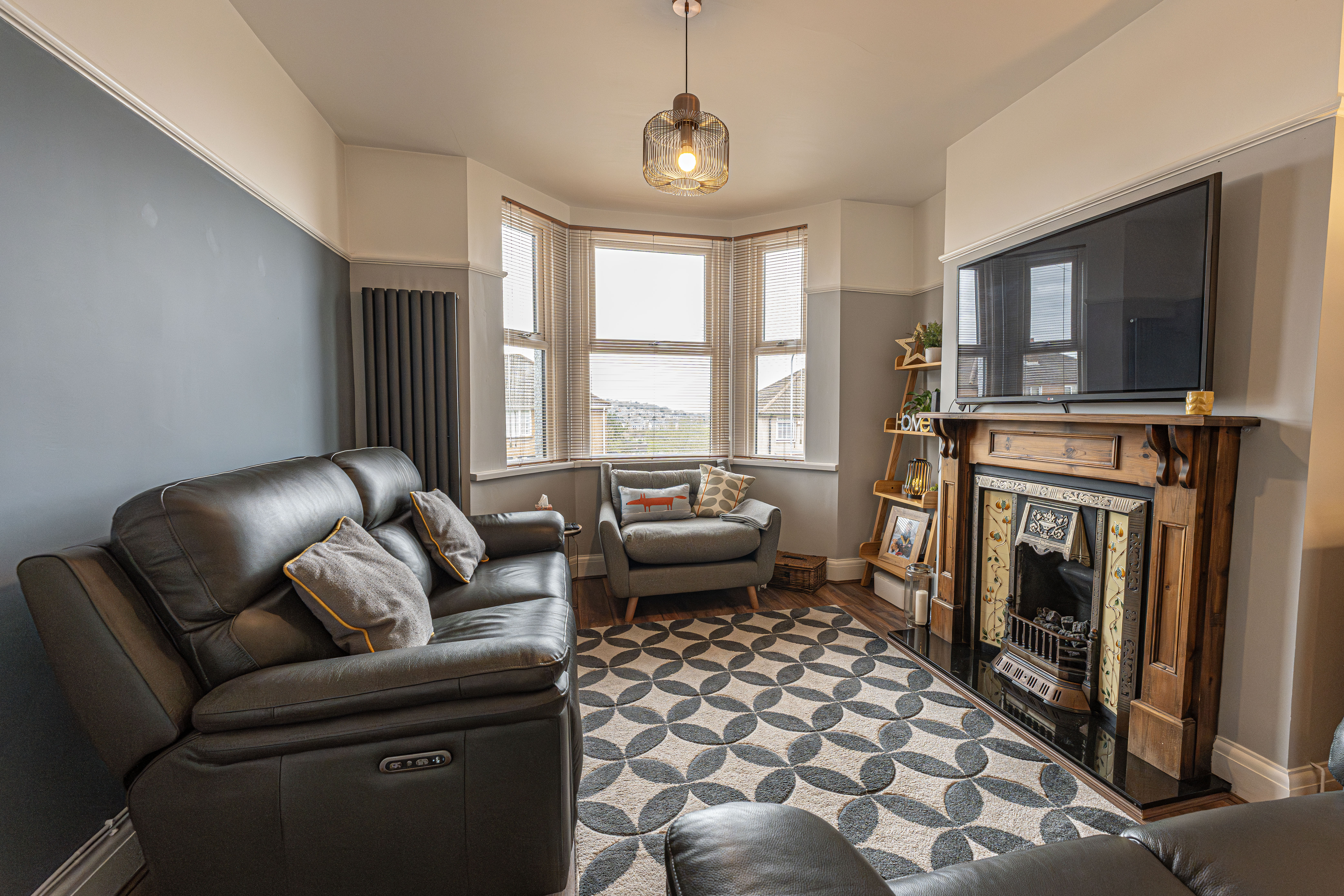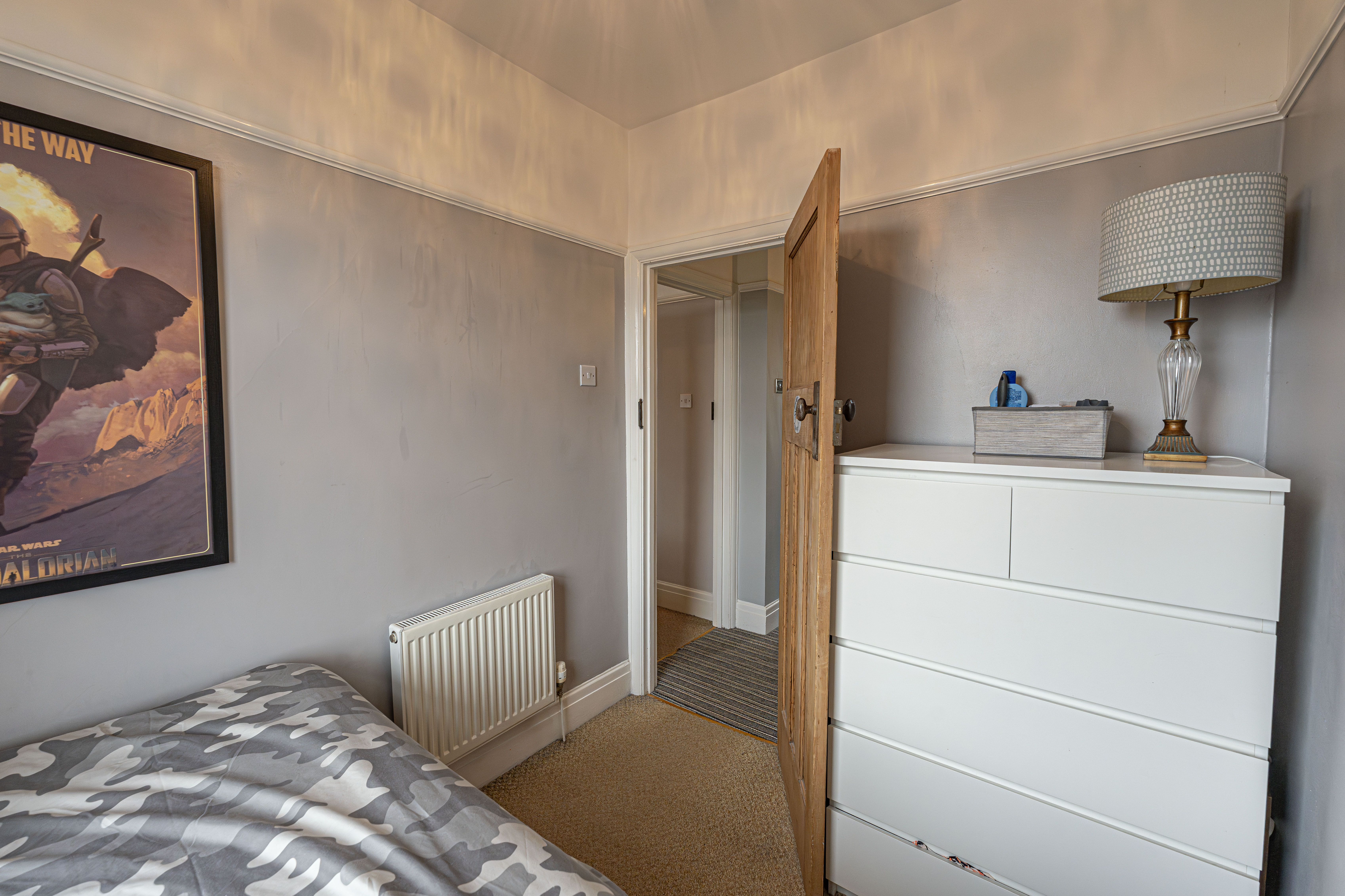 To the first floor we have three bedrooms - two of which are double in size, with the front facing bedroom enjoying the glorious bay windows of the floor below, and the secondary bedroom featuring a fitted airing cupboard for added convenience. The third bedroom is a cozy single, and offers great potential for repurpose into a home office or dressing room. Also found on the first floor is the modern bathroom, with a toilet, bath suite and overhead mixer/rainfall shower.