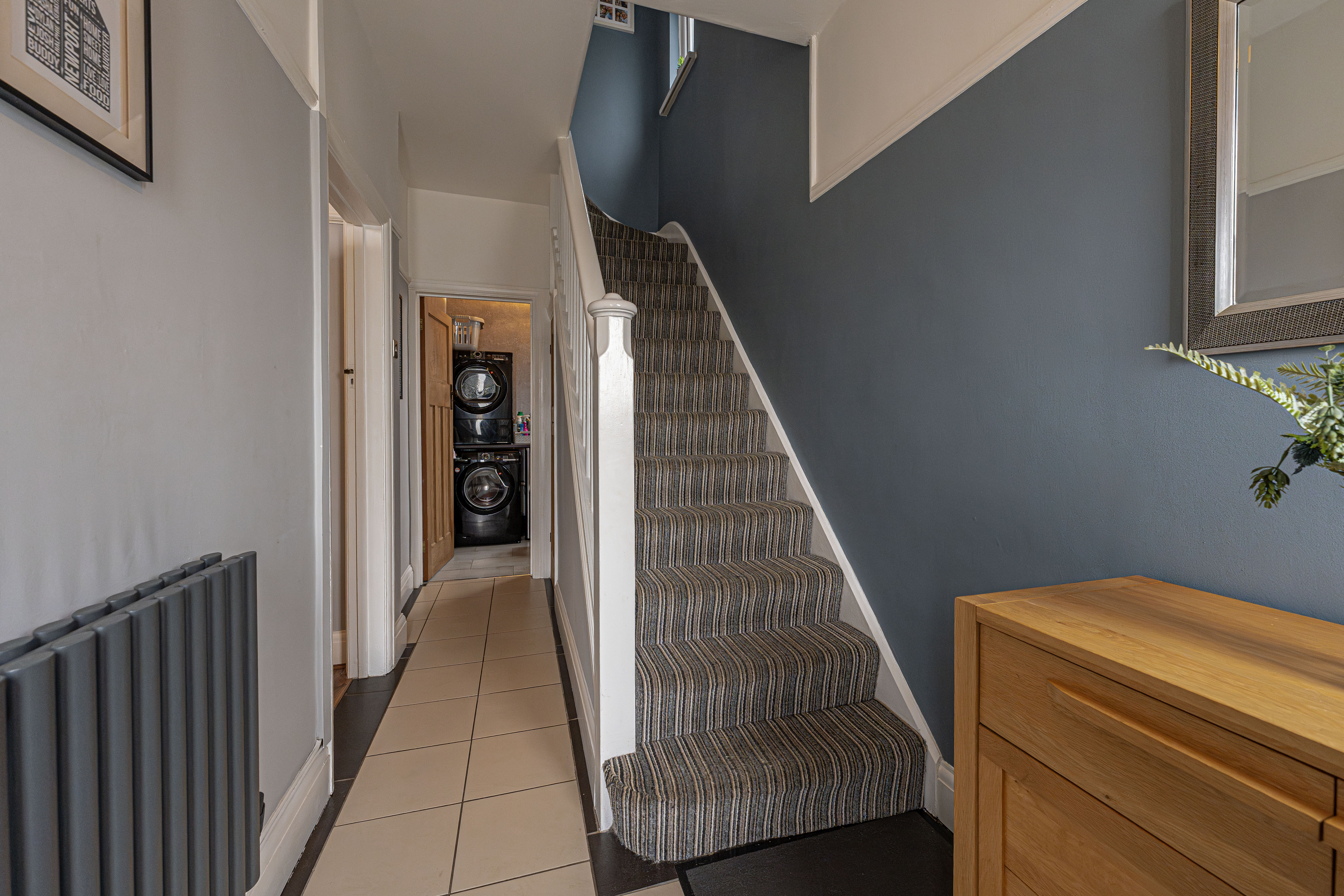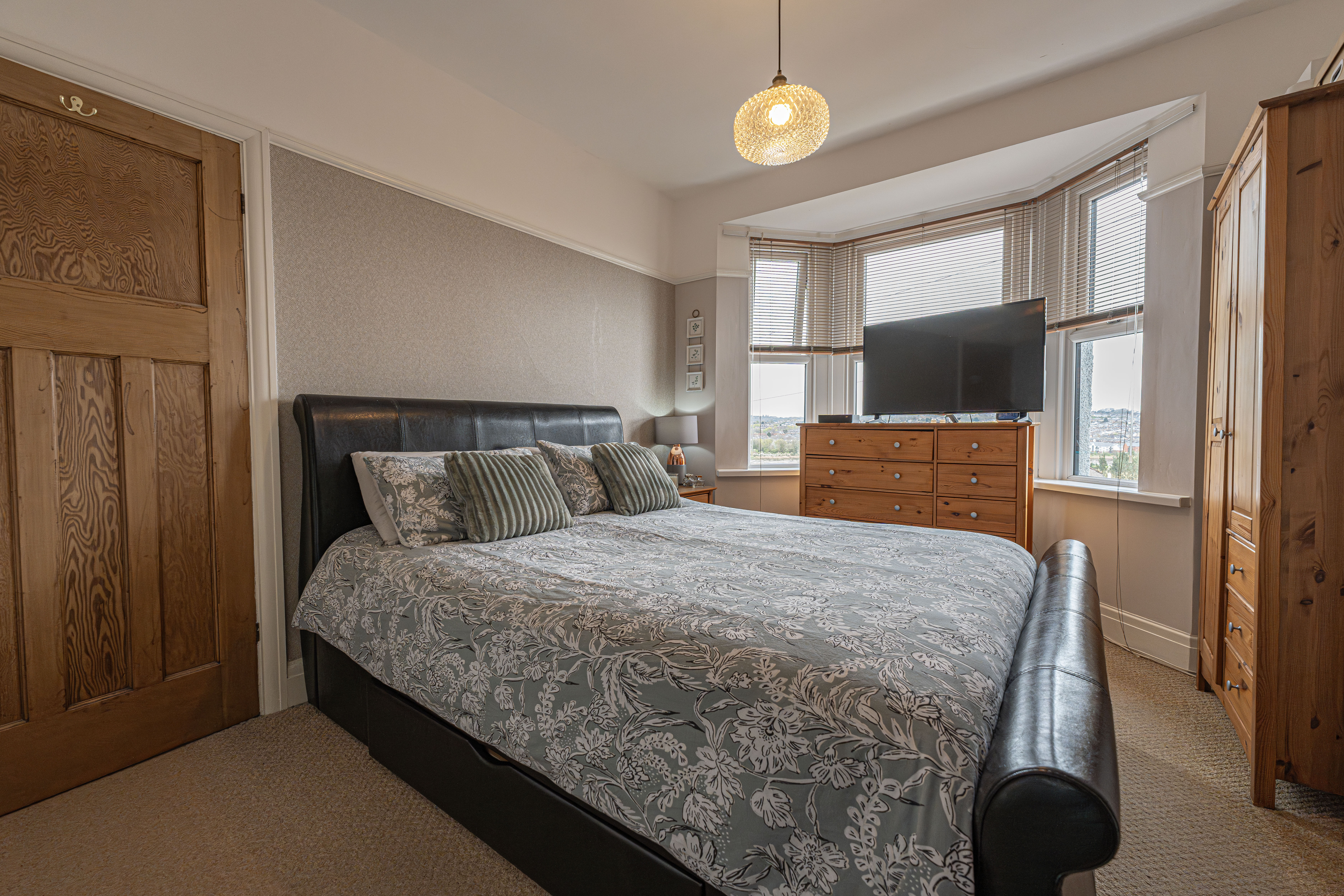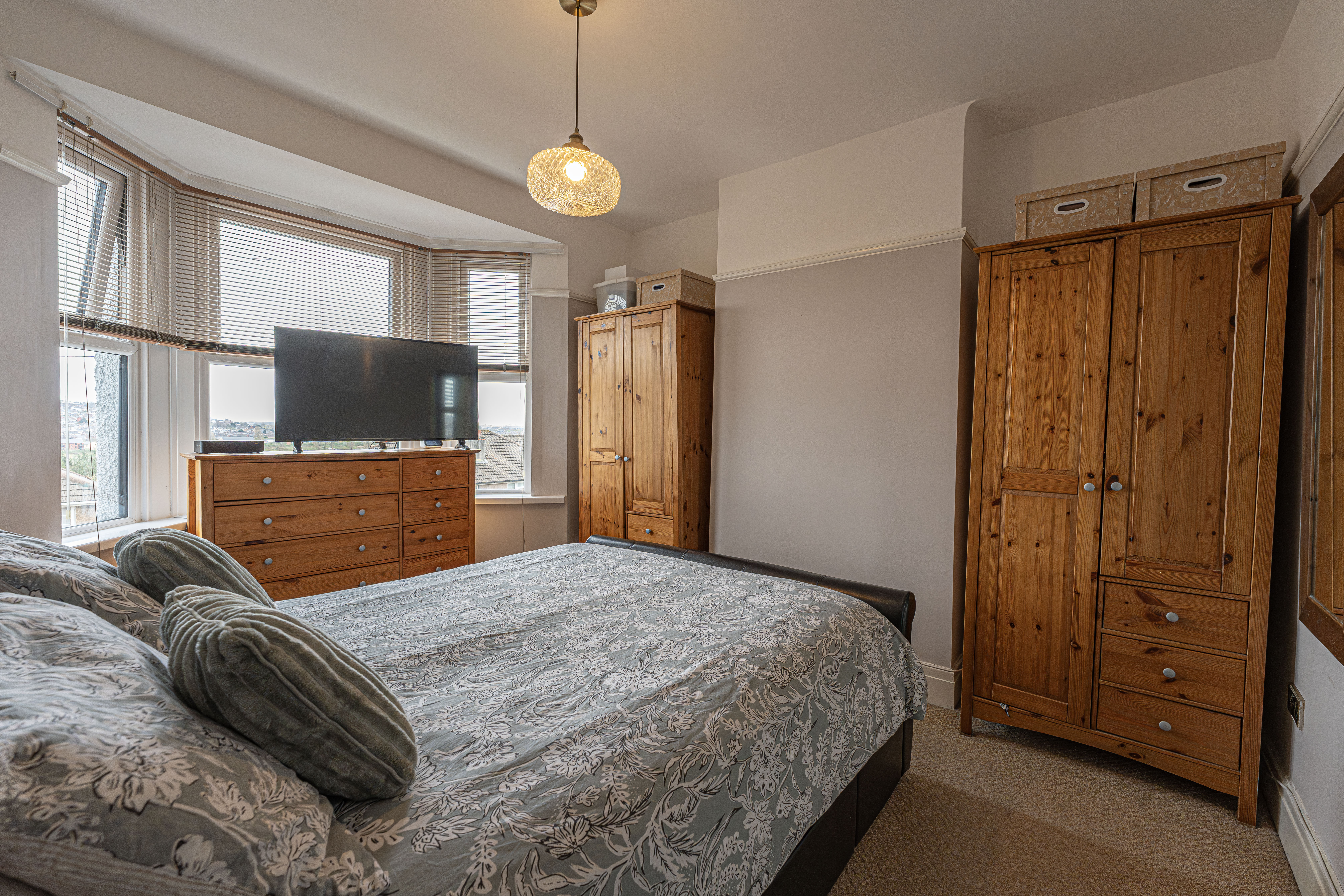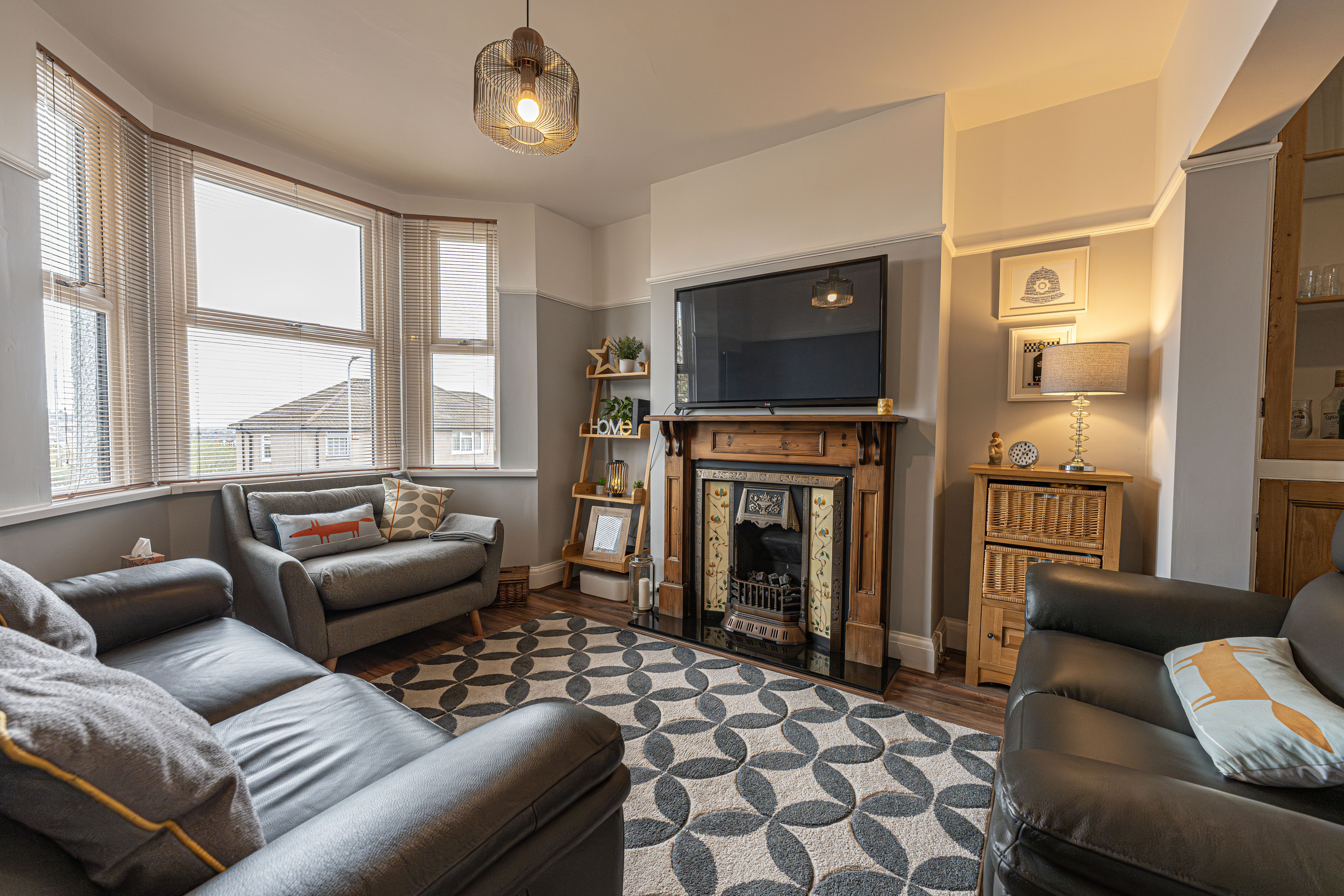 To the first floor we have three bedrooms - two of which are double in size, with the front facing bedroom enjoying the glorious bay windows of the floor below, and the secondary bedroom featuring a fitted airing cupboard for added convenience. The third bedroom is a cozy single, and offers great potential for repurpose into a home office or dressing room. Also found on the first floor is the modern bathroom, with a toilet, bath suite and overhead mixer/rainfall shower.
