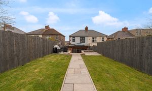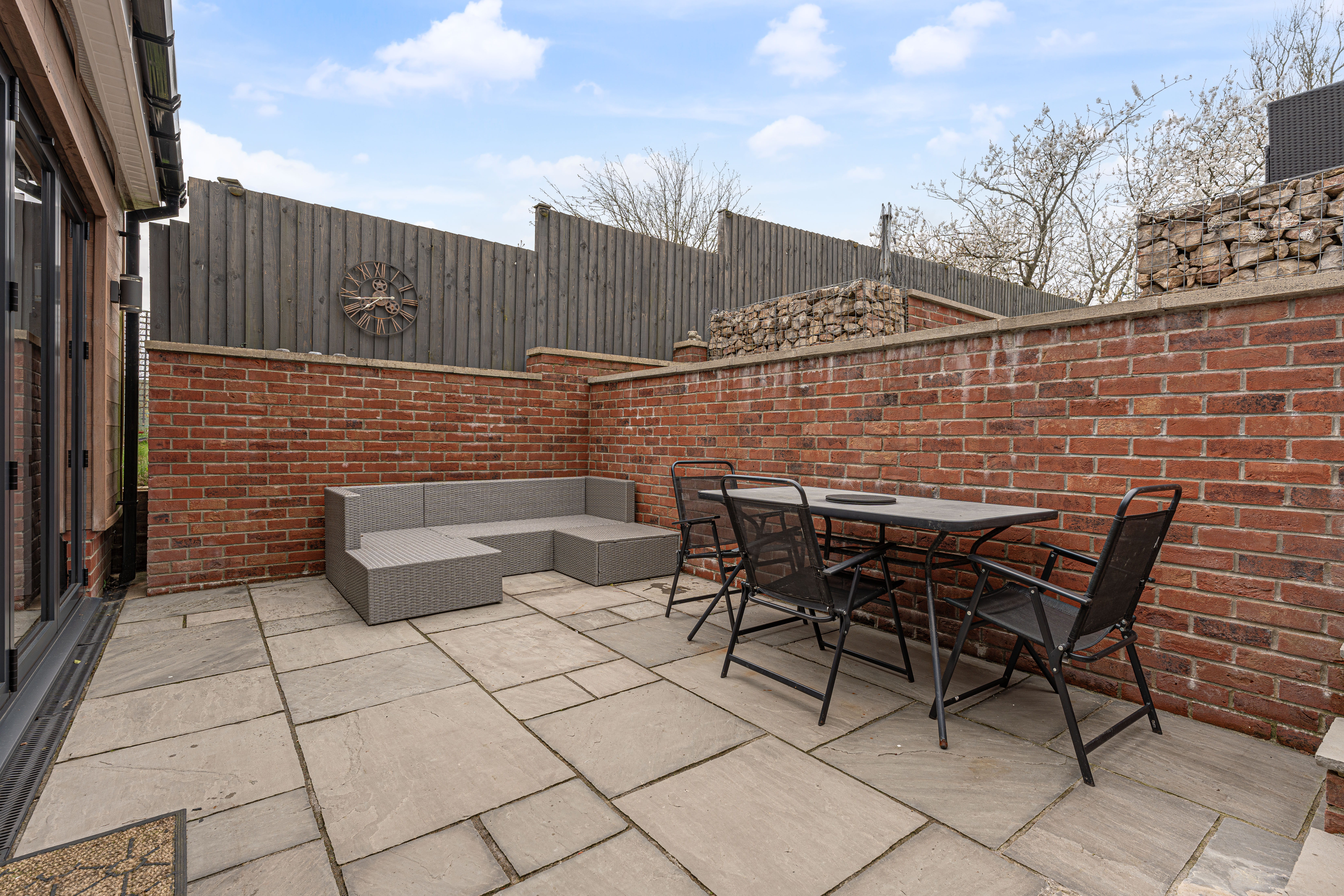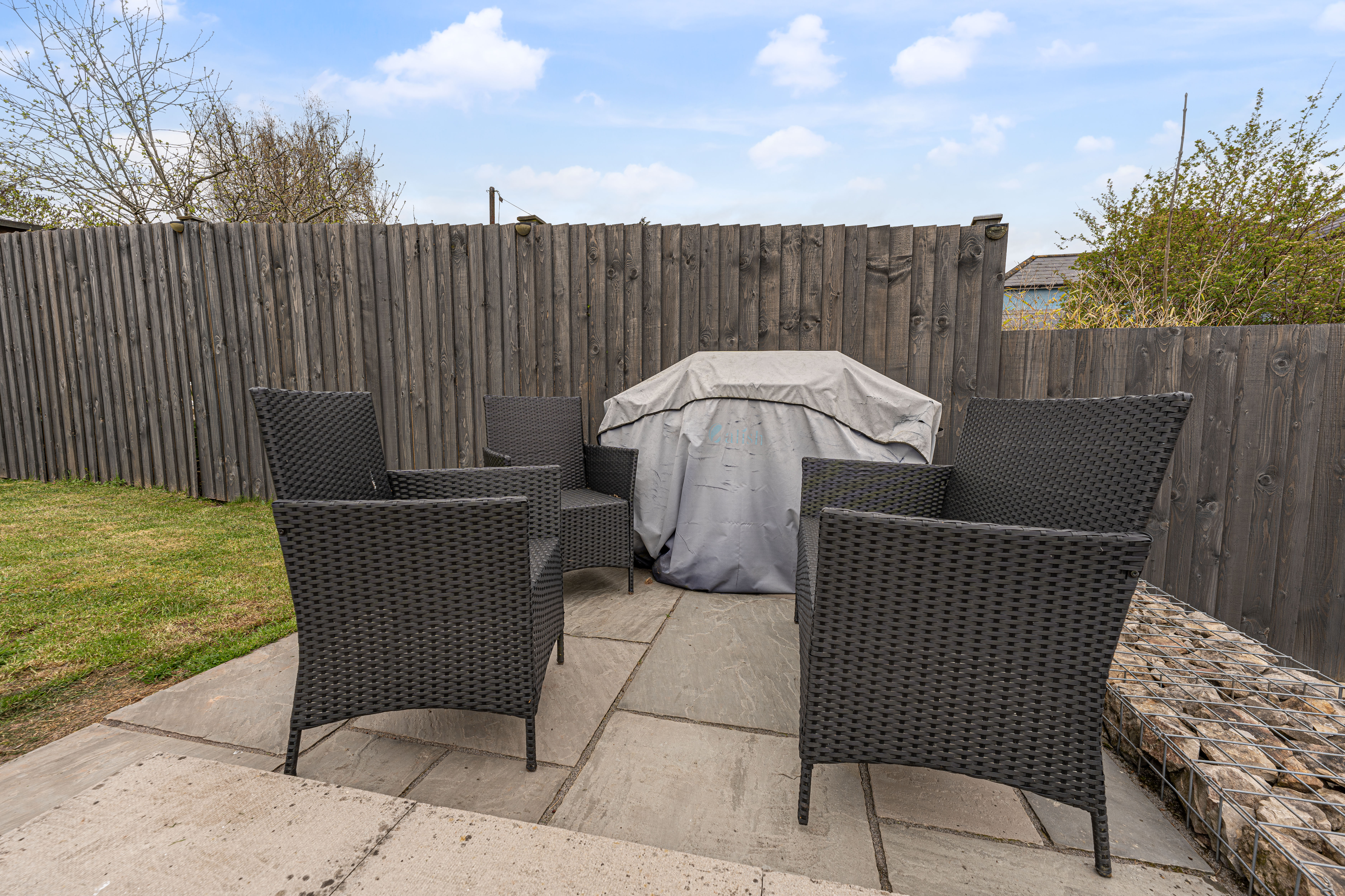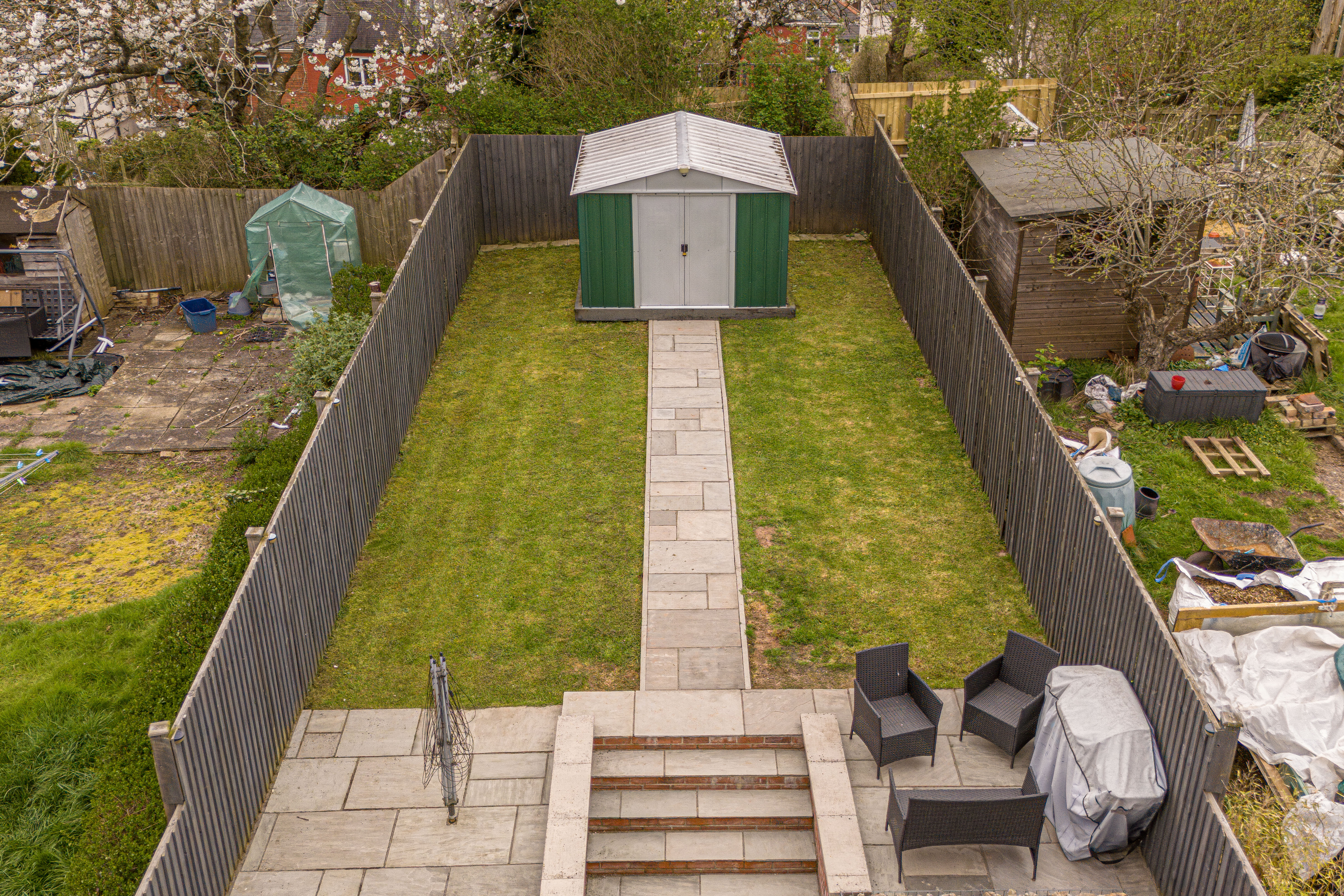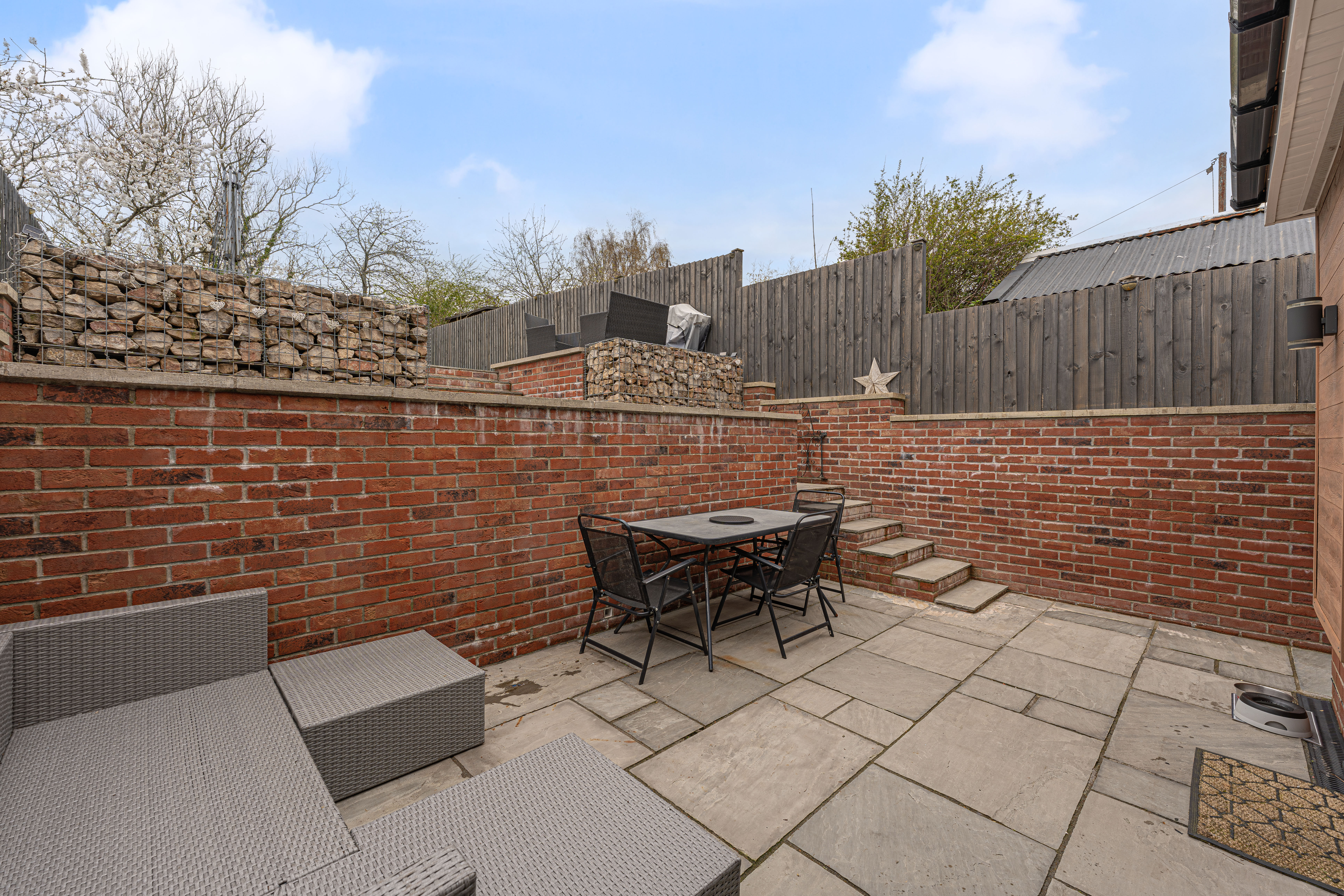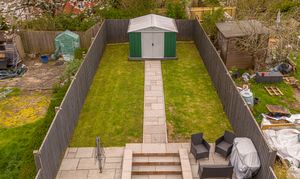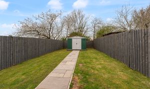 Stepping outside we have the incredible rear garden, which is fully enclosed and offers an abundance of space for residents to enjoy. Connected to the house is a spacious patio, which extends upwards to meet a sizeable grass lawn and a practical garden shed - ideal for storing bikes, tools and garden furniture. The garden is ideal for relaxing, outdoor dining, and offers a sizeable plot that is perfect for welcoming visitors for garden parties and family events. Additional highlights include another spacious patio at the front of the house, which provides impeccable kerb appeal.