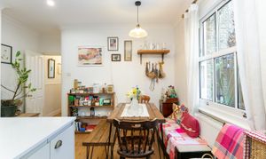 Location-wise, for transport, the flat sits within reach of several stations, which is useful on the days when one line is disrupted. Anerley is the closest at 0.5 miles — around 12 minutes on foot — with trains to London Bridge and West Croydon, and Overground services through to Dalston and Shoreditch. Norwood Junction is 0.8 miles, with a direct train to London Bridge in 13 minutes, and a second route via Crystal Palace that stops at Gipsy Hill, West Norwood, Herne Hill, East Dulwich, and Peckham. Birkbeck is also 0.5 miles, with a tram every 10 minutes towards Beckenham Junction or East Croydon. Elmers End, just under a mile, adds a further tram link and a direct train to Charing Cross. Betts Park is nearby, as is South Norwood Country Park, which offers 125 acres of parkland, wetlands, and meadow, and is under a mile away, and Crystal Palace Park is just under a mile in the other direction. On Anerley Hill, Café Chic is a Persian café with a garden that locals treat as a reliable default — the falafel and halloumi wraps and coffee are consistently good, and the outdoor space works well for a late morning or a long lunch. Bob Wines is next door. Chatsworth Bakehouse draws a queue on most weekends, and rightly so. The Crystal Palace Wine Club is a more recent arrival that has settled in well. Further up the hill, the Triangle covers most things — gastropubs, independent coffee shops, an Everyman cinema, vintage shops, galleries, and the Haynes Lane food market, which runs on Saturdays. Tenure-wise, the flat has a Share of freehold, with no ground rent or service charge.