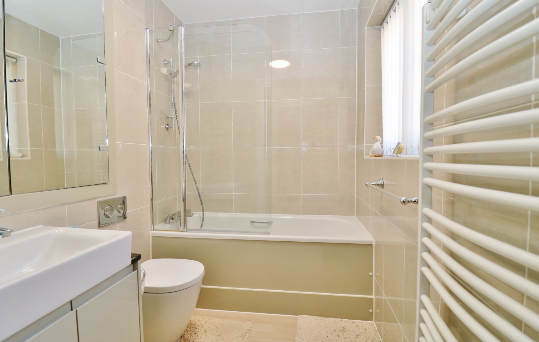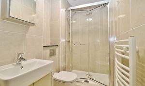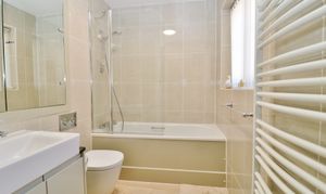 Bedroom two also overlooks the rear and has a built-in wardrobe, whilst the modern bathroom comprises a vanity wash hand basin, bath with shower attachment and screen over, WC, heated towel rail and a window to the front.