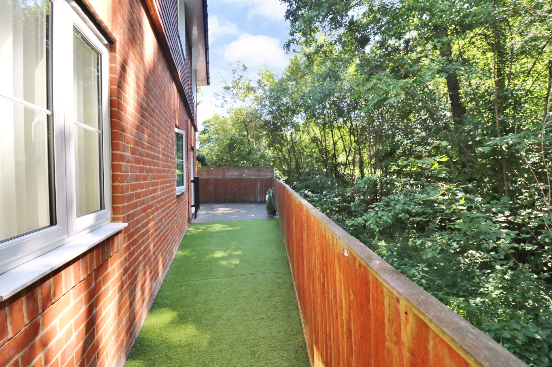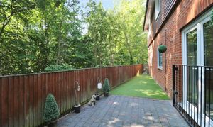 To the side of the property there is allocated parking for one car and gated access leading round to the small, private rear garden (for the sole use of number 1 Shafford Meadows) and a private external garden store. The garden backs directly onto neighbouring trees, offering a great degree of privacy, and has patio area and a section of artificial lawn.