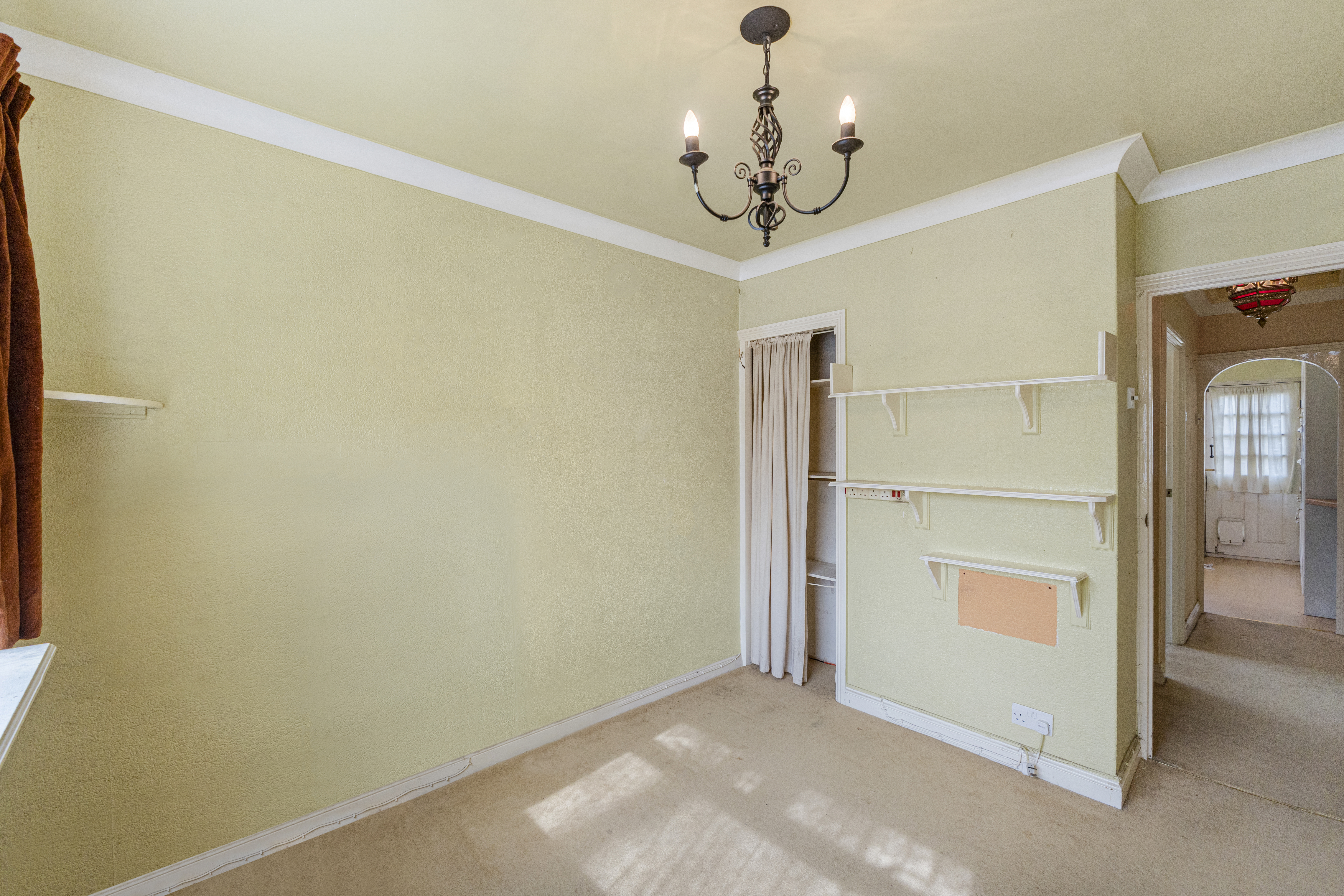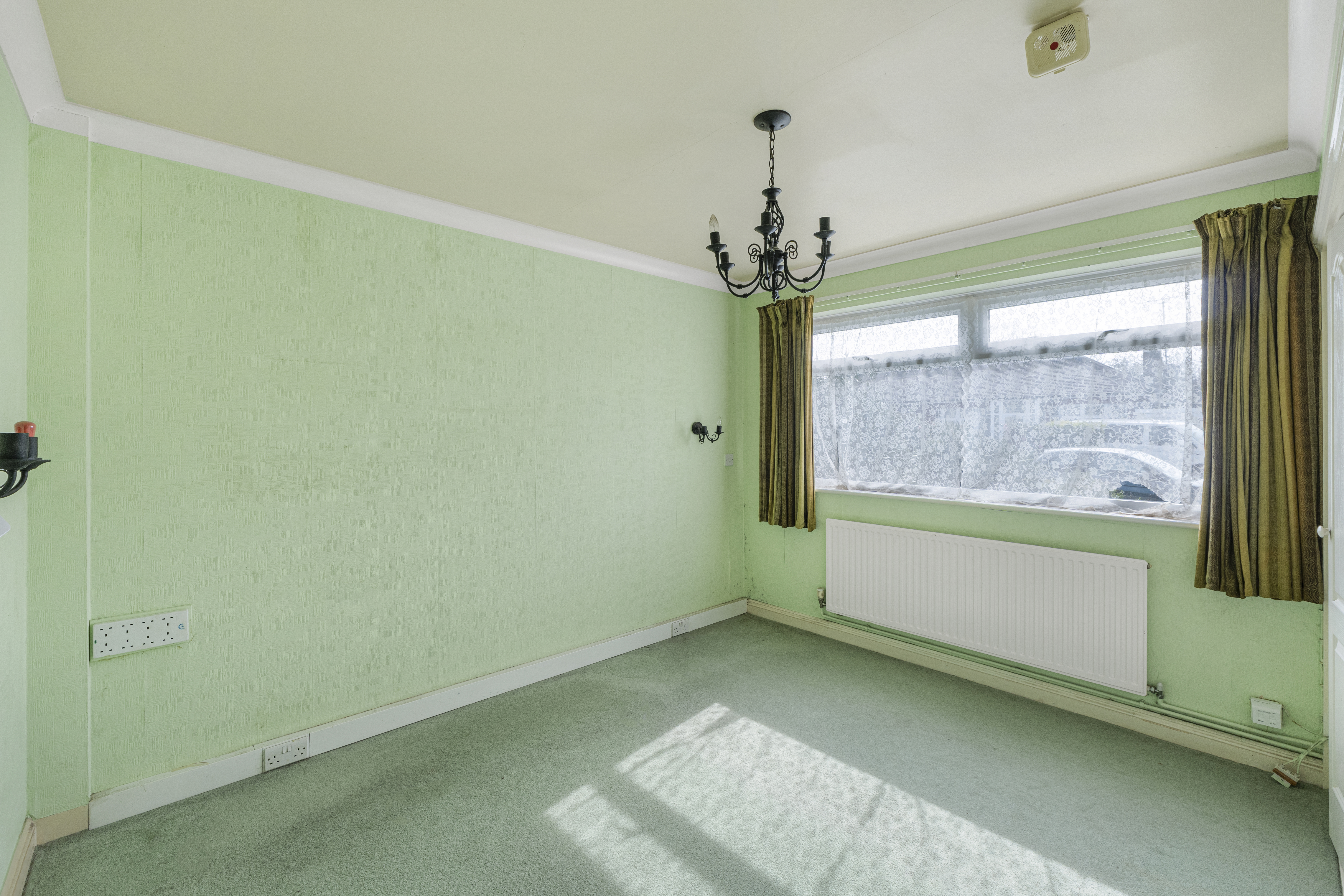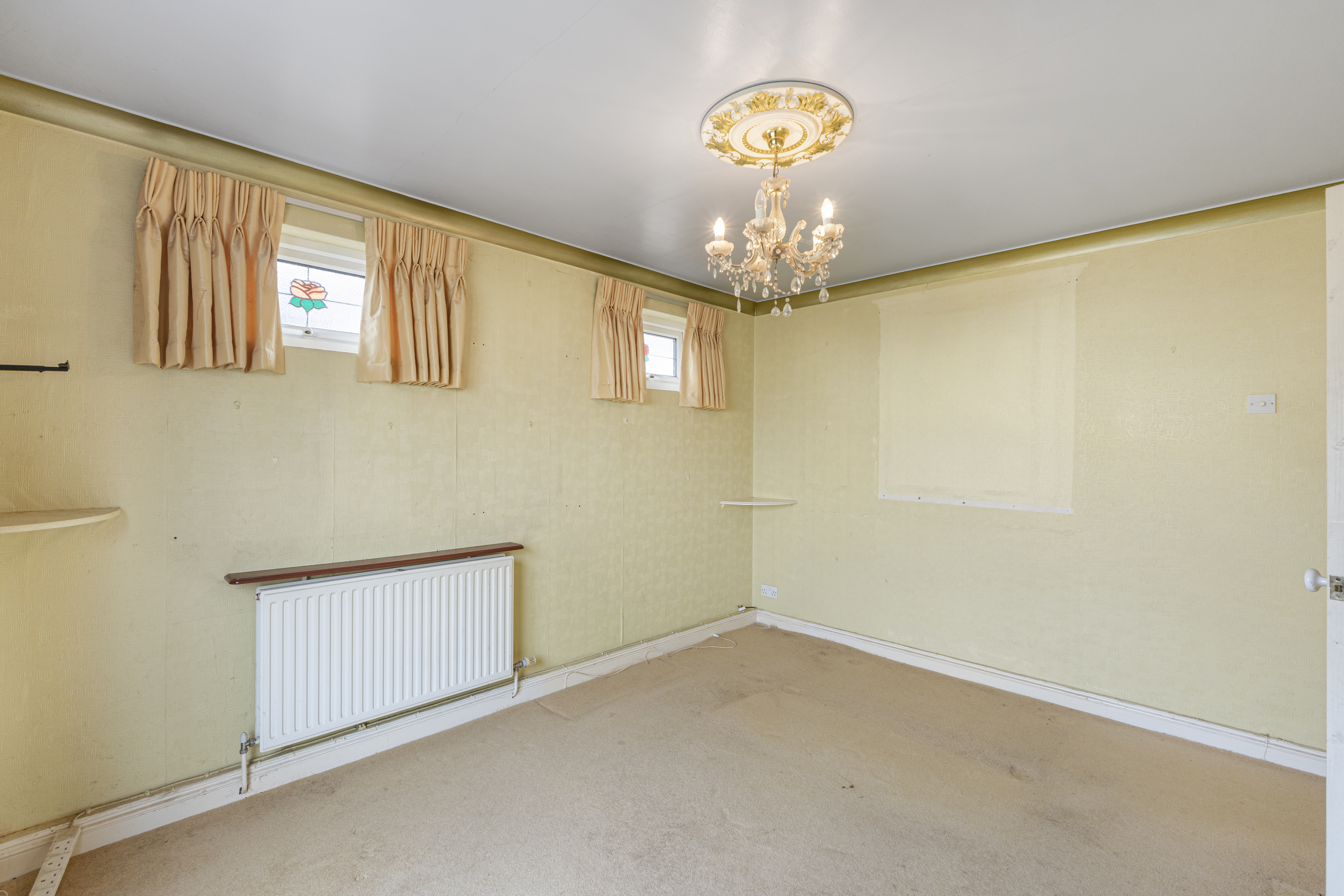 Internally, the bungalow offers a straightforward and practical layout. An entrance porch leads into an L-shaped hallway with built-in storage, giving access to all rooms.