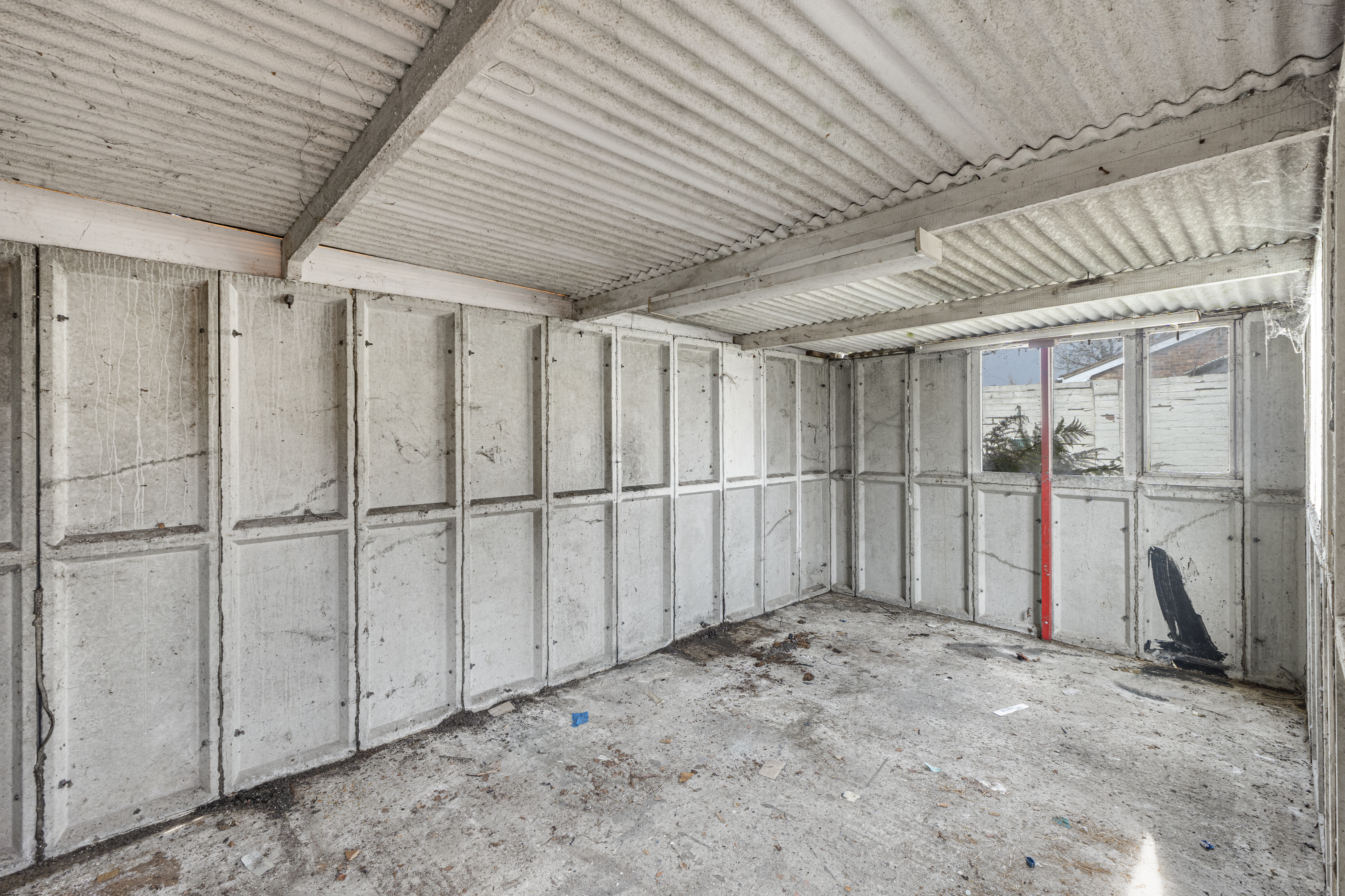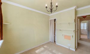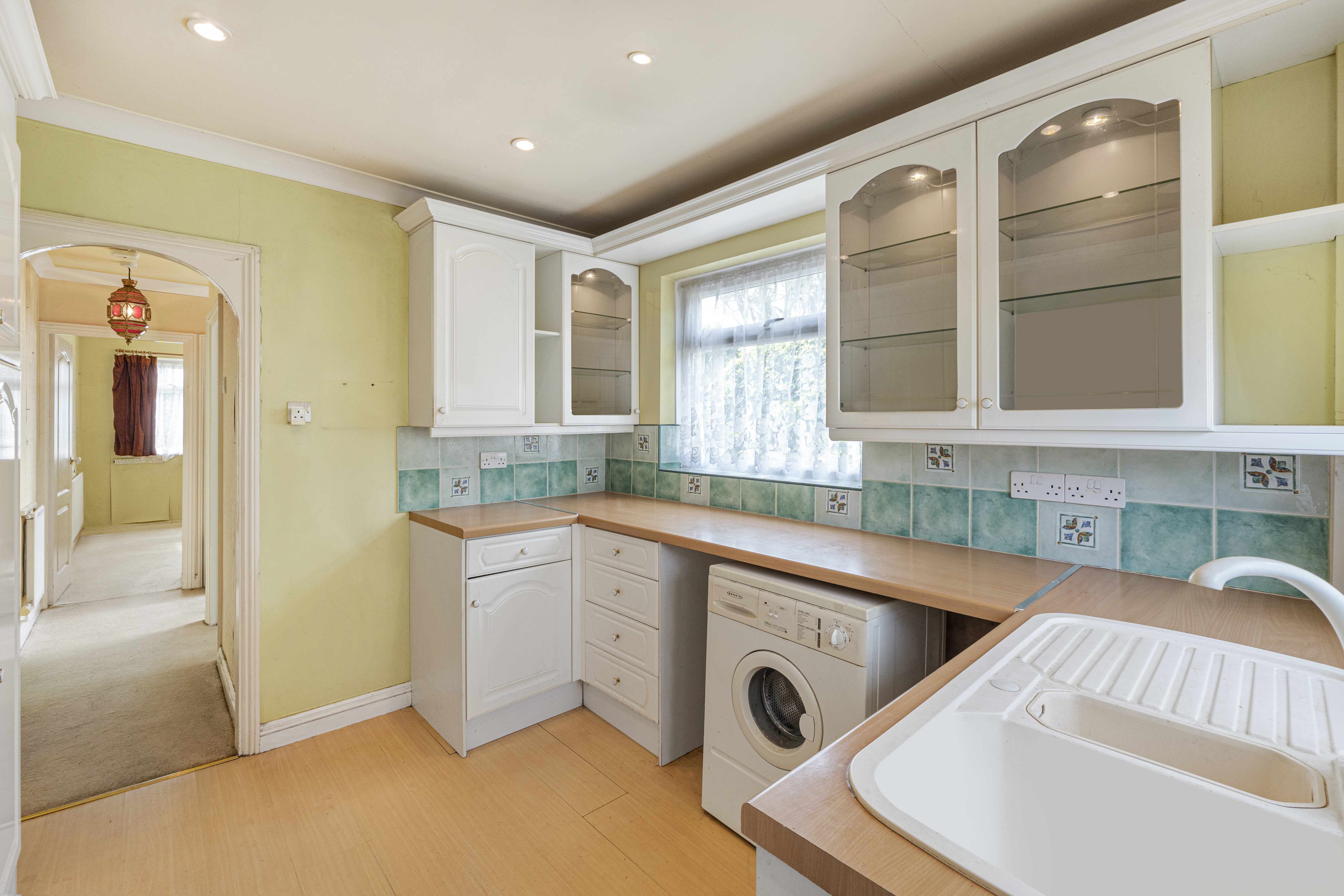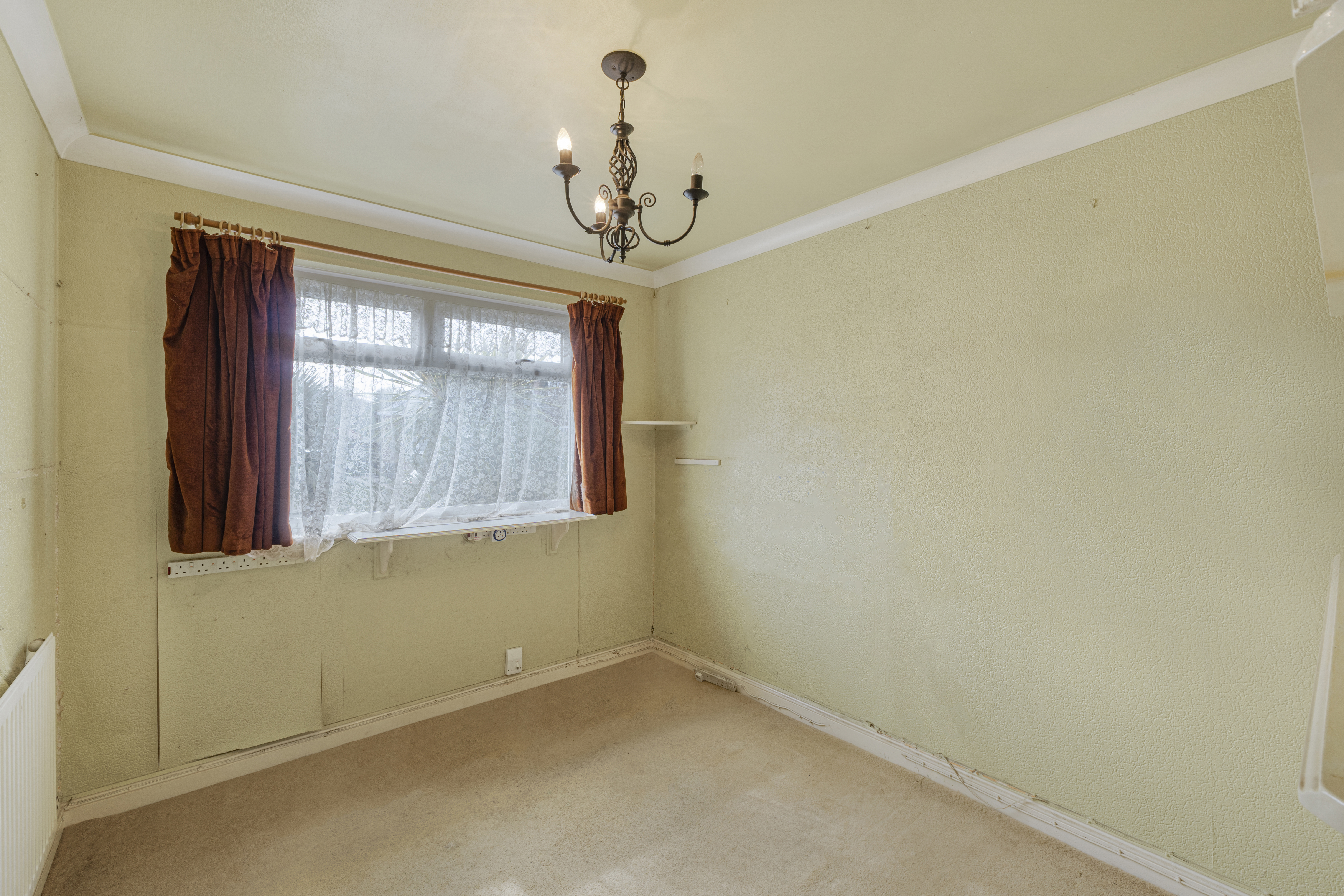 Internally, the bungalow offers a straightforward and practical layout. An entrance porch leads into an L-shaped hallway with built-in storage, giving access to all rooms.