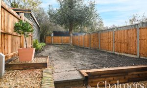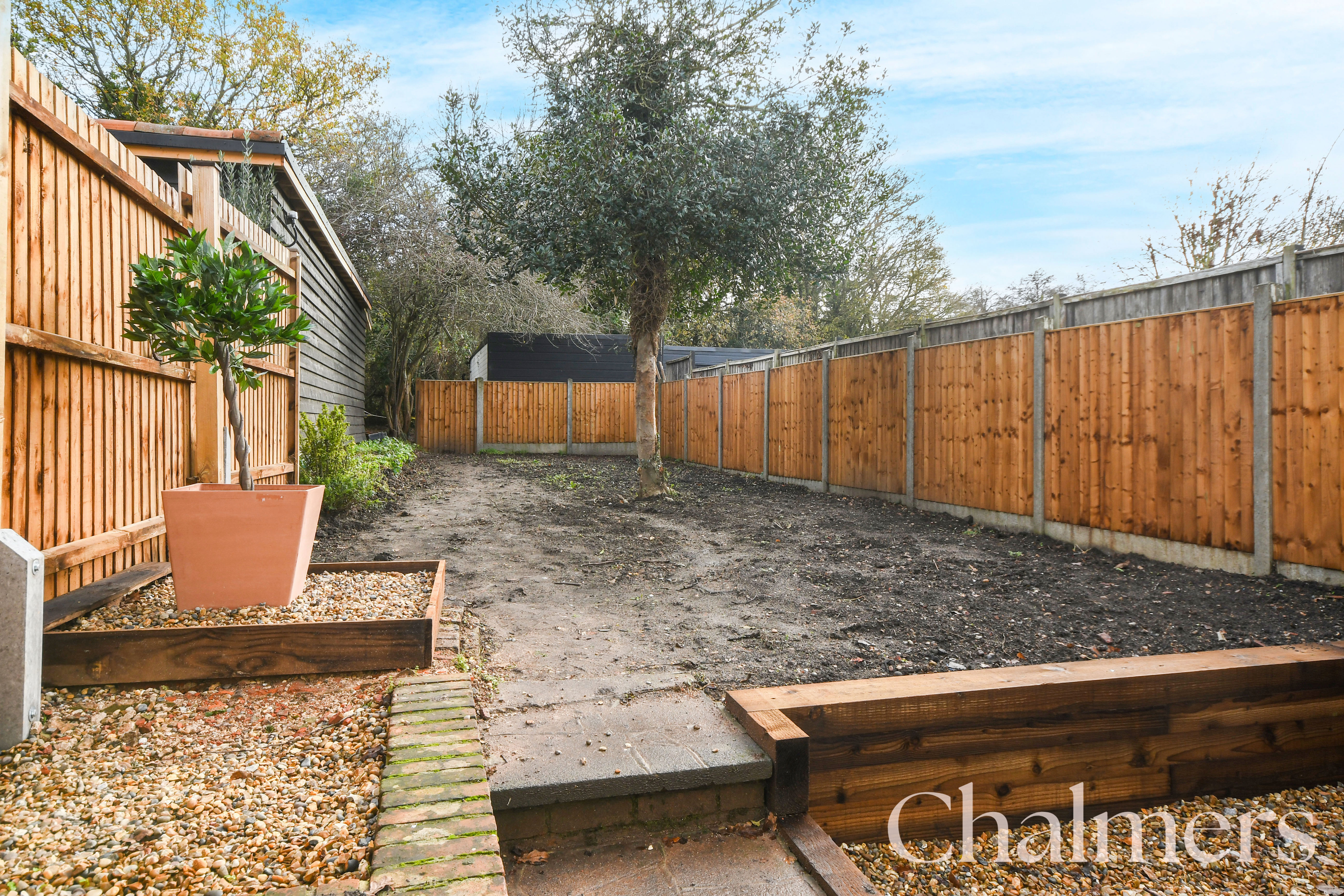 The garden, bordered by wooden fencing and mature trees, offers privacy, security, and ample scope for landscaping. Additional highlights include a neatly maintained front garden, a hedge-lined gravel driveway offering ample off-road parking (dropped kerb in final approval stages with the council)