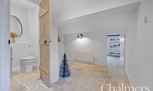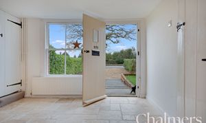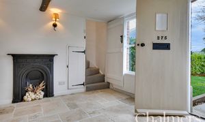 The property offers three versatile reception rooms, each benefitting from abundant natural light and a bright, airy feel. Period features such as exposed brickwork, rustic wooden doors, an exposed wooden beam, and a classic period fireplace infuse the interiors with warmth and timeless appeal. The neutral decor throughout provides a perfect canvas for personalisation.