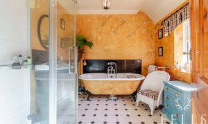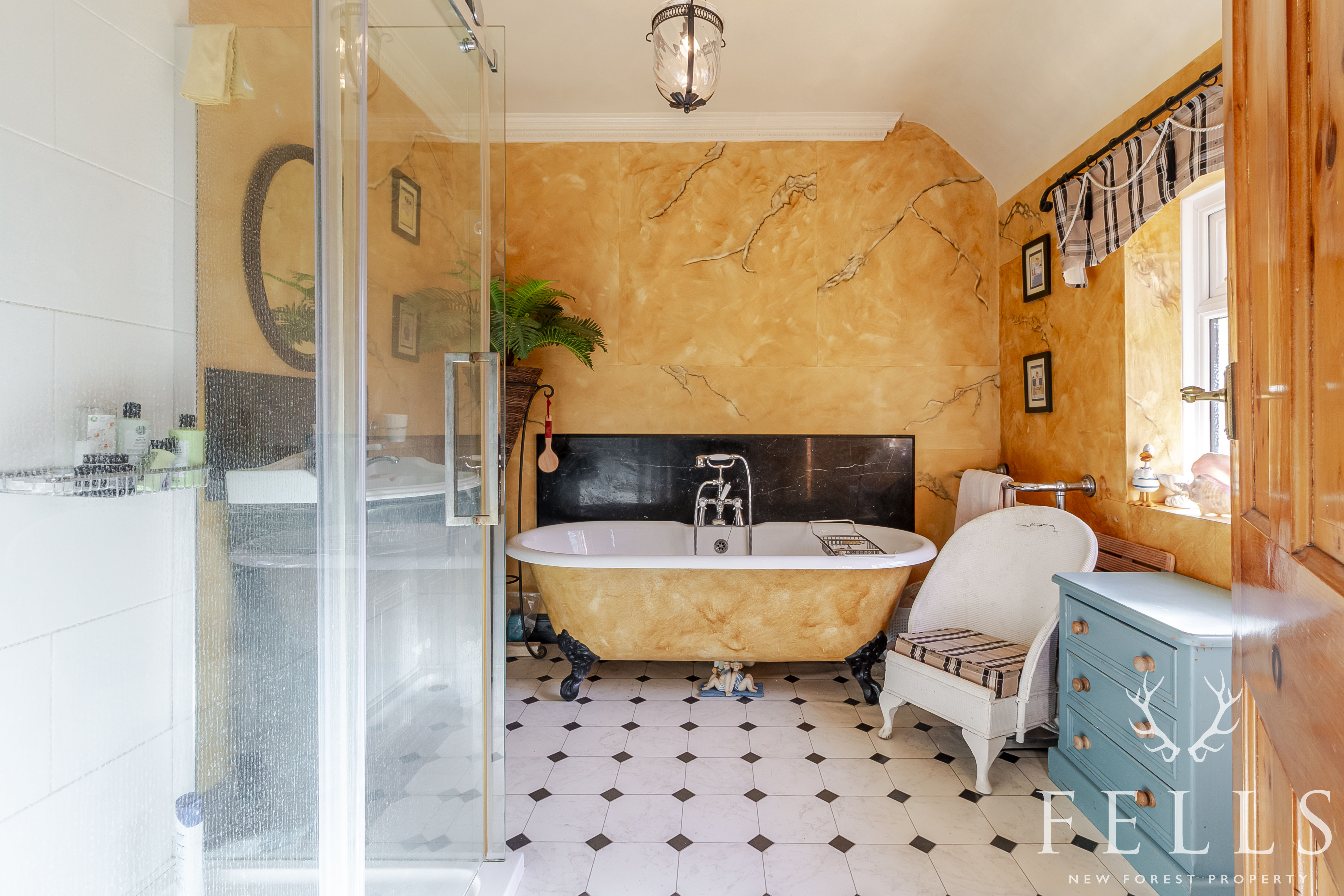 - Heritage-style family bathroom with clawfoot bath and large shower