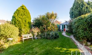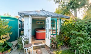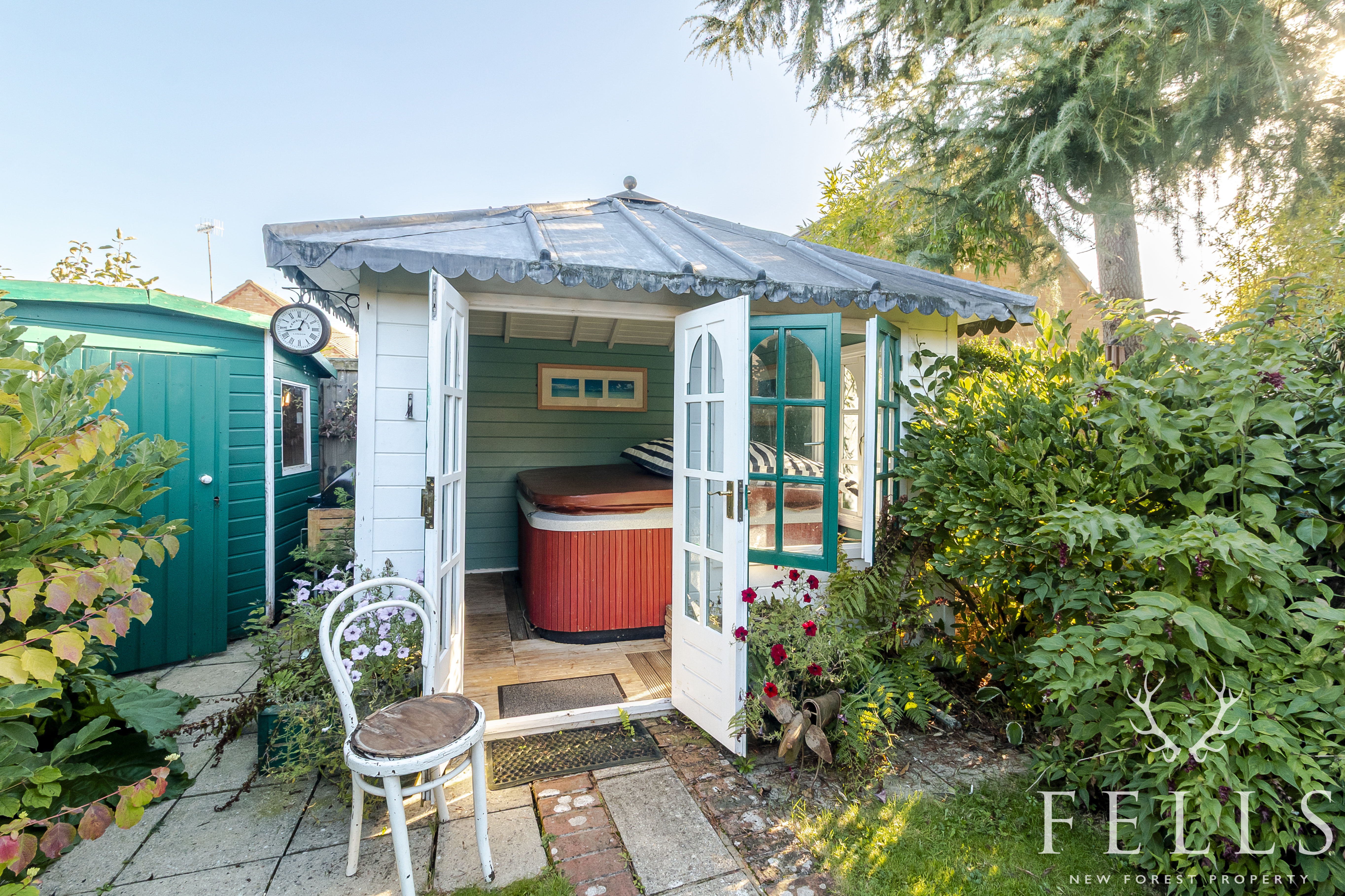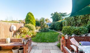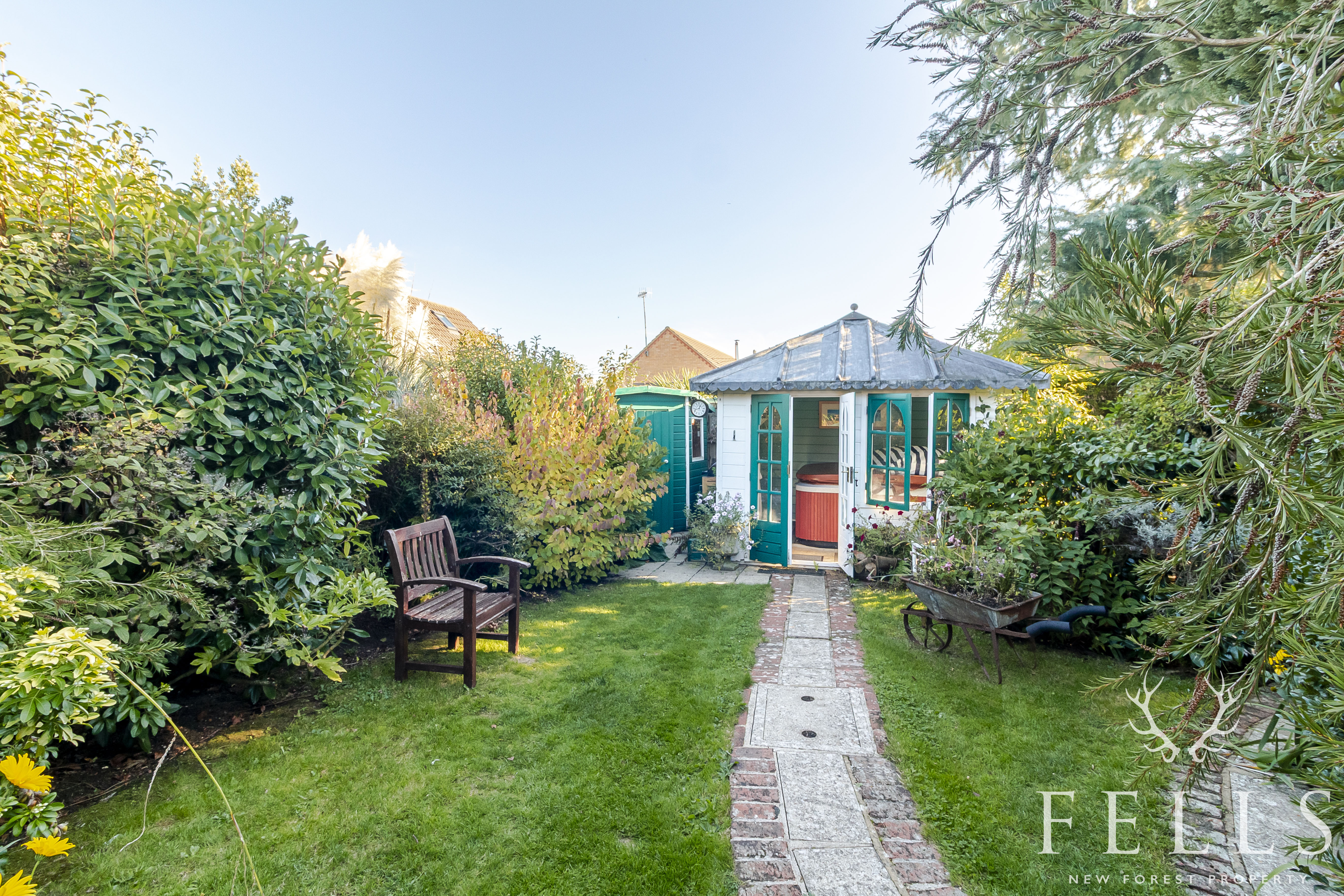 - Double garage, generous driveway parking and landscaped south-facing garden with waterfall, timber chalet and hidden garden zones
