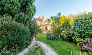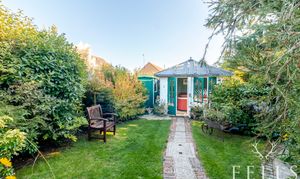 Upstairs, four double bedrooms await. The principal room features stripped wood floors, fitted wardrobes and a cast-iron fireplace, while bedroom two offers similar period charm. The rear bedrooms enjoy lovely views across the garden, with bedroom three benefitting from an en-suite shower room. A heritage-style family bathroom with clawfoot bath and generous shower completes the picture.
