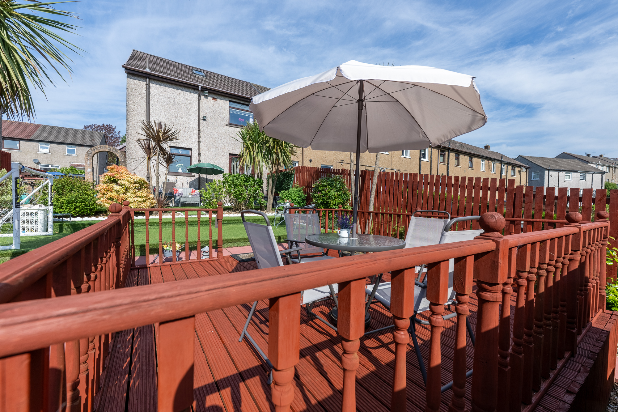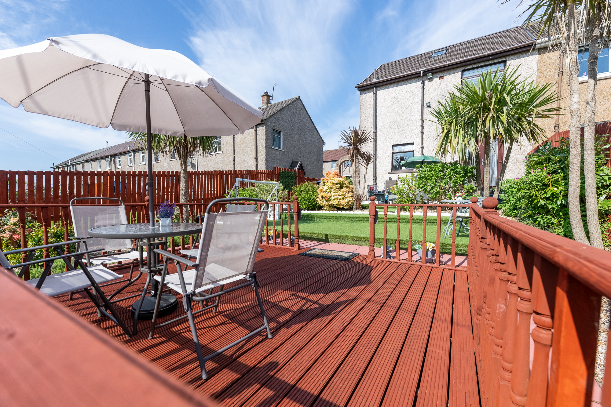 - Show-stopping rear garden with expansive decked terrace and low-maintenance lawn, an entertainer’s dream and a true outdoor sanctuary.