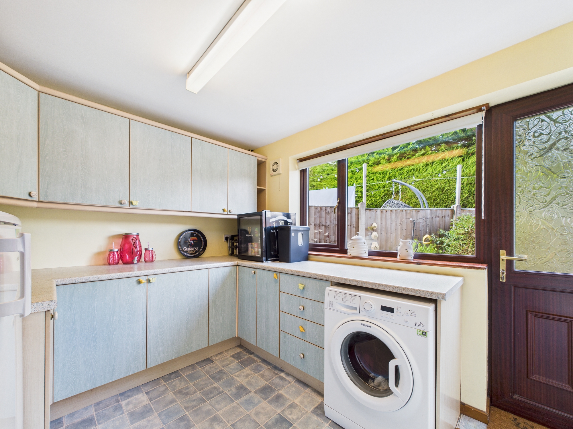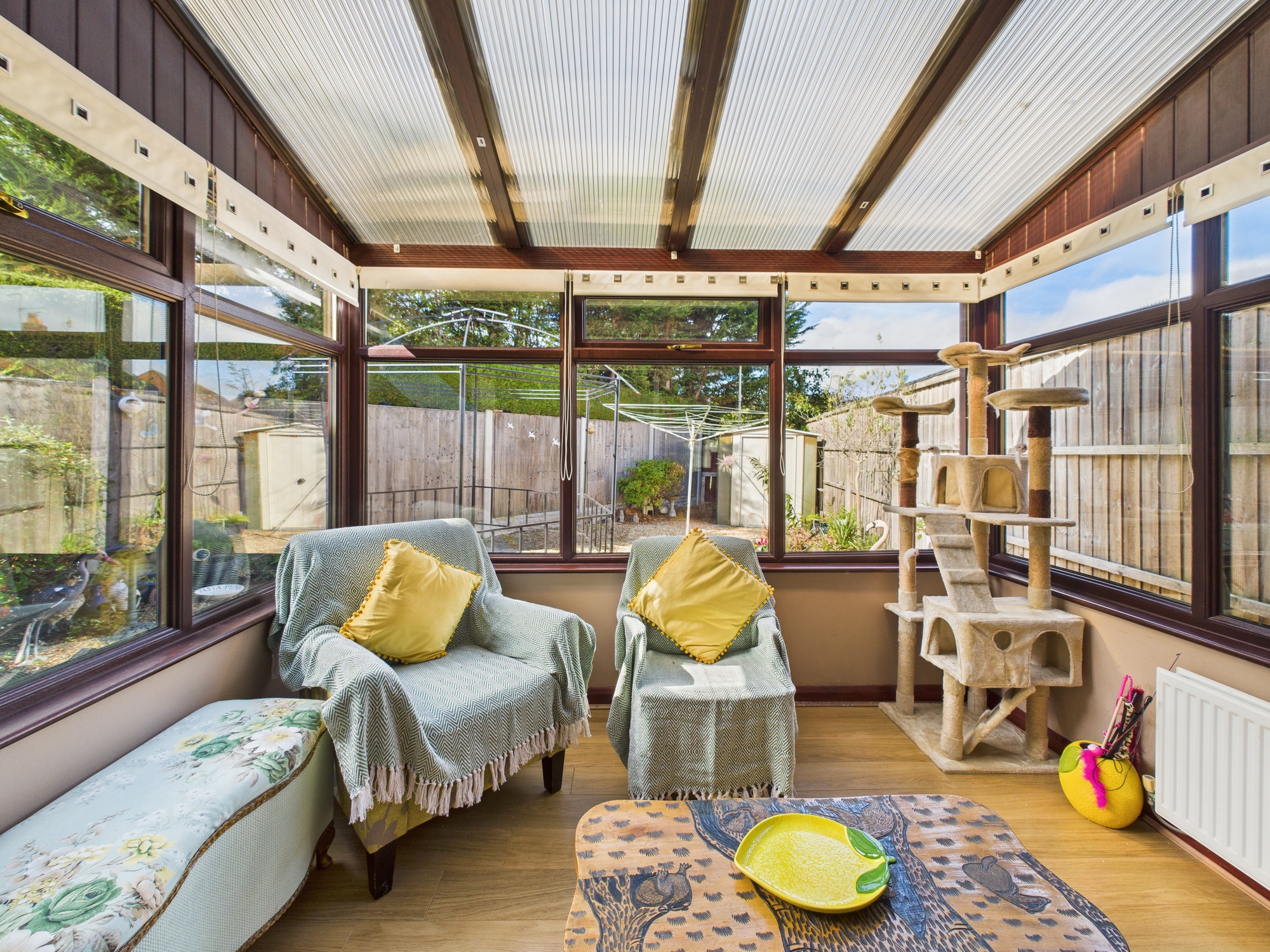The kitchen is modern and well-equipped, complete with ample storage and practical worktops—ideal for everyday cooking or hosting family meals. Adjacent to the kitchen is a dining area with a sunroom/conservatory attached which provides access to the rear garden.