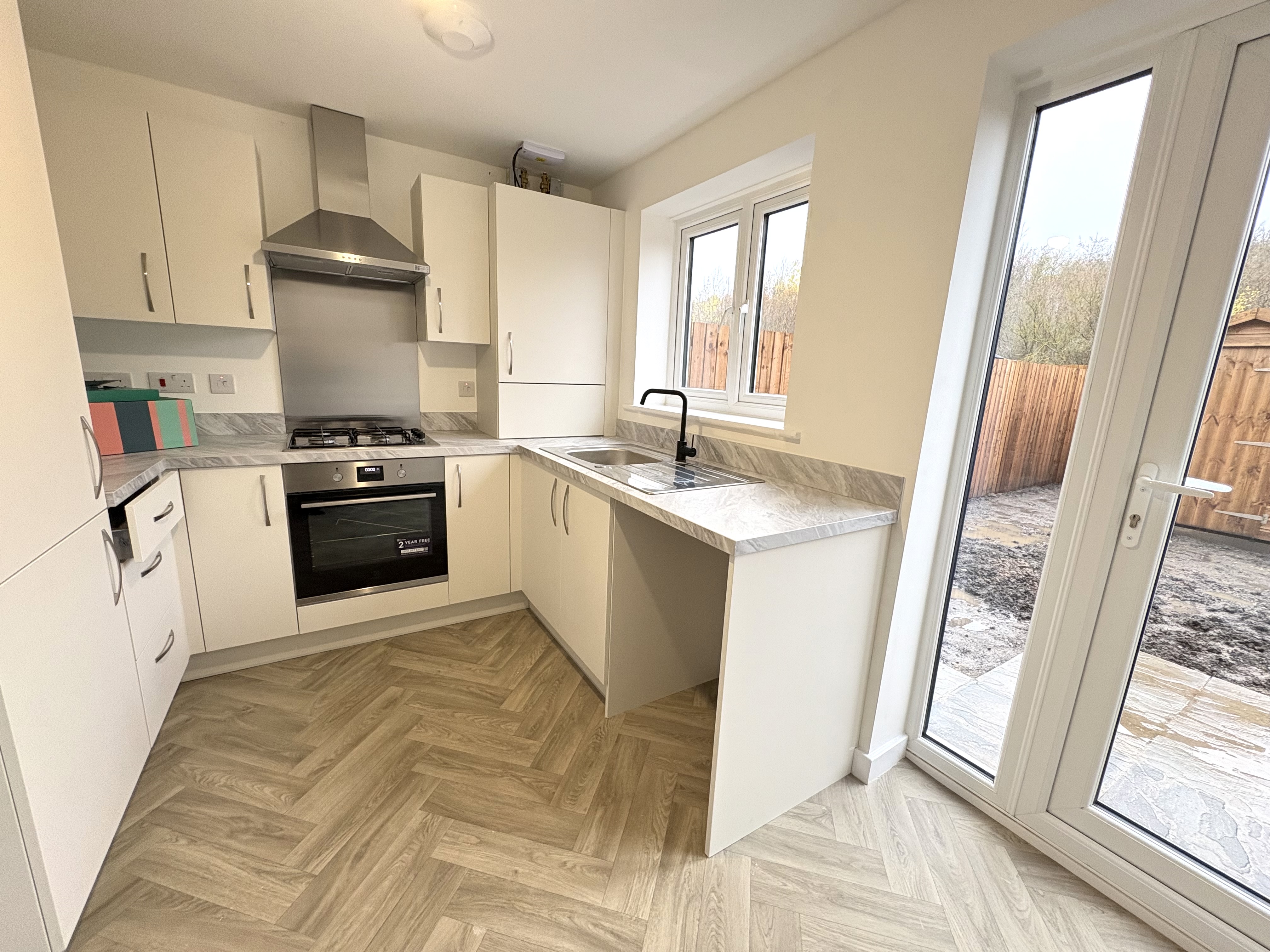 Step inside to a bright and flowing ground-floor living/dining space, ideal for everyday family life and entertaining. The modern kitchen comes complete with an integrated fridge freezer, and there’s also the convenience of a downstairs WC.