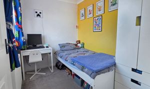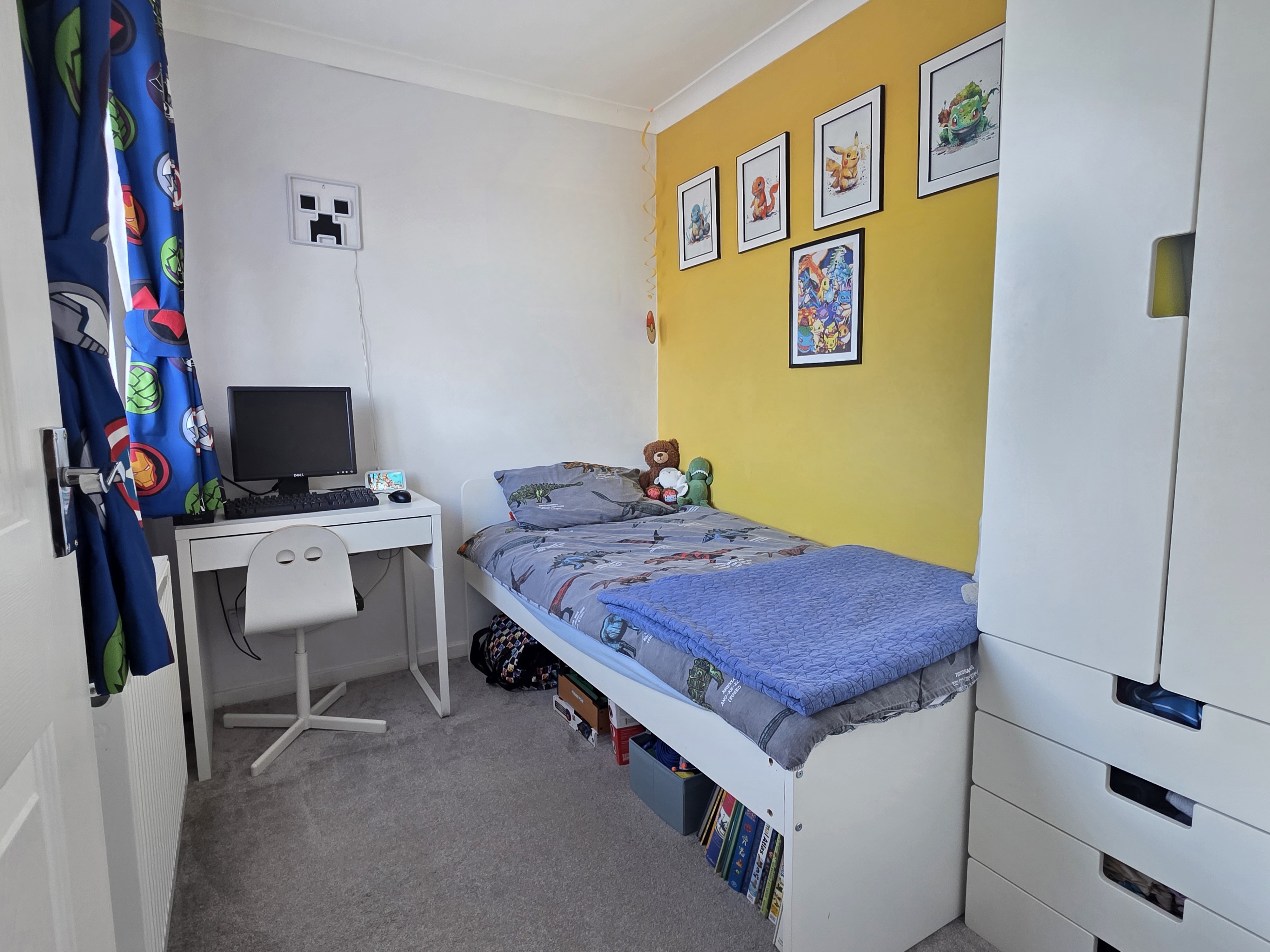 The third and final bedroom has carpet flooring, coving to ceiling, radiator and UPVC double glazed window.