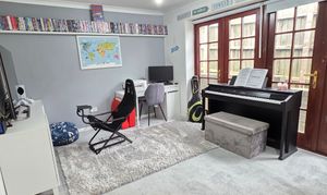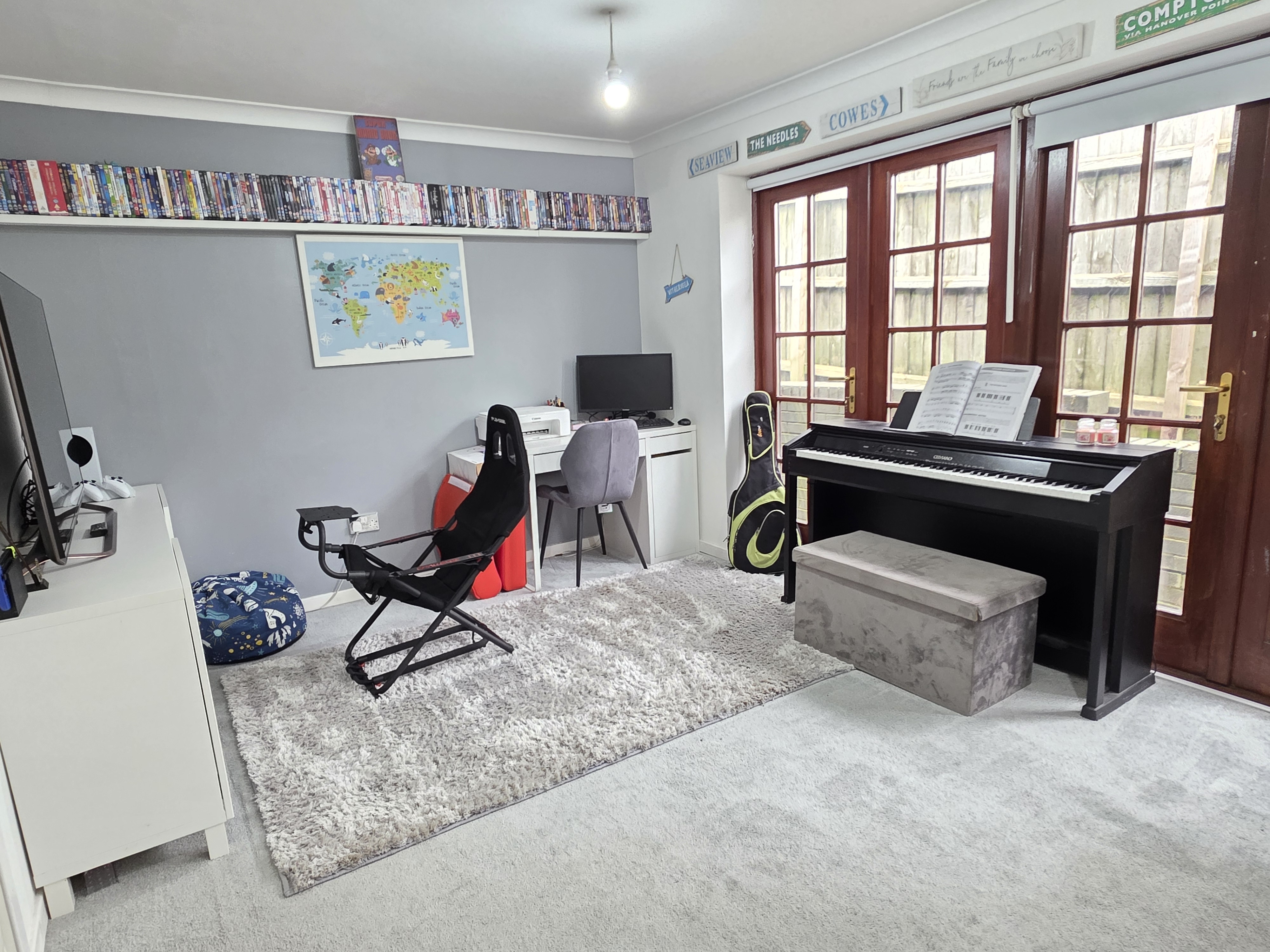 Comprises of carpet flooring, coving to ceiling, access into a store room, radiator and two sets of double doors providing side access.