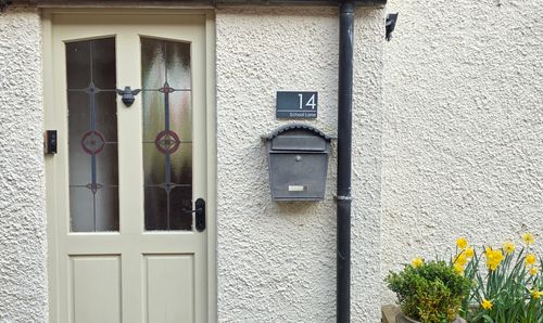 To the front of the property, there is parking for two vehicles, access into outside store, log store, barked area and a slabbed pathway leading to the UPVC front door.