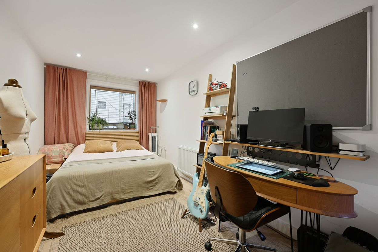 Both bedrooms are light, well-proportioned, and thoughtfully laid out, offering flexibility for comfortable sleeping, home working, or welcoming overnight guests. Each room has been designed to feel calm and practical, ideal for modern lifestyles.
