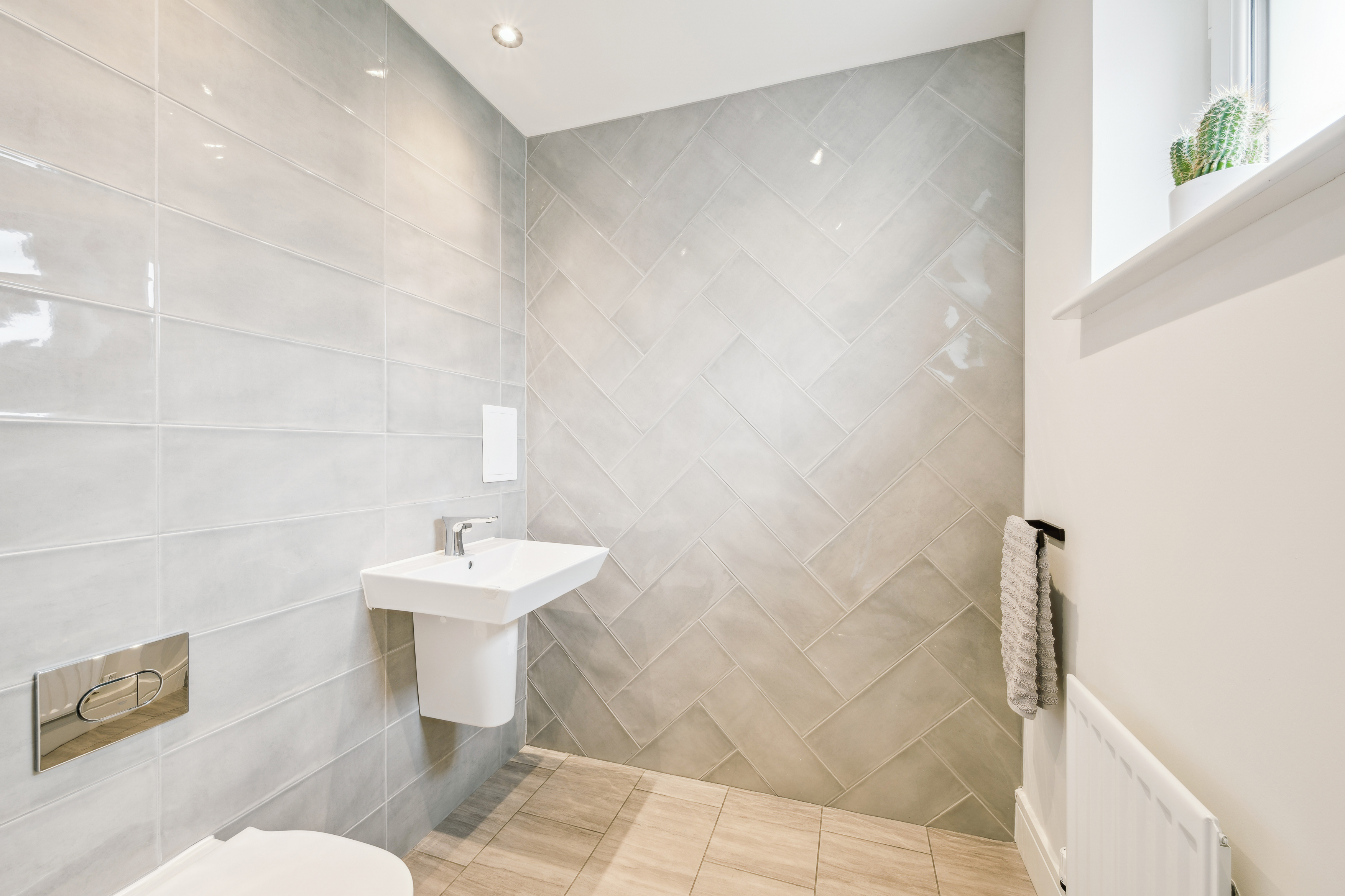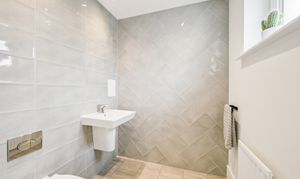 Also on the ground floor is a spacious, fully tiled W/C. Well-finished and stylish, it provides ample space for freestanding storage while maintaining a clean, luxurious feel.
