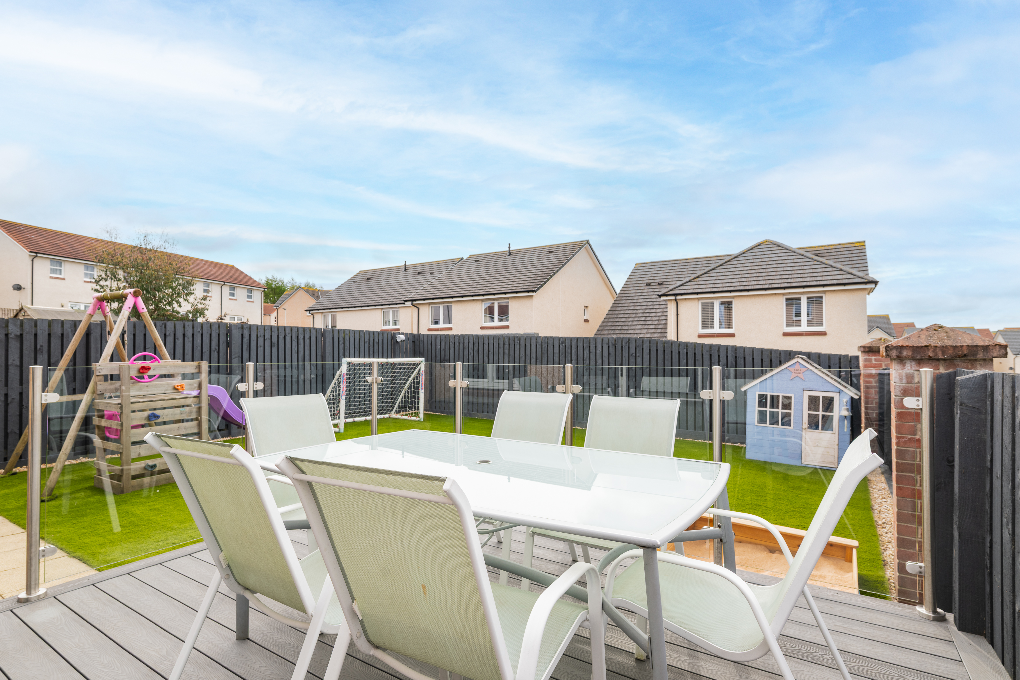 Externally, this home truly stands out, the rear garden, professionally landscaped in 2022, is both stylish and low-maintenance, featuring artificial lawn, composite decking, and sleek glass balustrade panels. With its southwest aspect, this private space is perfect for summer entertaining, family play, or simply relaxing in the sun.