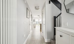 Upon entry, you're welcomed into a bright and airy hallway enhanced by a striking black & white staircase. This inviting space provides internal access to the garage, An ideal convenience for busy households.