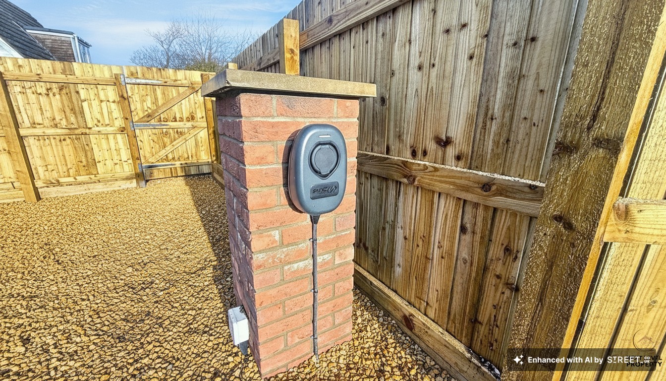 From the moment you arrive the quality is evident. The property is positioned with a gravelled driveway running to the side, leading to a private rear parking area with space for at least two vehicles, already equipped with an EV charging point — a future-ready feature for modern living. External lighting to both the front and rear enhances security and evening kerb appeal, while gated access leads through to the enclosed rear garden.